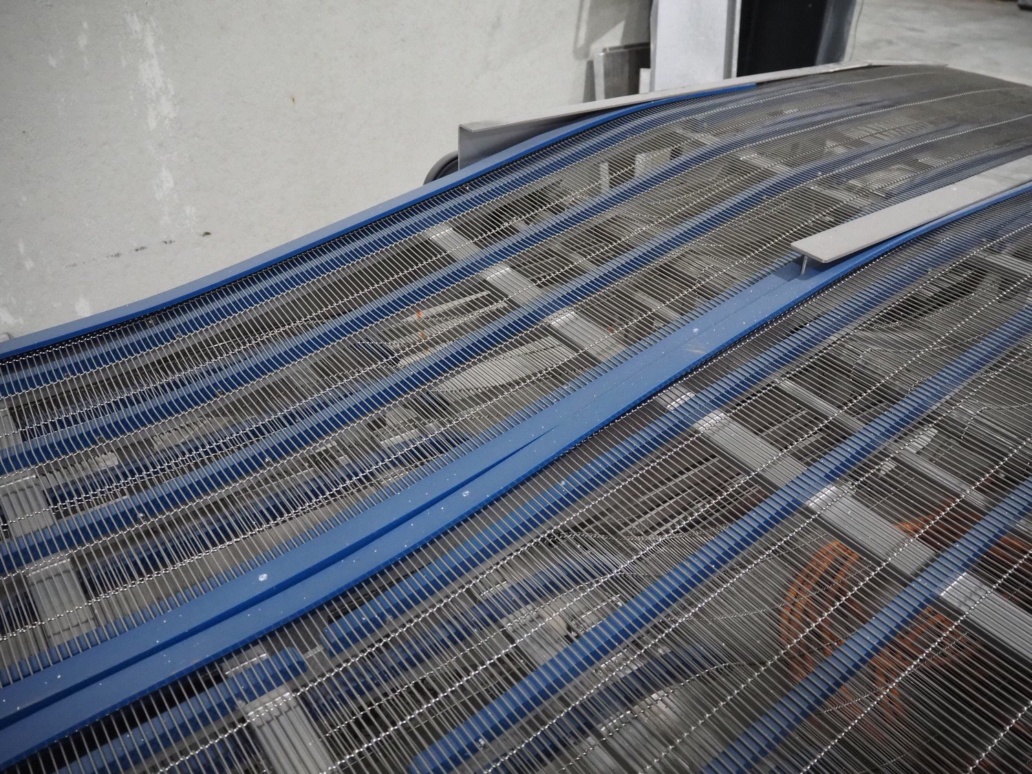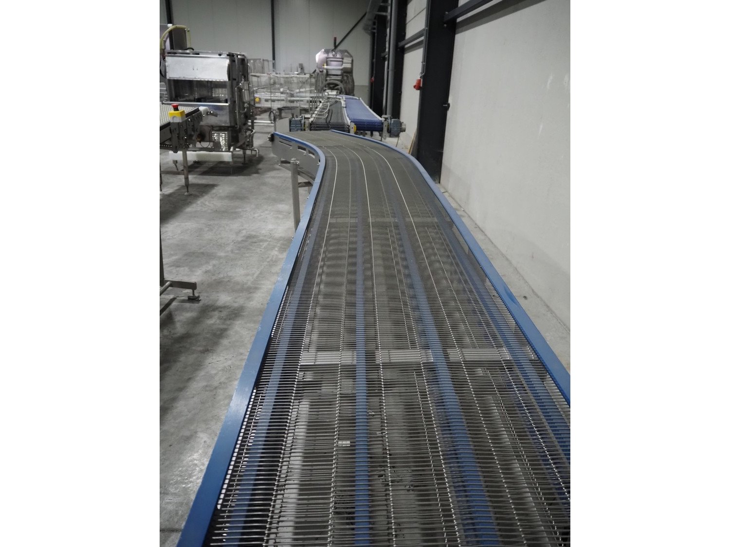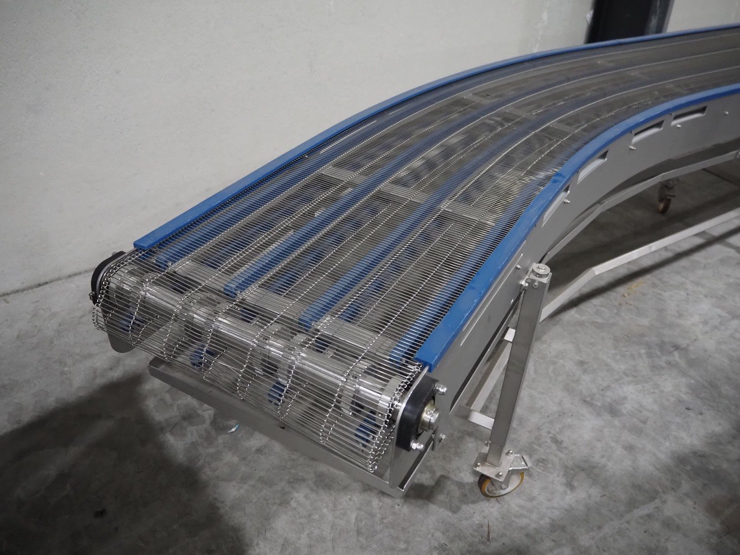 Mobile transport belt, 2 lanes, s/s mesh belts, belt width: 510 mm, total dimensions: 8100 mm x 1900 mm x 1100 mm. Kavel locatie: Langereijt 29A, 5091 JP Middelbeers, Nederland