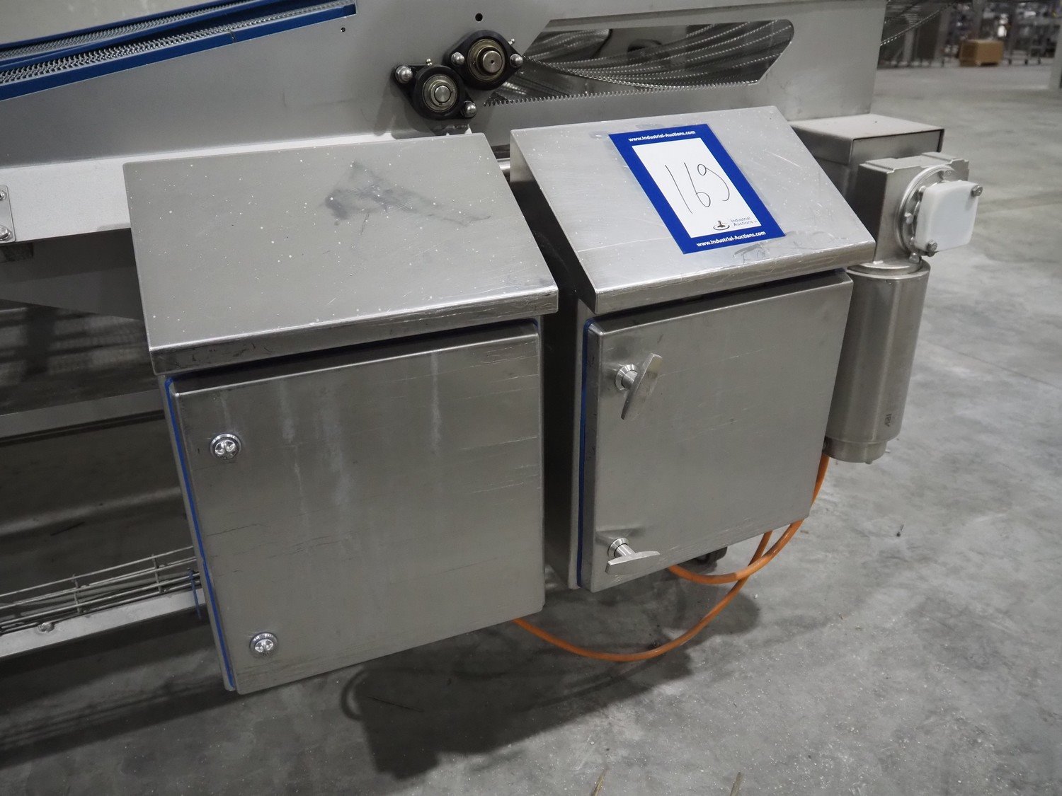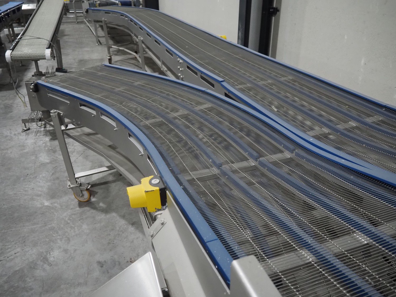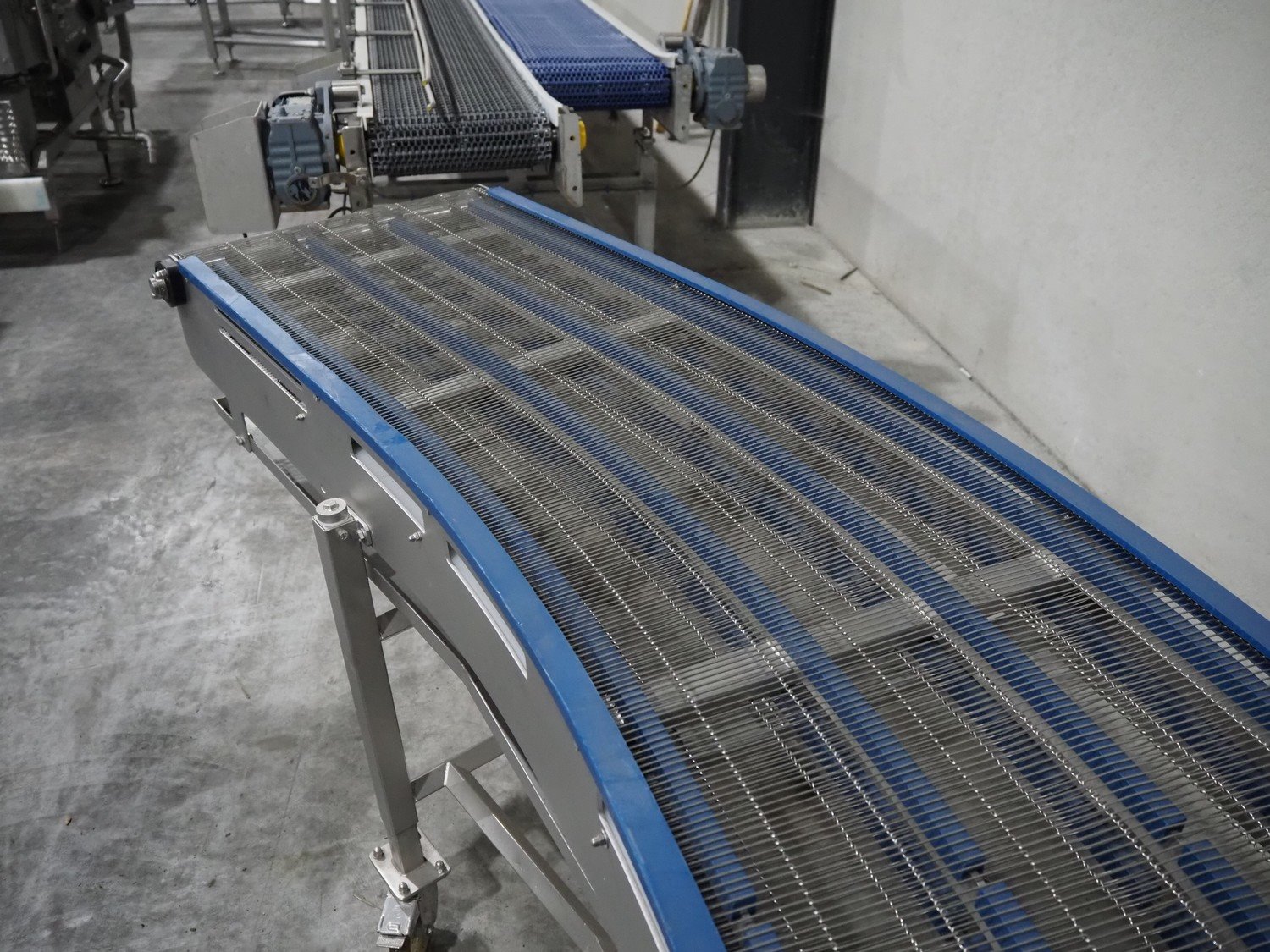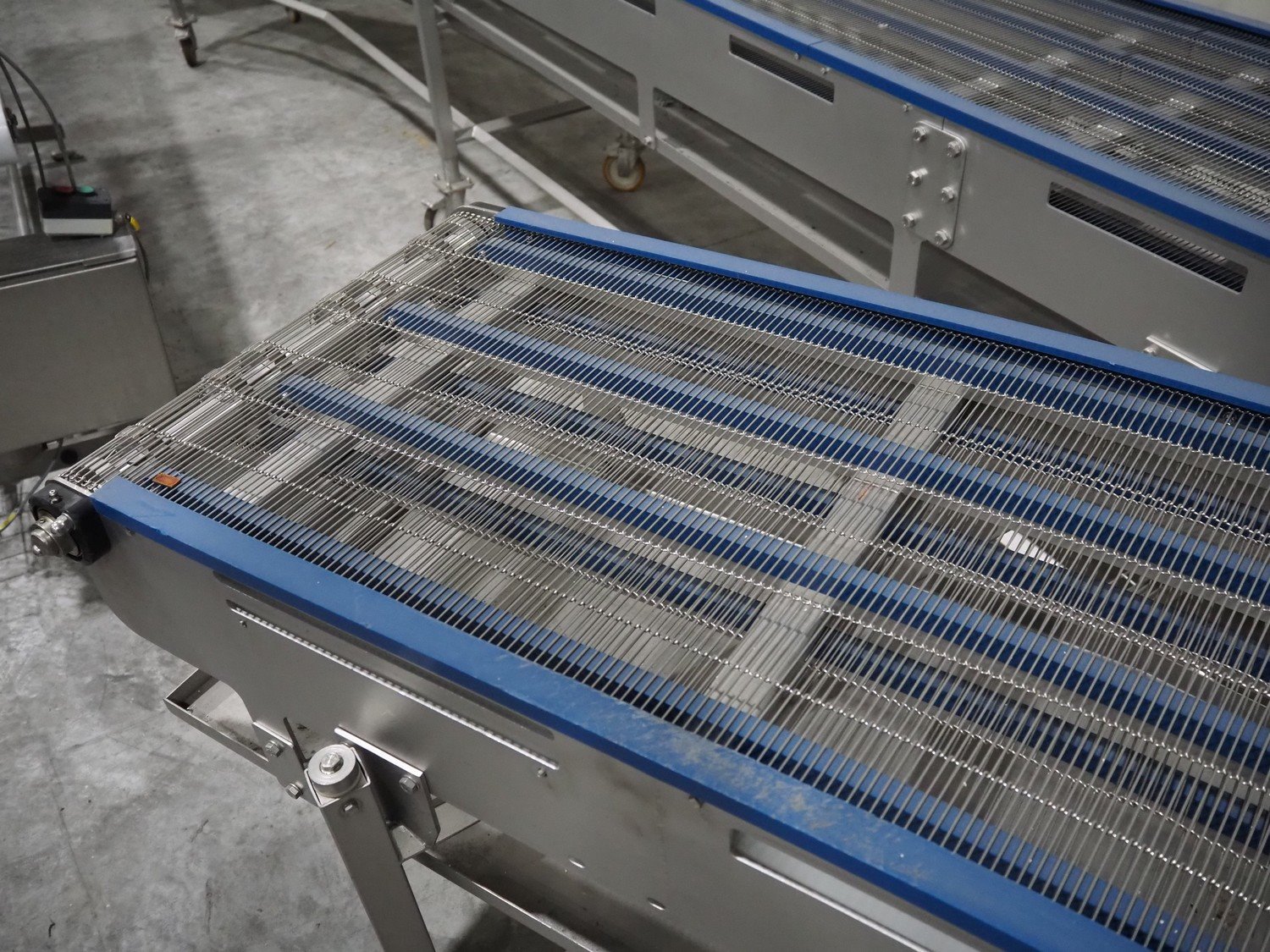 Mobile transport belt, 2 lanes, s/s mesh belts, belt width: 510 mm, total dimensions: 8100 mm x 1900 mm x 1100 mm. Kavel locatie: Langereijt 29A, 5091 JP Middelbeers, Nederland