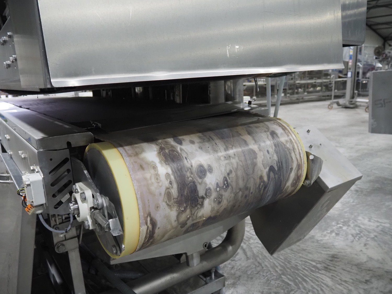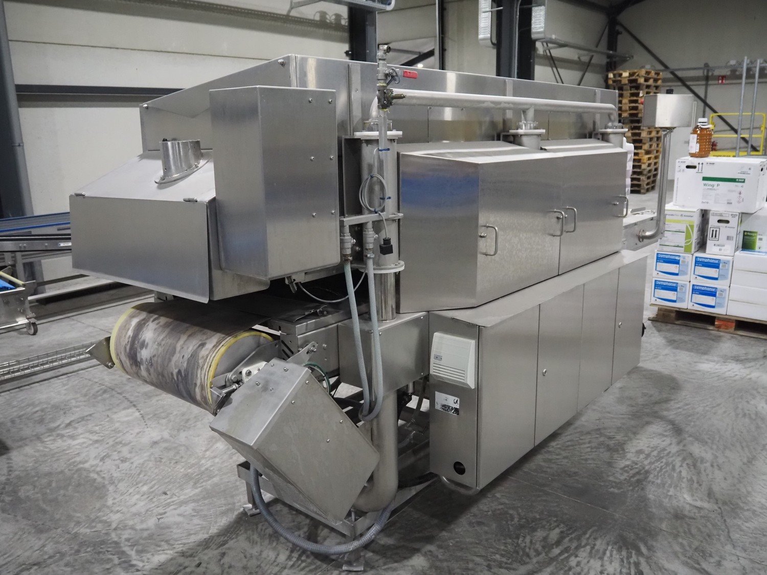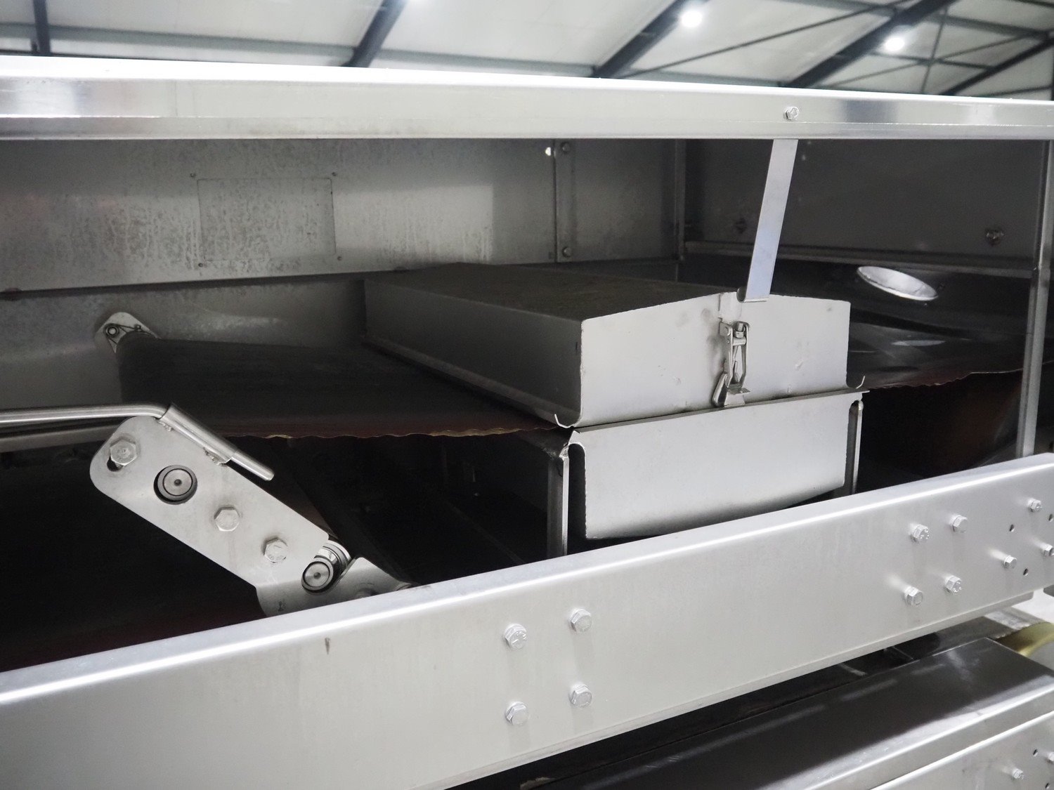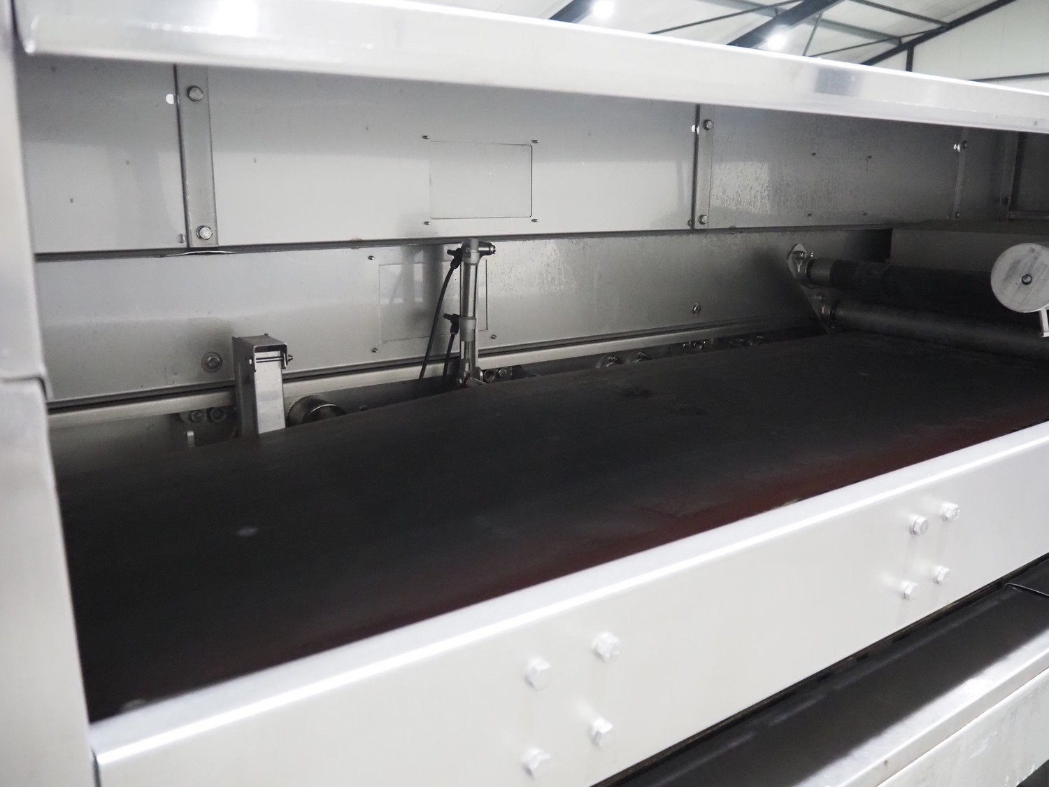 Celsiusfood teflon grill belt, belt width: (1x) 545 mm, (1x) 560 mm, clearance: 545 mm x 115 mm, electric heated, total dimensions: 4000 mm x 1350 mm x 1860 mm. Display broken. Kavel locatie: Langereijt 29A, 5091 JP Middelbeers, Nederland