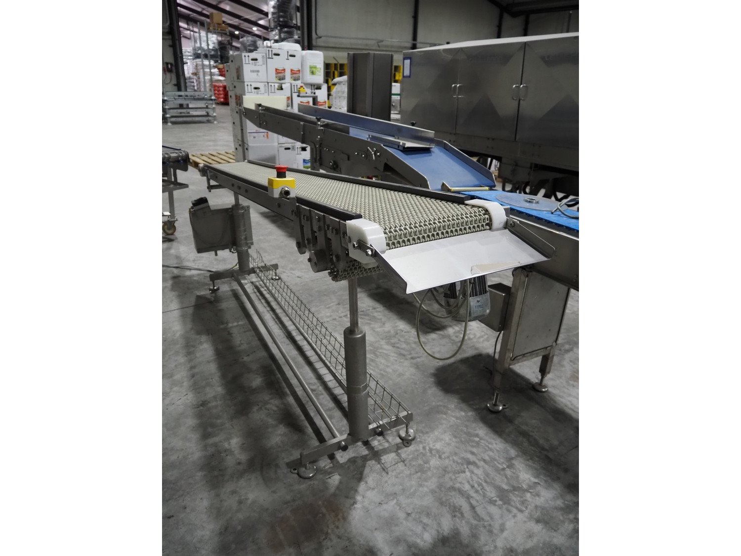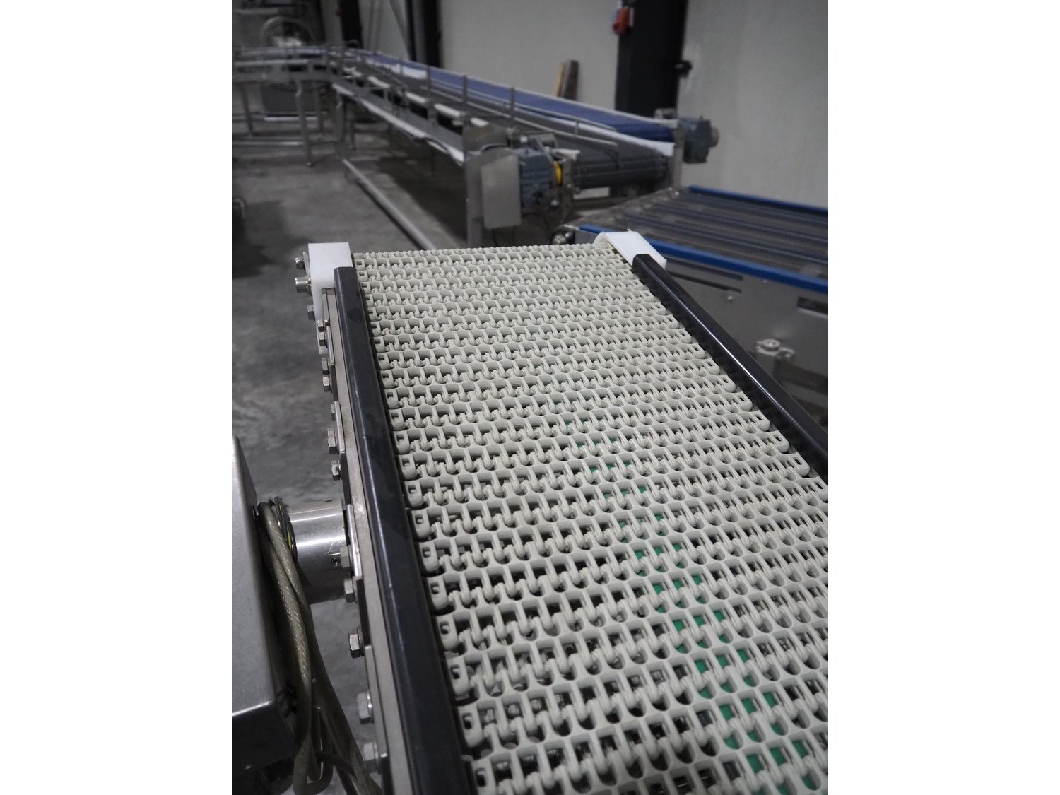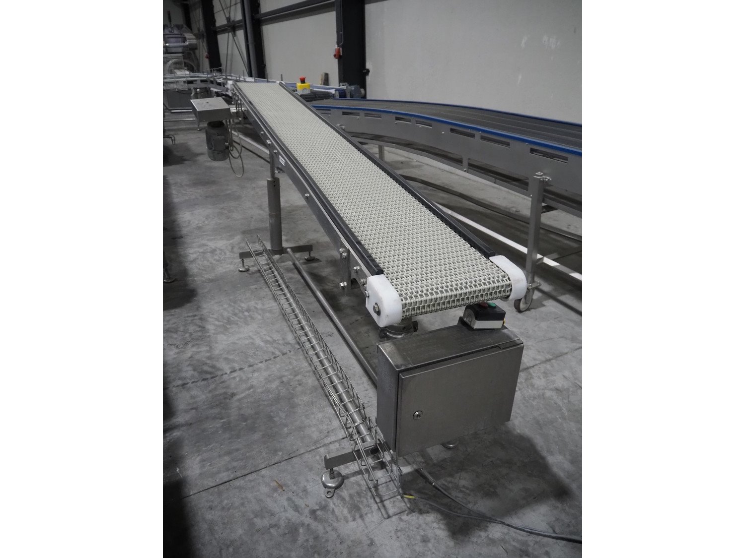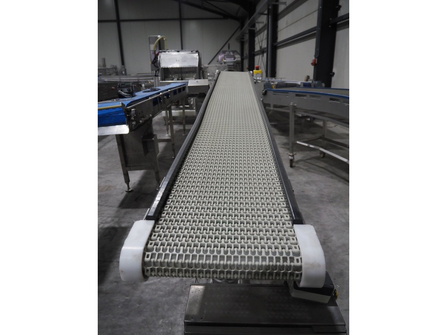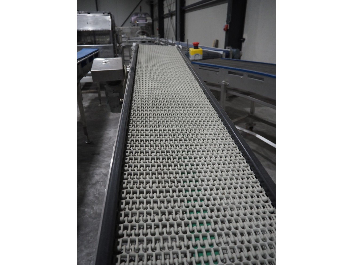 Elevating belt, plastic mesh belt, belt width: 285 mm, total dimensions: 2900 mm x 750 mm x 1200 mm. Kavel locatie: Langereijt 29A, 5091 JP Middelbeers, Nederland