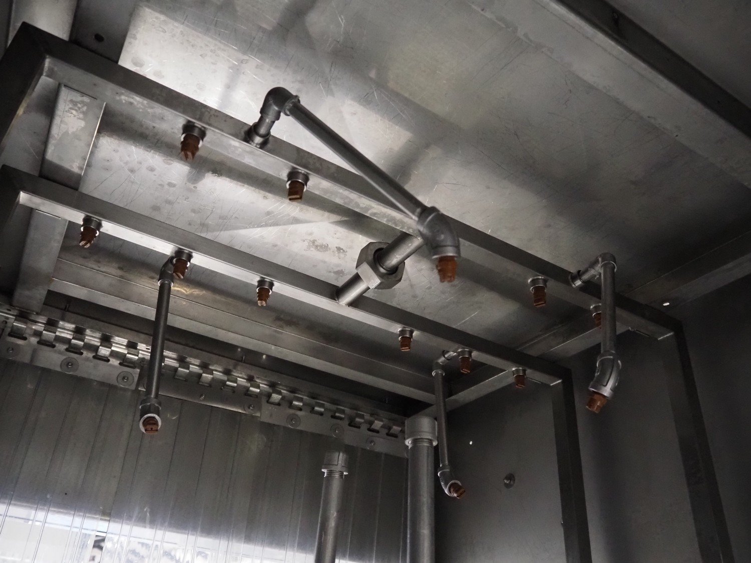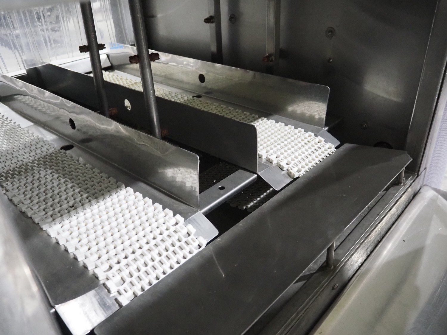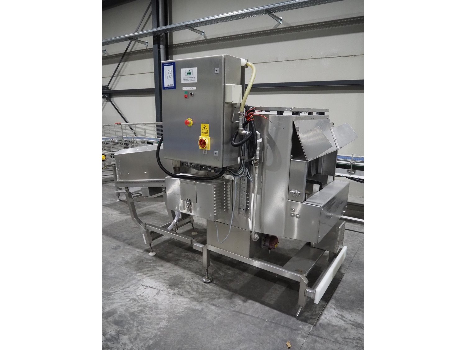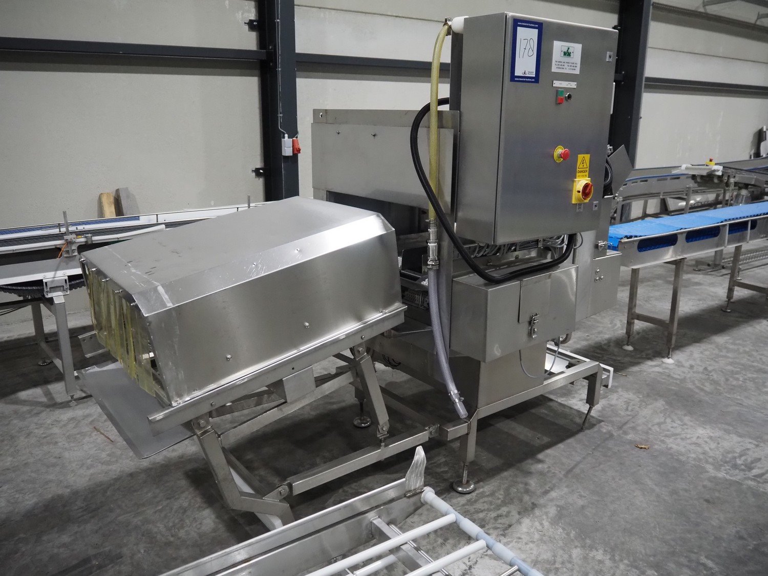 Industrial Washing Machines crate washer, type: SAN 100 SP, number: 442 S1SP A/1510/01U, year of construction: 04/11/2002, plastic mesh belt, belt width: (2x) 150 mm, clearance: (2x) 265 mm x 290 mm, total dimensions: 2500 mm x 1400 mm x 1950 mm. Kavel locatie: Langereijt 29A, 5091 JP Middelbeers, Nederland