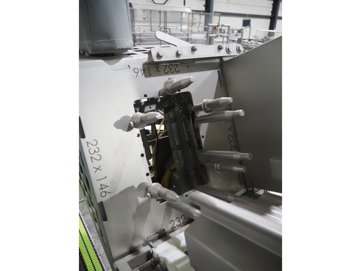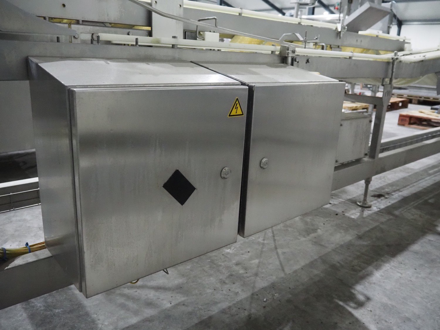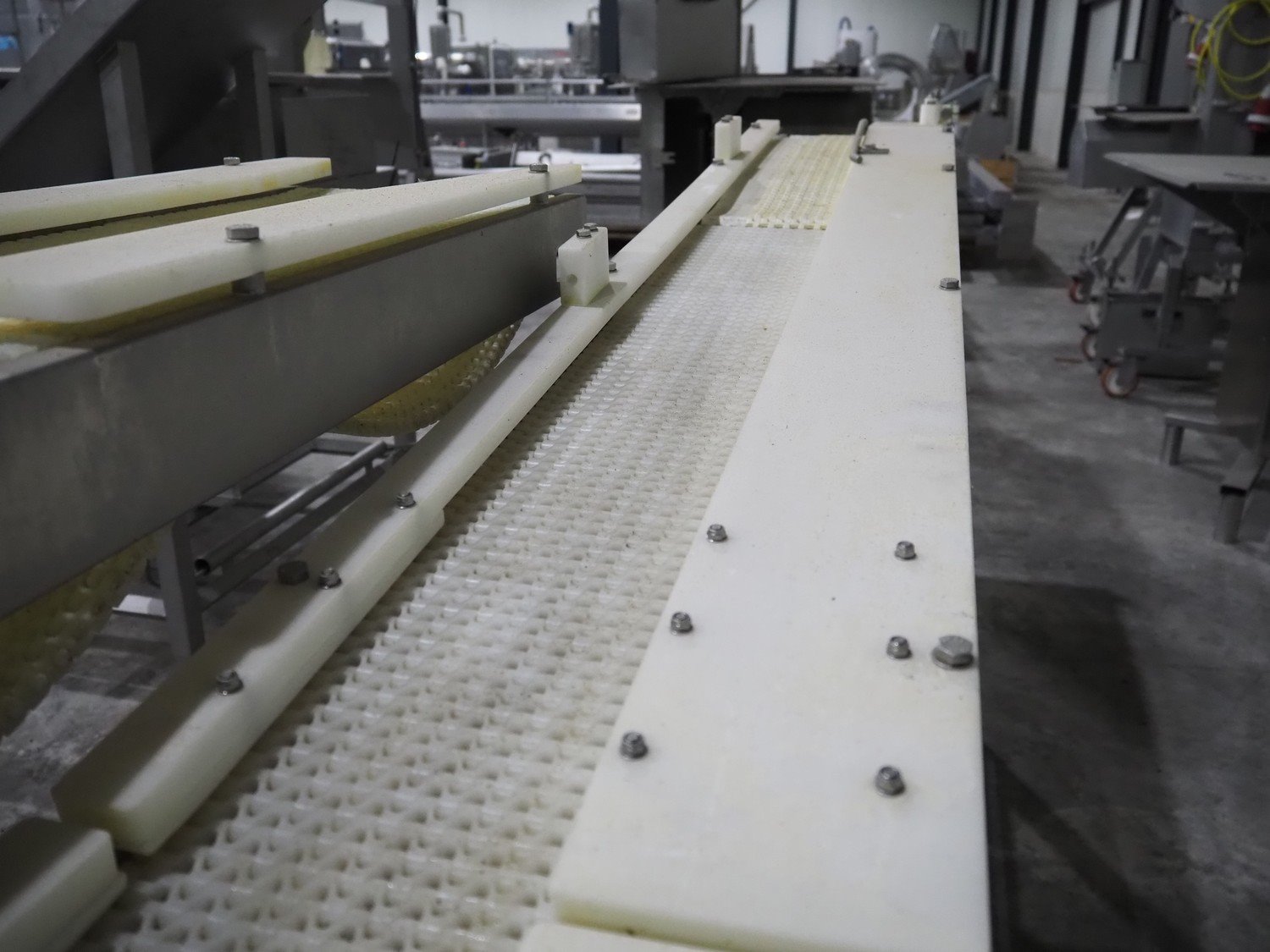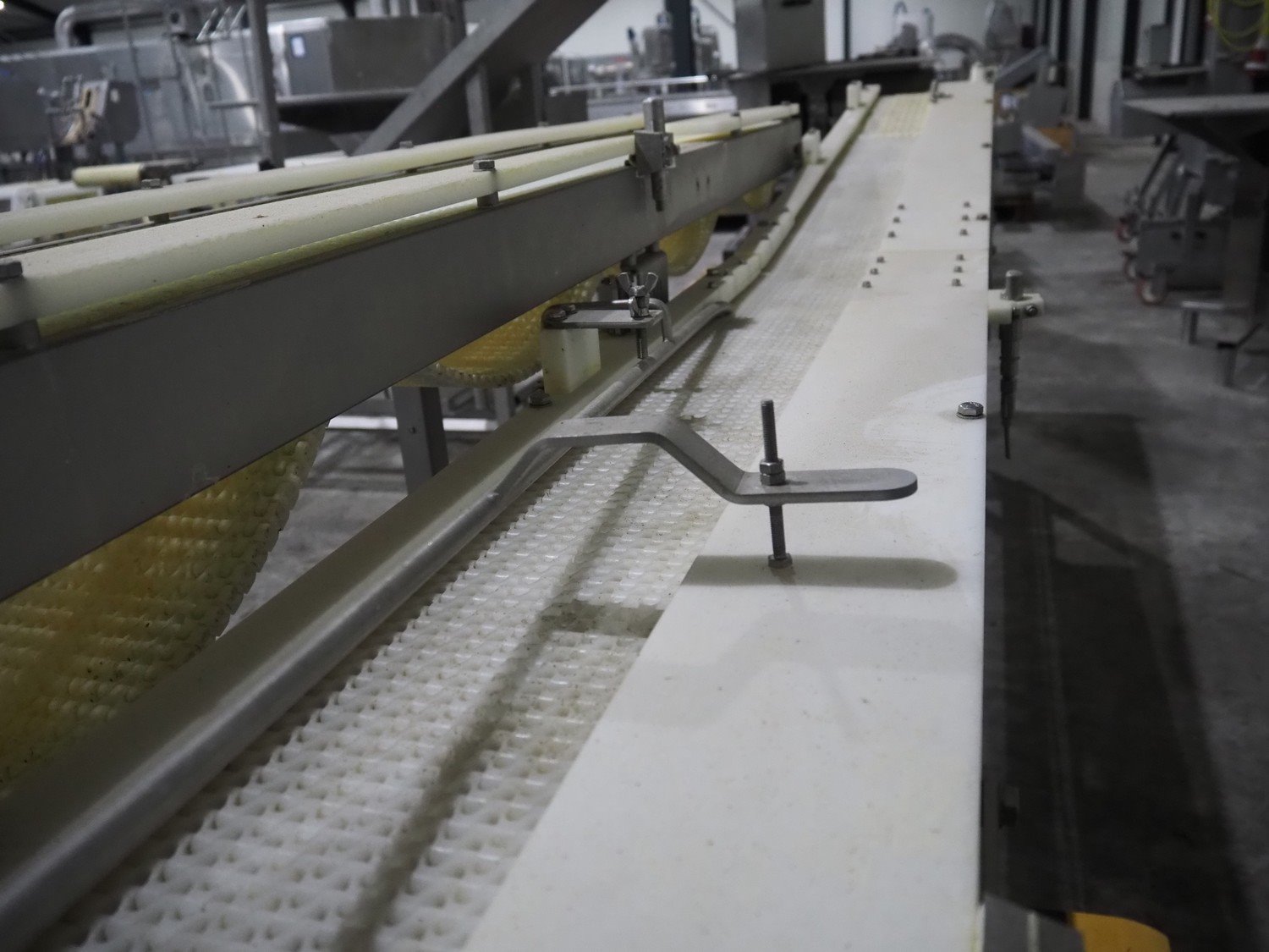 TVI Entwicklung & Produktion GmbH tray denester, type: TDS 300, serial number: 115, year of construction: 2012, 400 V, weight: 70 kg, dye: 232 mm x 146 mm, plastic mesh belt, belt width: 250 mm, total dimensions: 4350 mm x 1000 mm x 1800 mm. Kavel locatie: Langereijt 29A, 5091 JP Middelbeers, Nederland