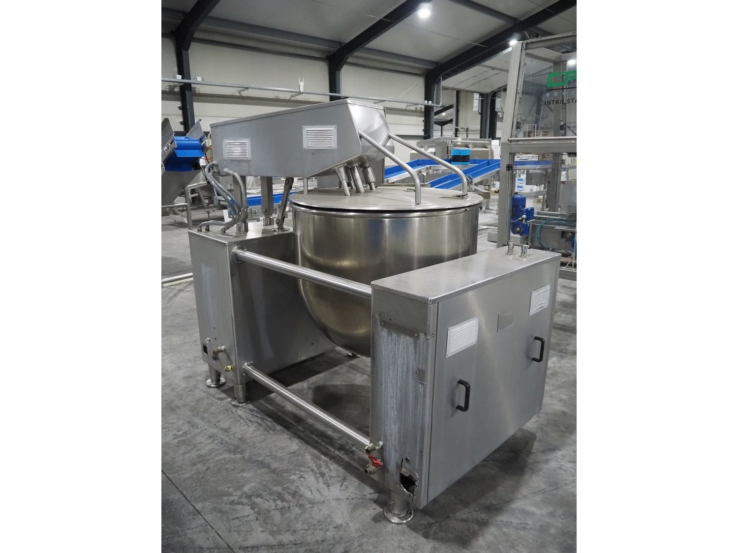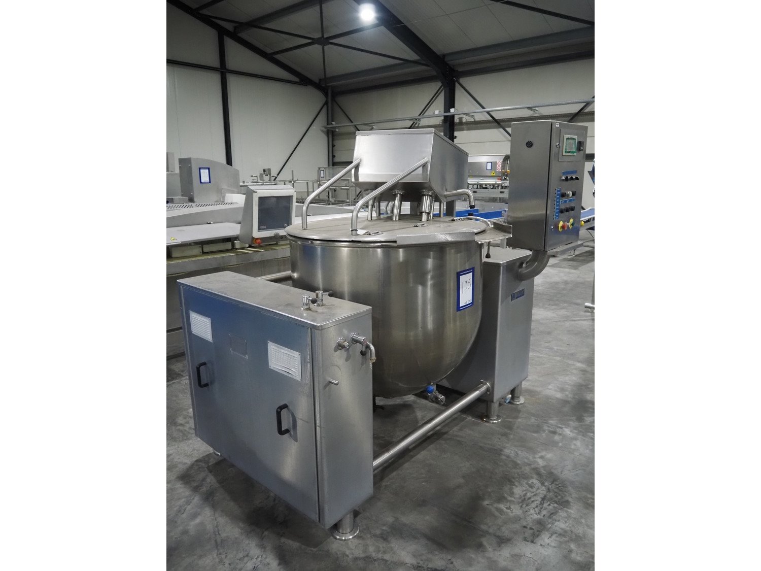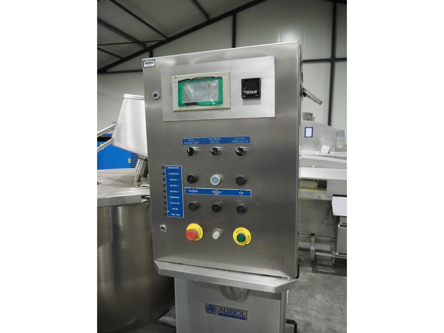 HP. Auriol cooking vessel with mixing arm and scrapers, type: Marmite, number: 2578 B, year of construction: 07/1999, 380 V, 50 Hz, volume: 300 liter, dimensions: 1950 mm x 1400 mm x 1870 mm. Control panel broken Kavel locatie: Langereijt 29A, 5091 JP Middelbeers, Nederland