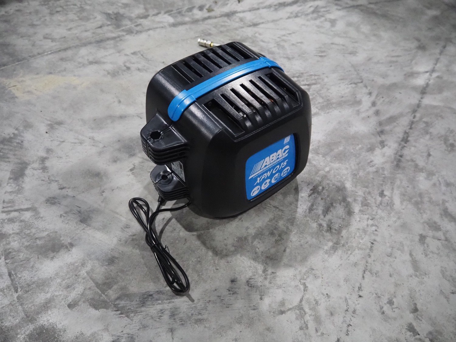 ABAC air compressors with hose reel, model: XPN, 230 V, 1 Ph, 50/60 Hz, 1100 W, weight: 8.5 kg, total dimensions: 400 mm x 250 mm x 300 mm. Kavel locatie: Langereijt 29A, 5091 JP Middelbeers, Nederland