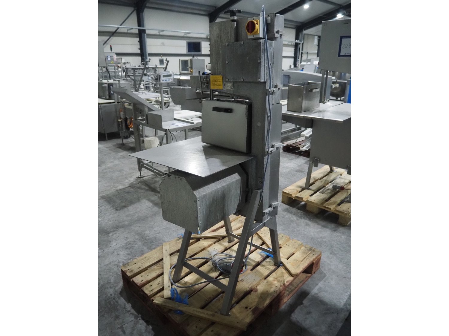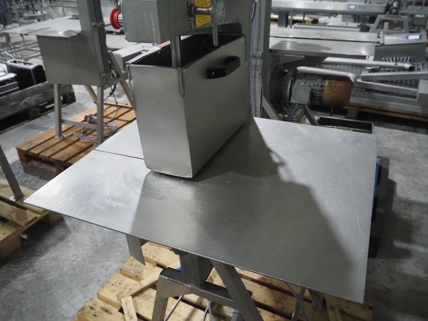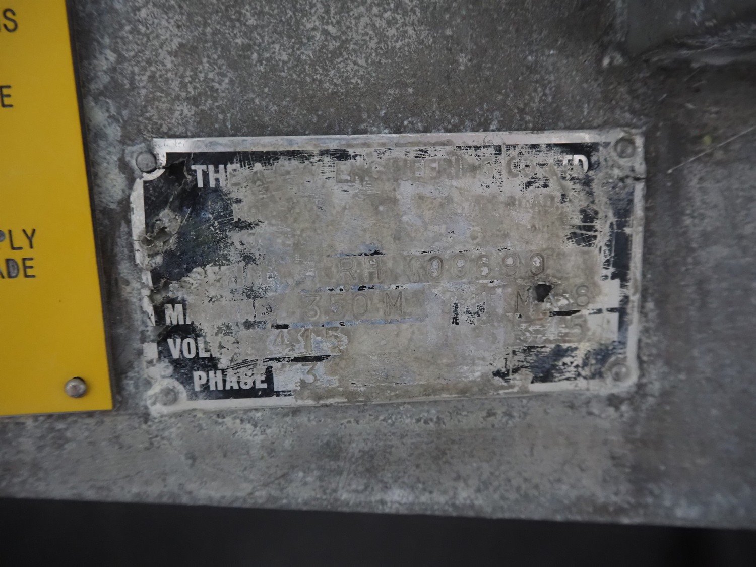 The A.E.W. Engineering band saw, type: MK8, machine: 350M, serial number: RH 100690, 415 V, 3 Ph, 3.5 A, table dimensions: 810 mm x 660 mm, total dimensions: 810 mm x 740 mm x 1700 mm. Incomplete, without saw. Kavel locatie: Langereijt 29A, 5091 JP Middelbeers, Nederland