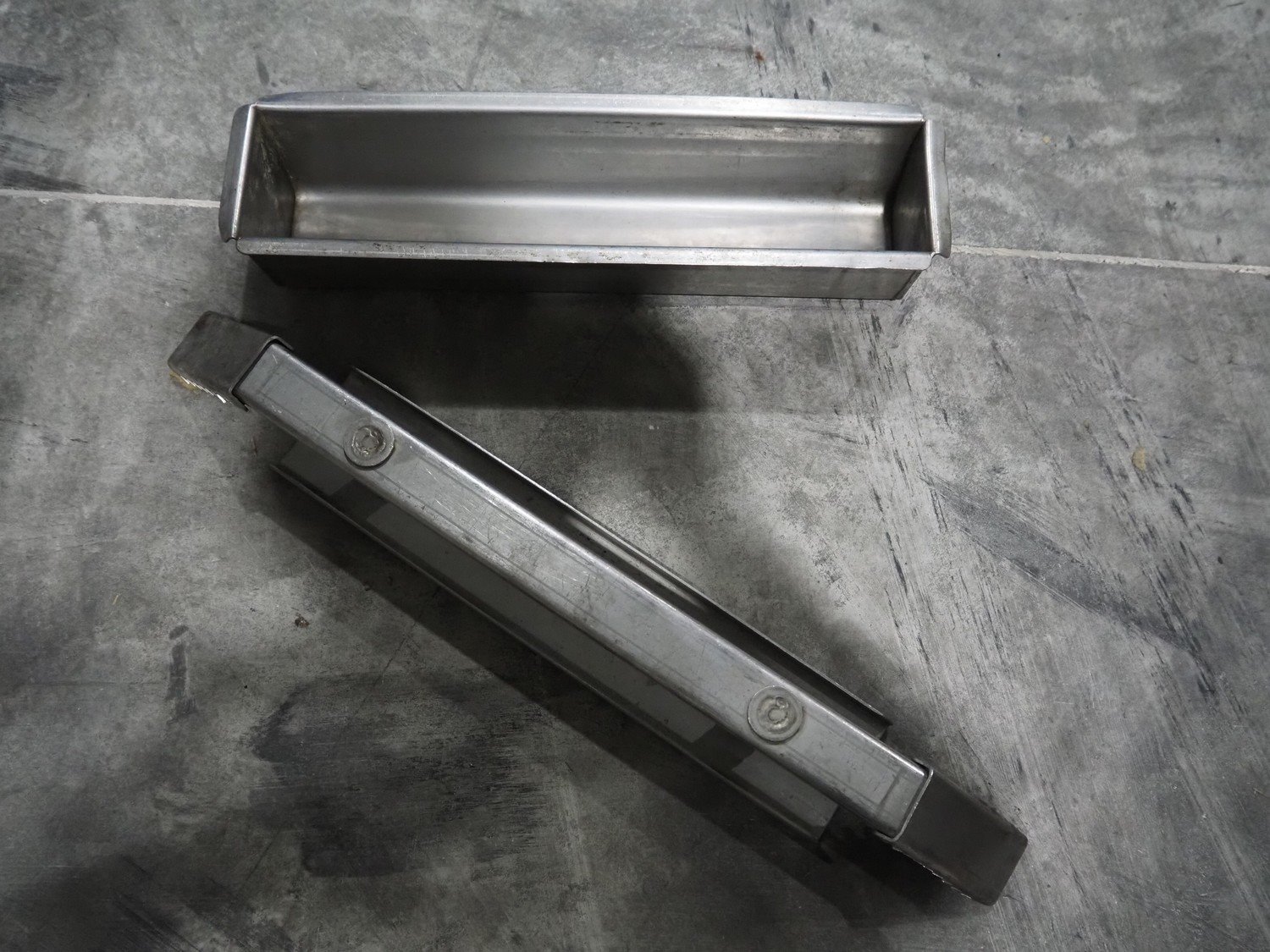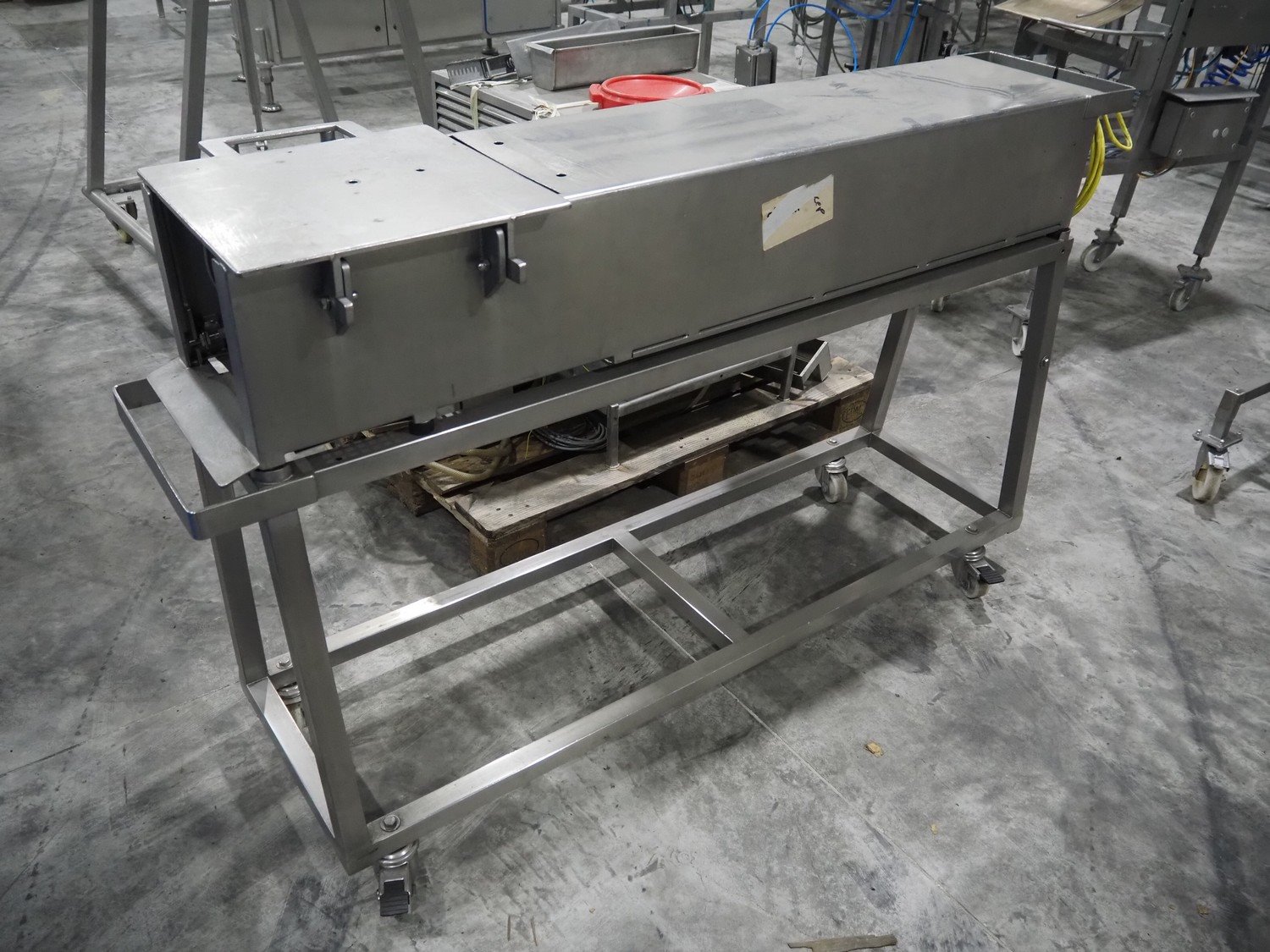 Mobile s/s meat press, dimensions: 1750 mm x 500 mm x 1000 mm. Incomplete. Kavel locatie: Langereijt 29A, 5091 JP Middelbeers, Nederland