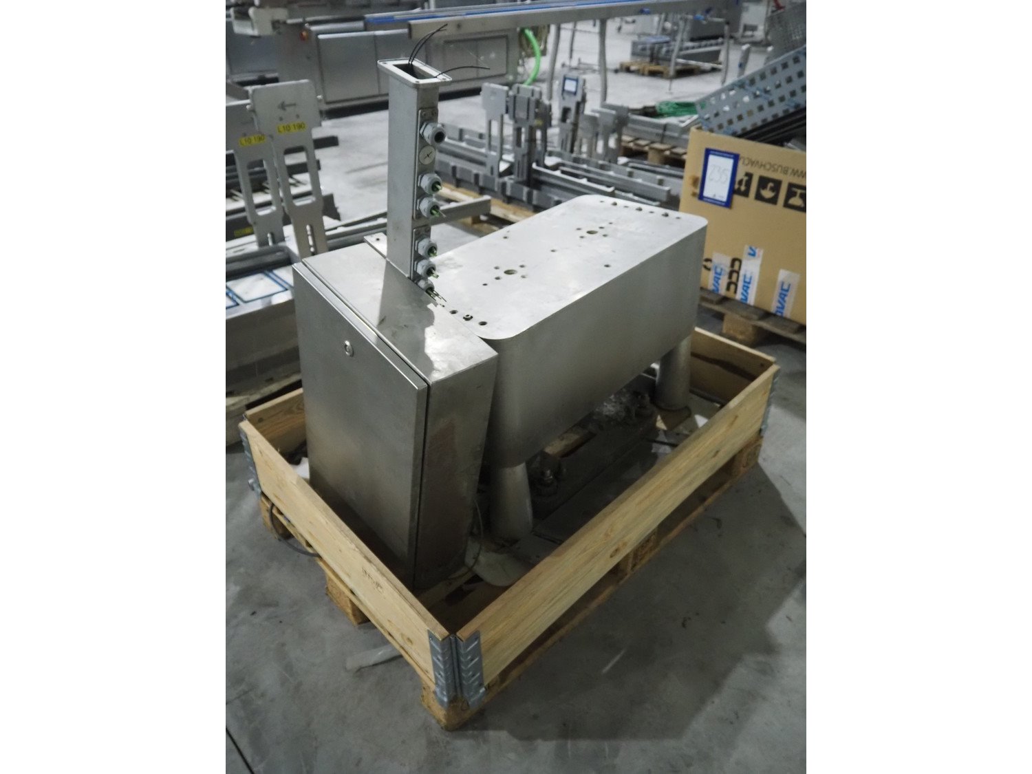 Pallet with various parts for traysealer, dimensions: 1200 mm x 800 mm x 1100 mm. Kavel locatie: Langereijt 29A, 5091 JP Middelbeers, Nederland