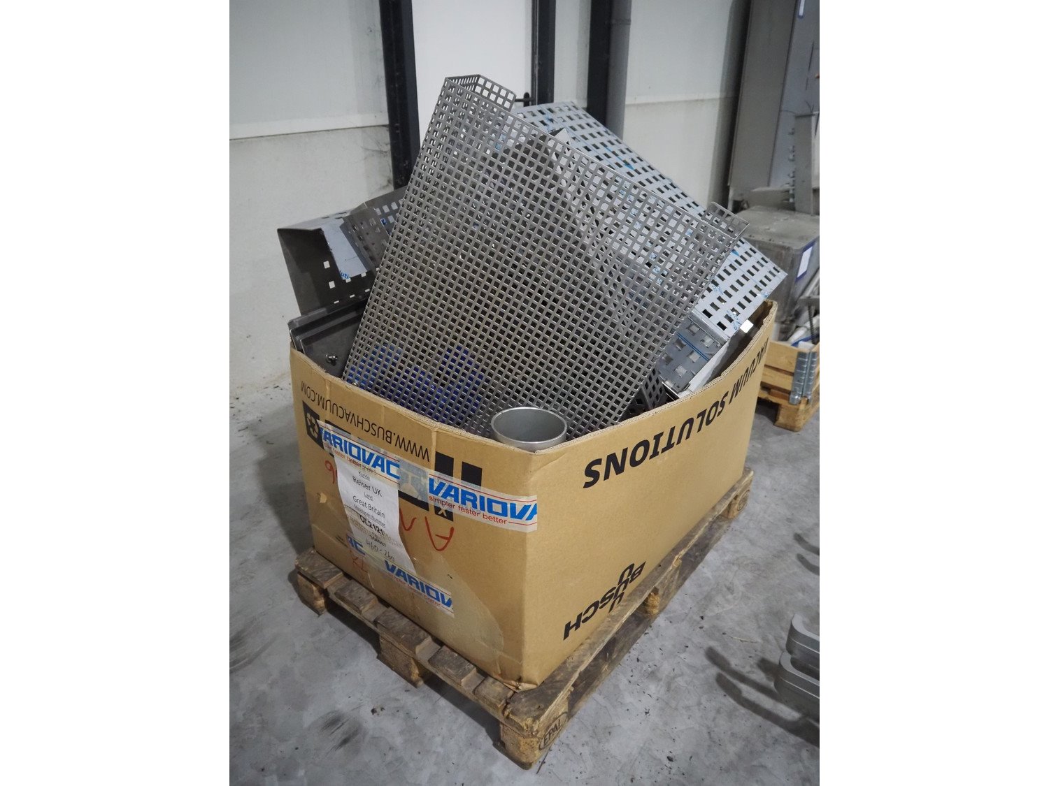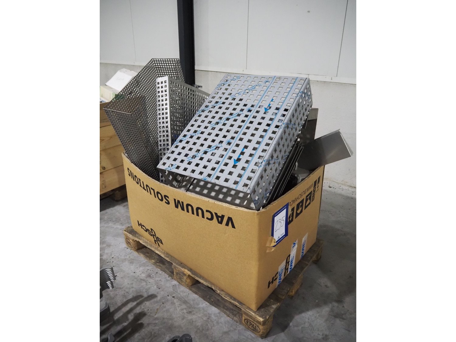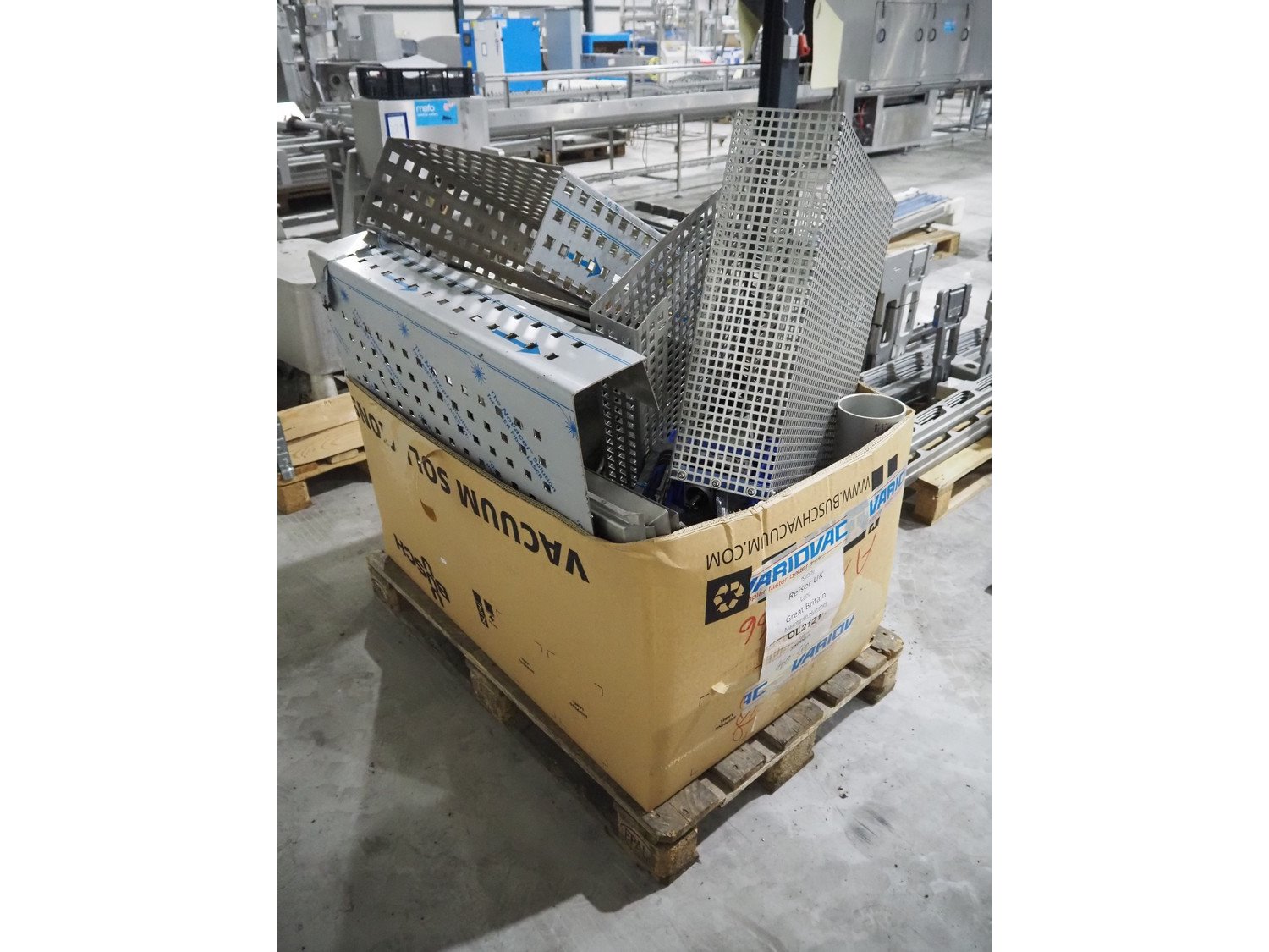 Pallet with parts and s/s covers for Sealpac traysealer, dimensions: 1200 mm x 800 mm x 1200 mm. Kavel locatie: Langereijt 29A, 5091 JP Middelbeers, Nederland