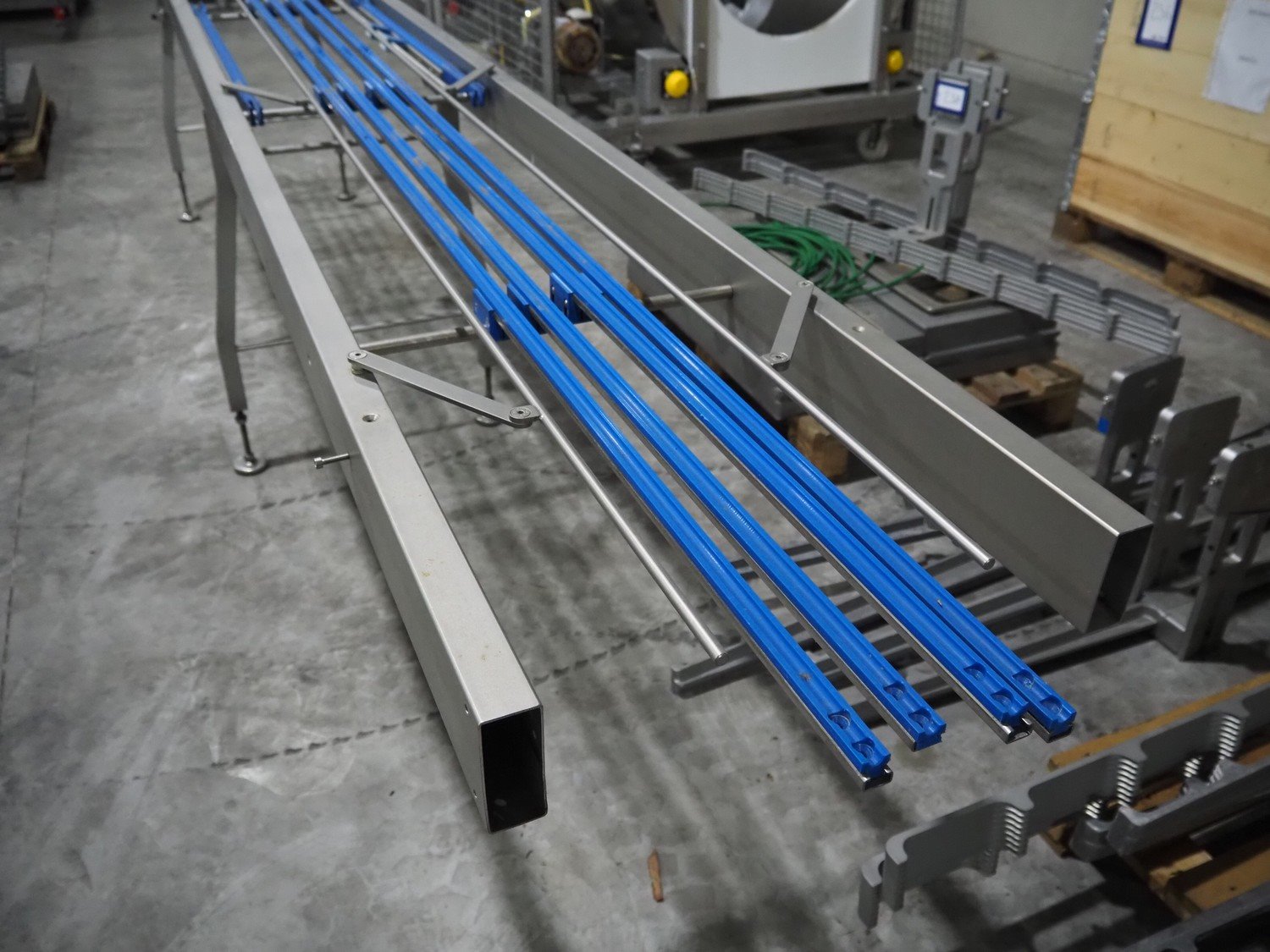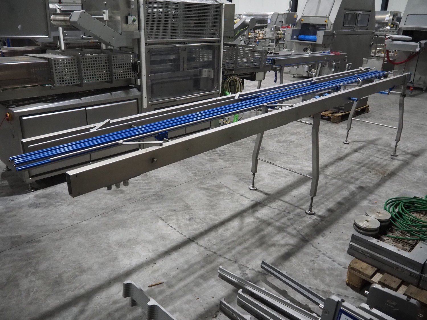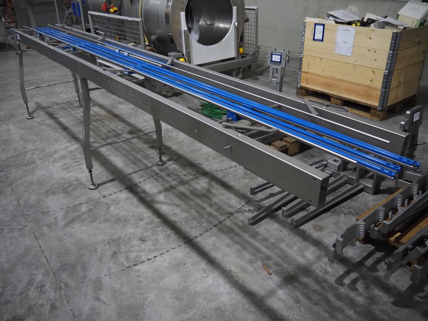 Sealpac s/s frame for transport belt, 4 chains, chain width: 155 mm, total dimensions: 4200 mm x 660 mm x 1050 mm. Kavel locatie: Langereijt 29A, 5091 JP Middelbeers, Nederland
