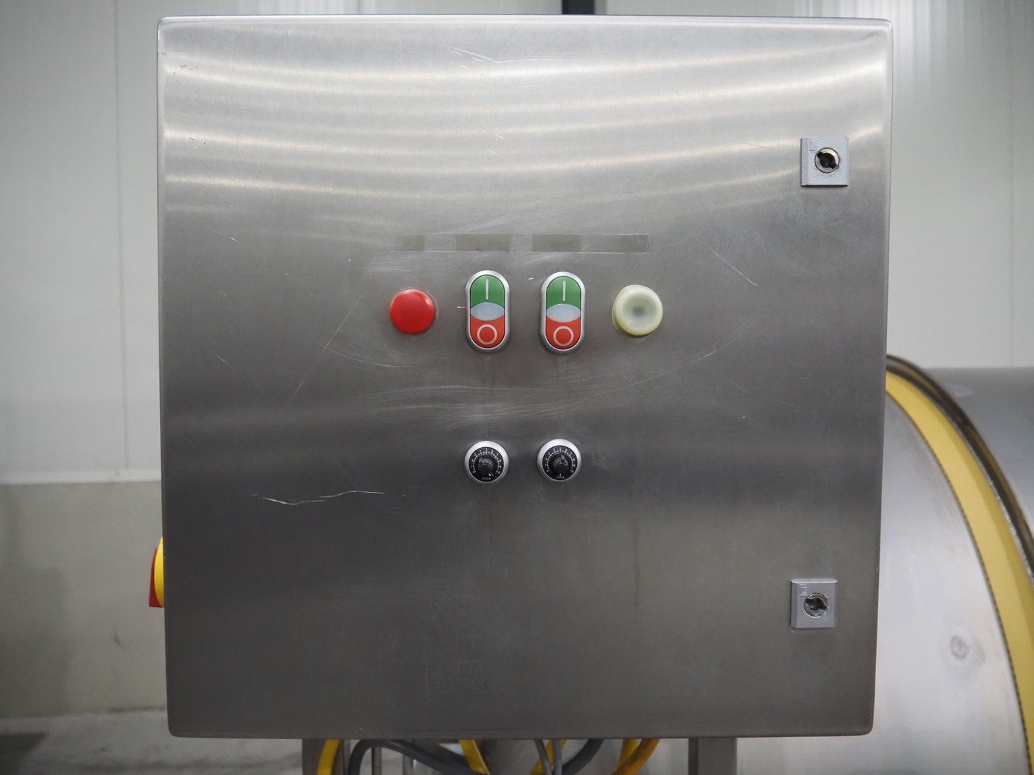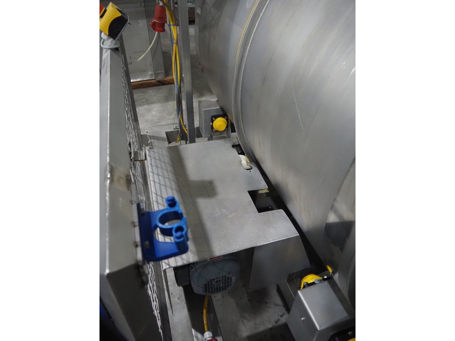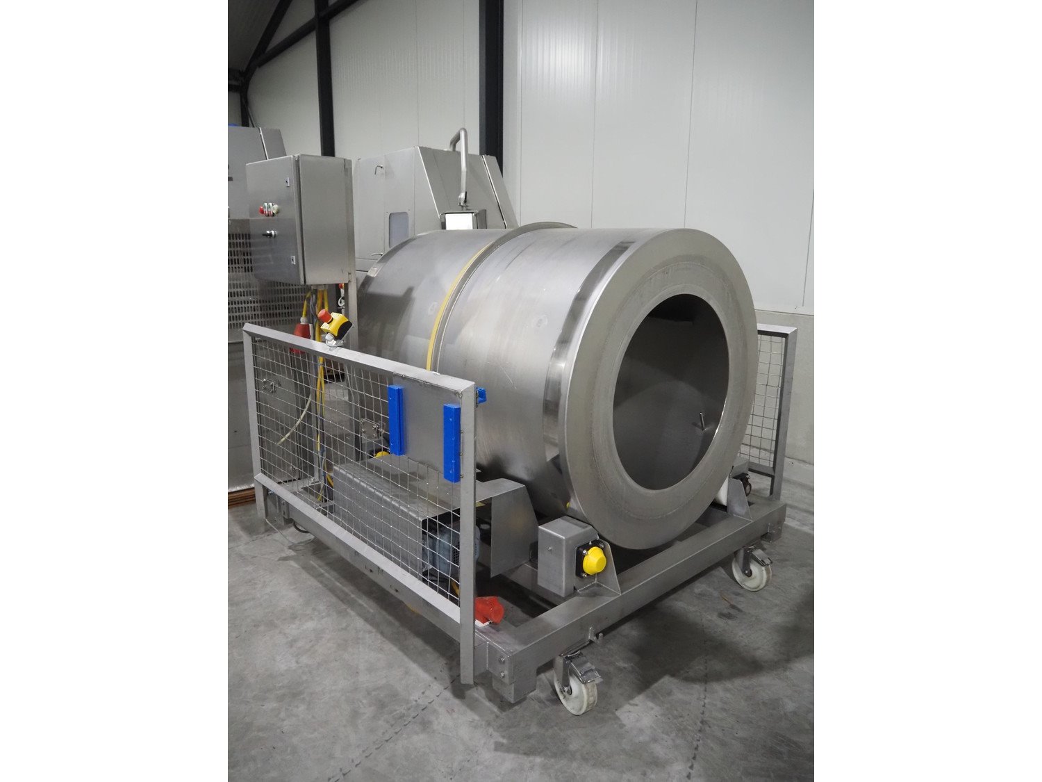 S/s mobile marinate tumbler, drum dimensions: Ø 1230 mm x 1510 mm, total dimensions: 2000 mm x 1950 mm x 1850 mm. Kavel locatie: Langereijt 29A, 5091 JP Middelbeers, Nederland