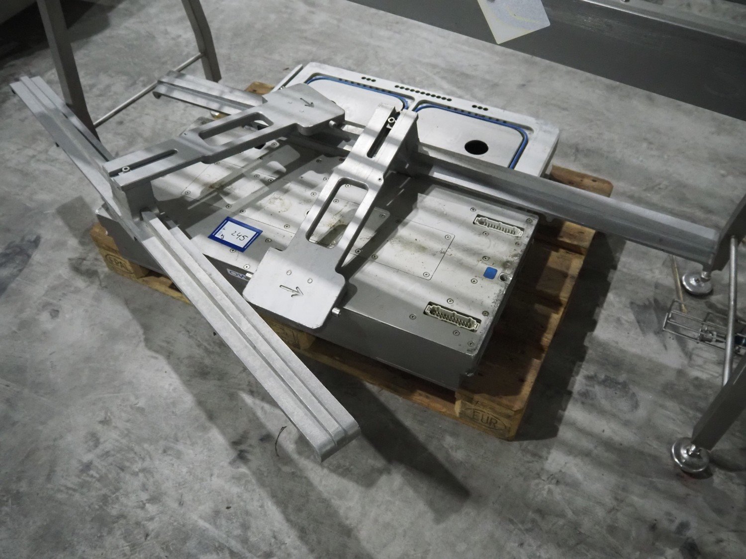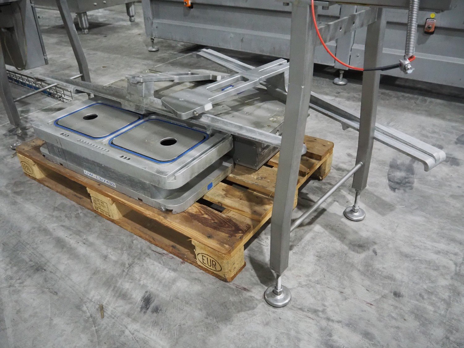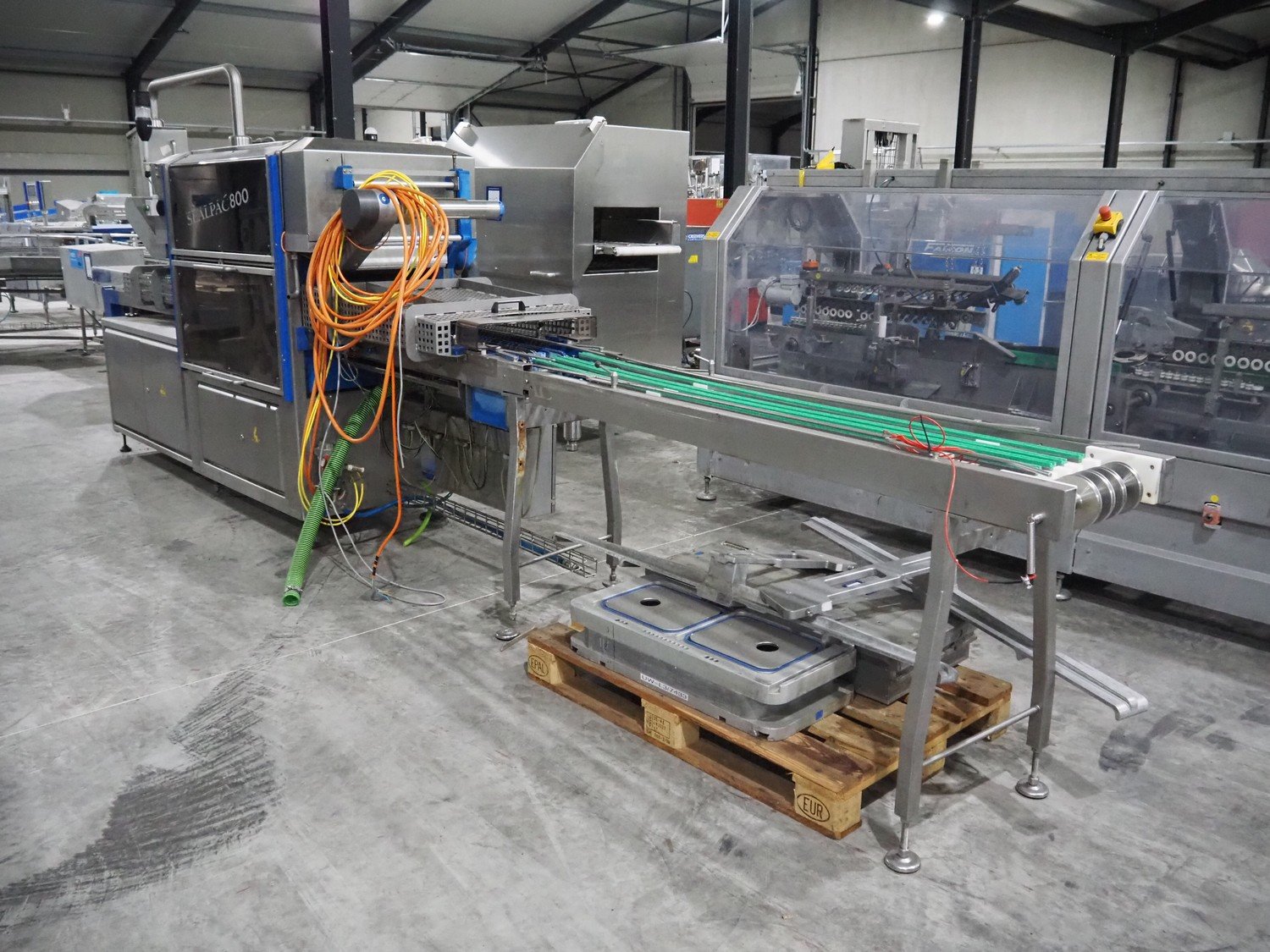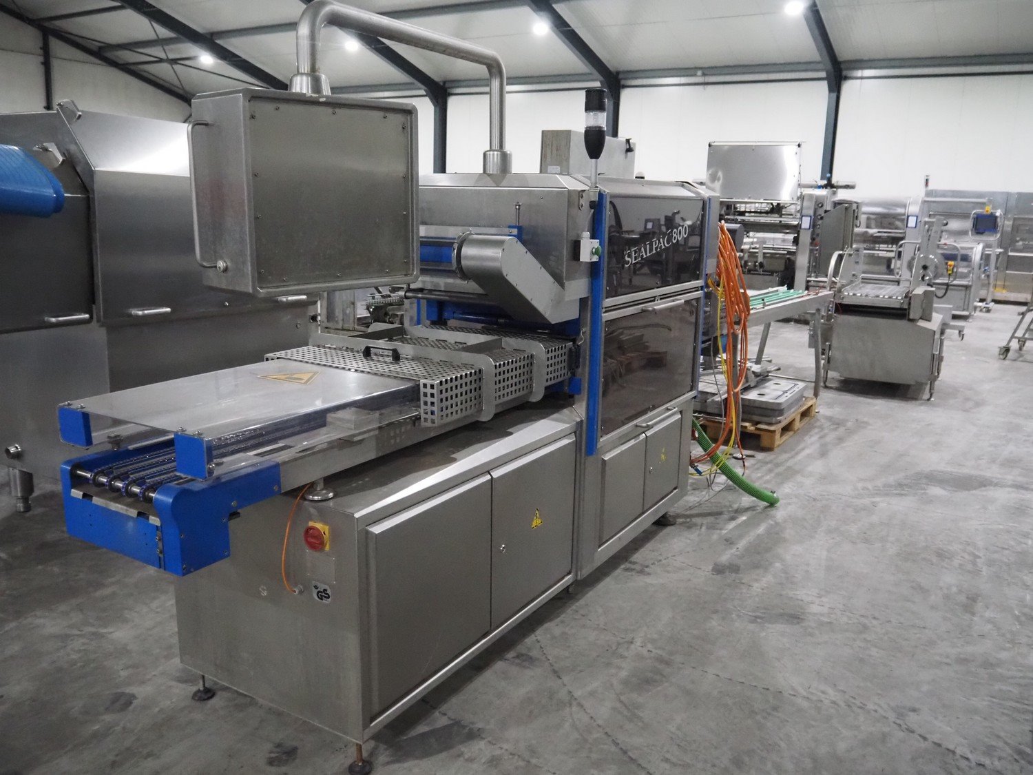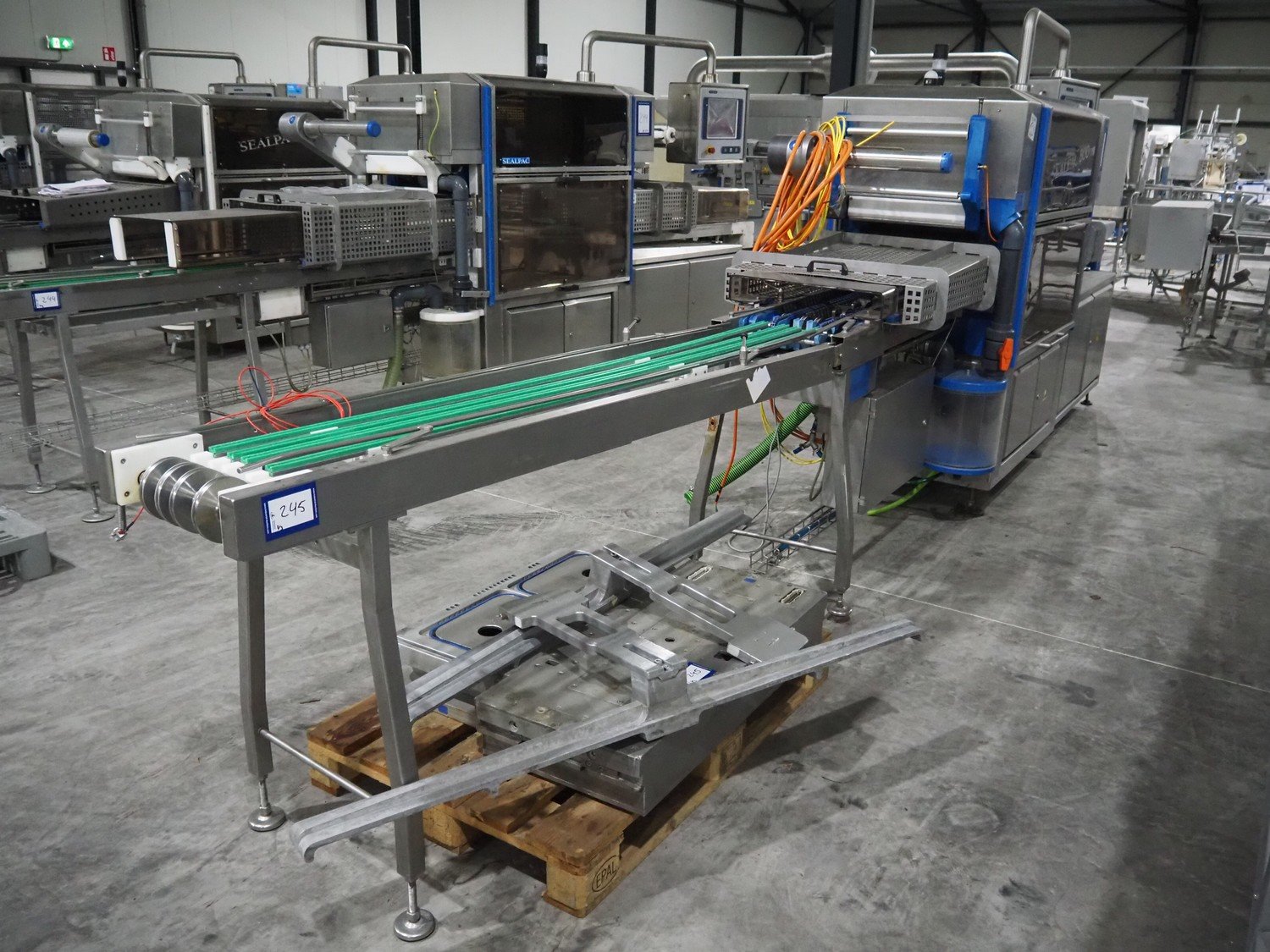 Sealpac traysealer, type: Sealpac 800, serial number: TVG 01124801, year of construction: 2005, 400/230 V, 3 Ph, 10 kW, dye: (4x) 258 mm x 158 mm, total dimensions: 6100 mm x 950 mm x 2100 mm. Including pallet with dye, dye: (2x) 304 mm x 243 mm, total dimensions: 1200 mm x 800 mm x 400 mm. Kavel locatie: Langereijt 29A, 5091 JP Middelbeers, Nederland