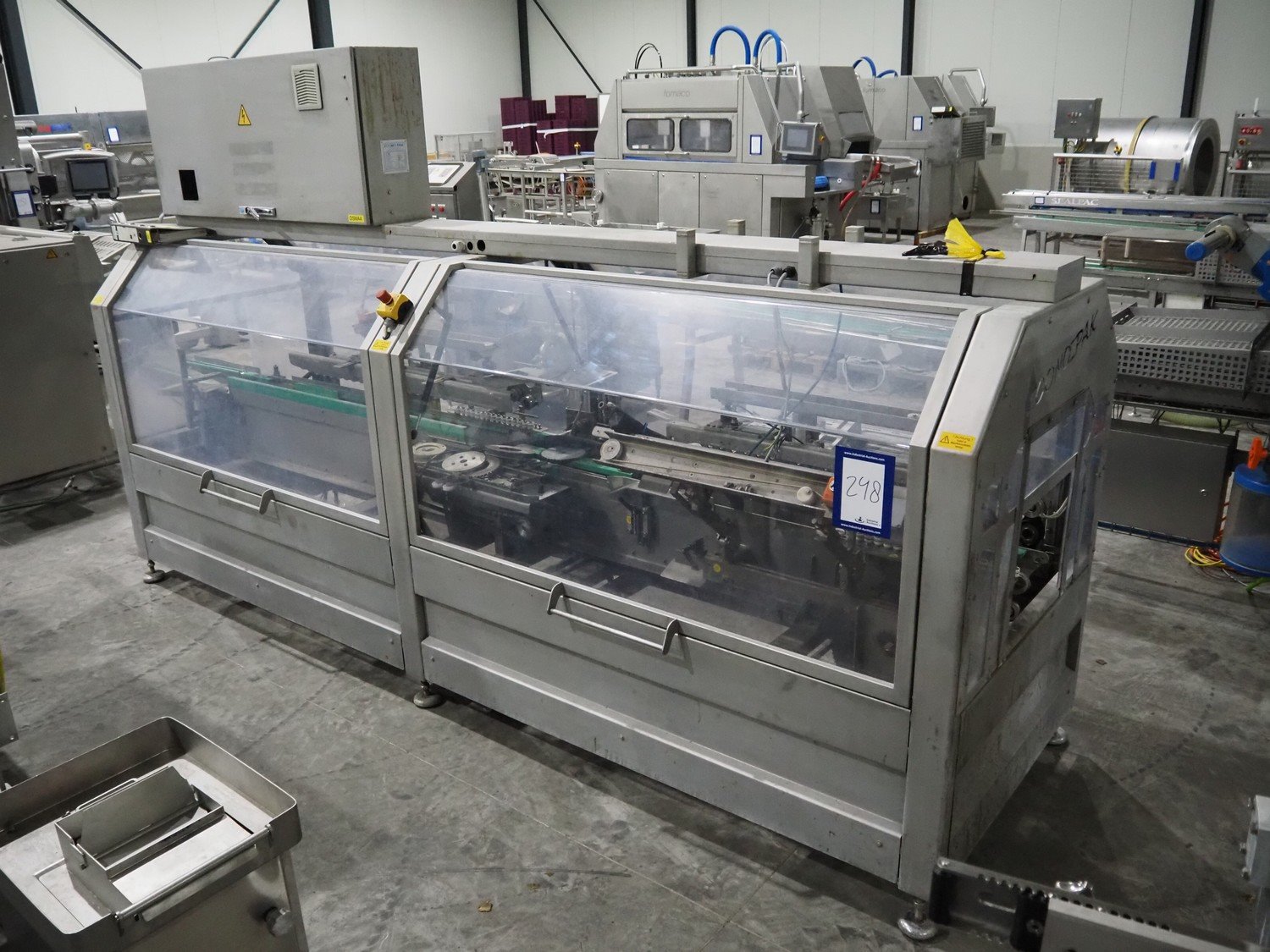 Econopak carton erector, type: GVE-DL, year of construction: 2003, 400 V, 3 PH, 50 Hz, 13 A, 6 kW, clearance: 190 mm x 175 mm, total dimensions: 4500 mm x 1250 mm x 2350 mm. Incomplete. Kavel locatie: Langereijt 29A, 5091 JP Middelbeers, Nederland