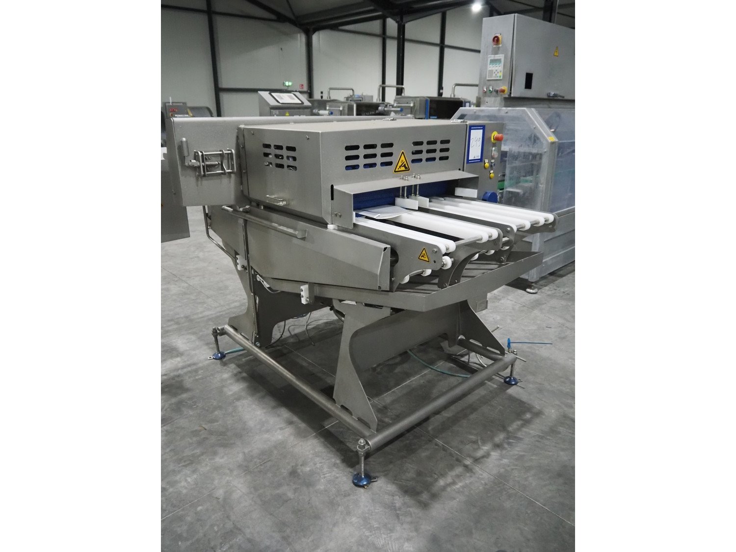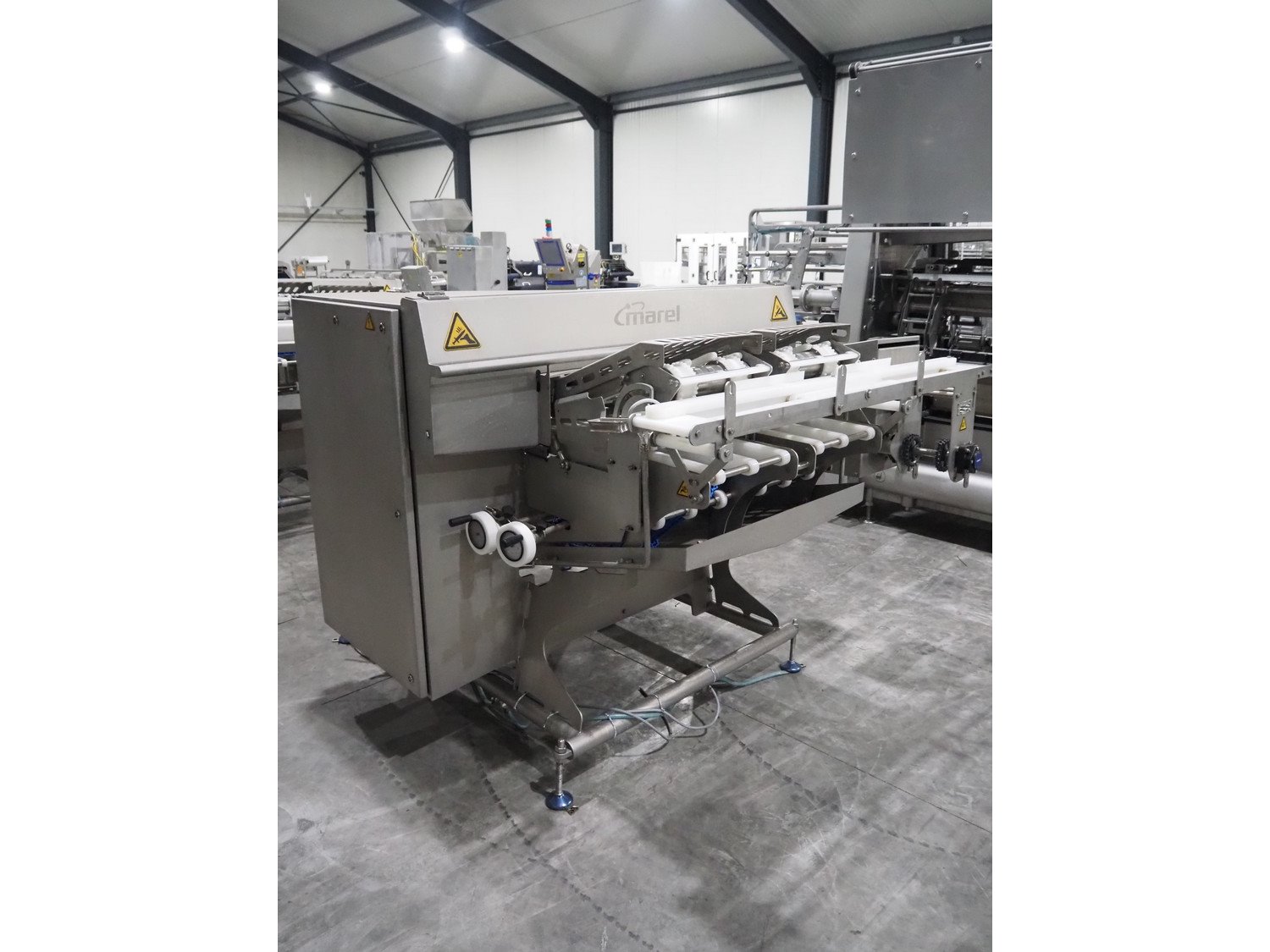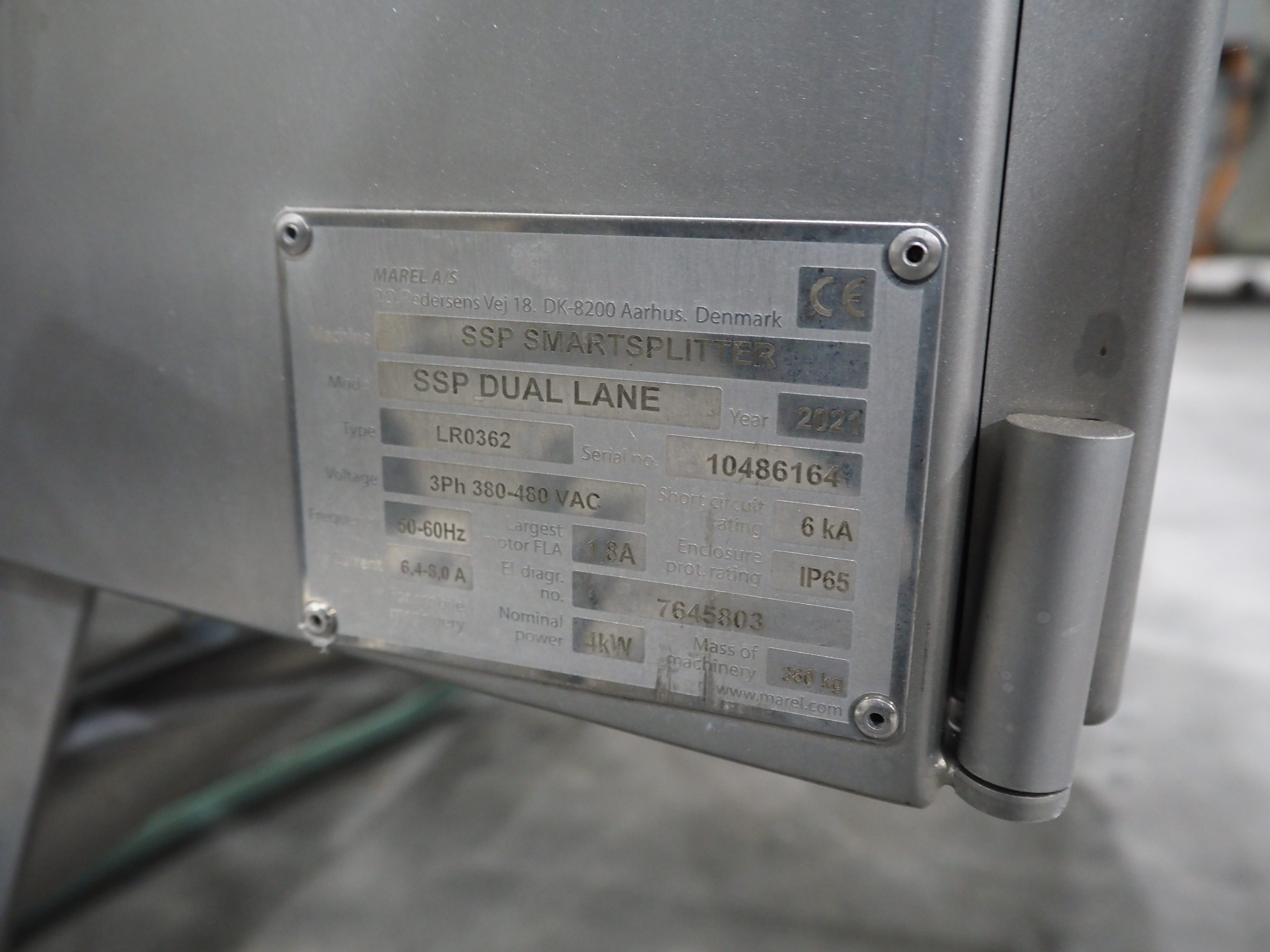 Marel smart splitter, model: SSP dual lane, serial number: 10486164, year of construction: 2021, belt width: (2x) 360 mm, (1x) 180 mm, clearance: (2x) 325 mm x 120 mm, working width: 300 mm, total dimensions: 2090 mm x 1850 mm x 1460 mm. Kavel locatie: Langereijt 29A, 5091 JP Middelbeers, Nederland