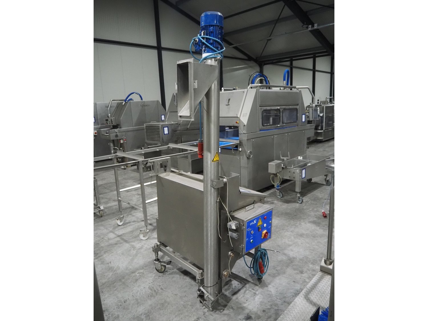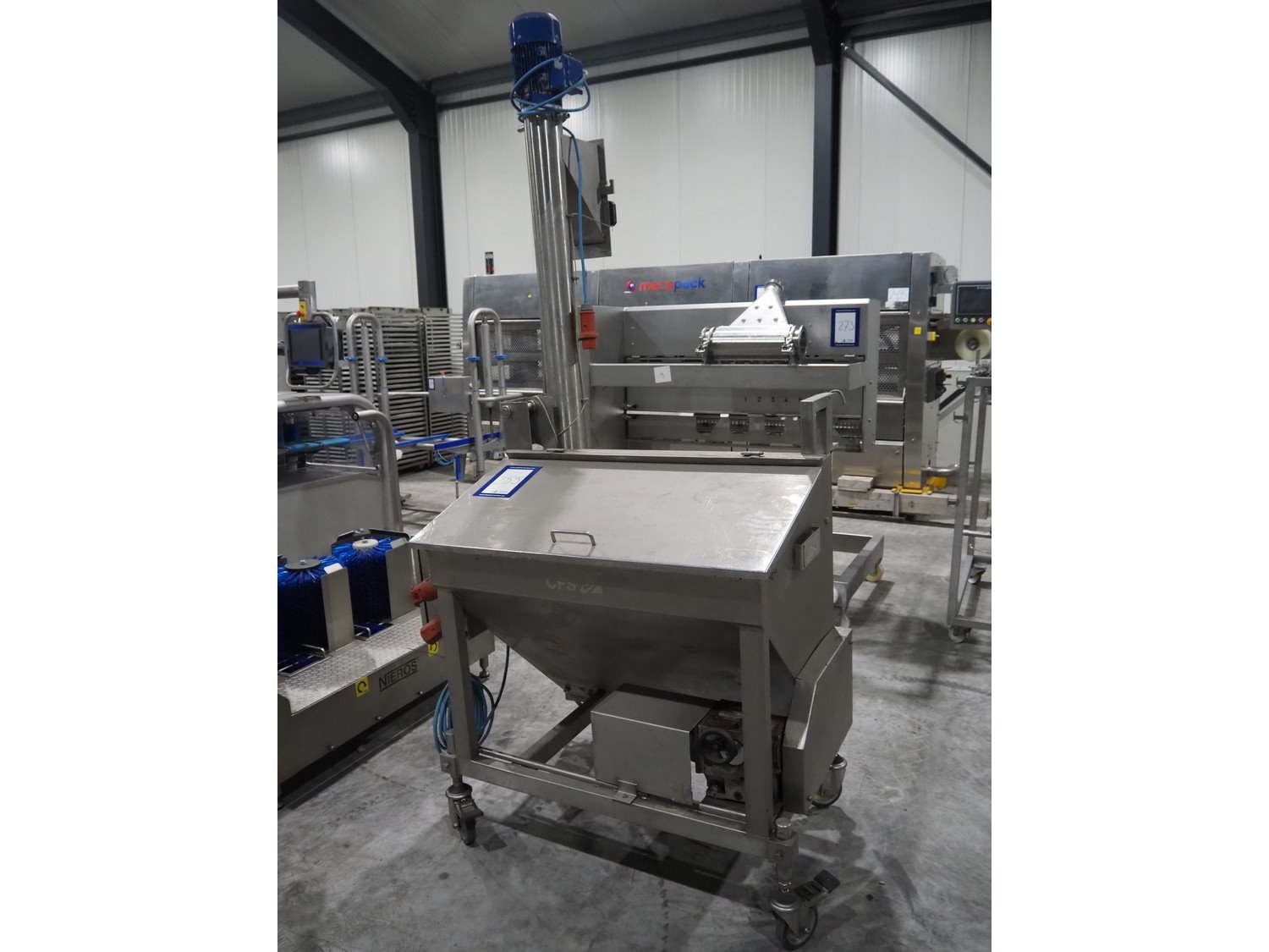 CFS mobile bunker for bread crumbs, type: BRF 250, machine number: 213, year of construction: 2004, 400 V, 3 Ph, 50 Hz, 3.49 A, 0.92 kW, weight: 230 kg, elevating height: 1860 mm, total dimensions: 1300 mm x 1000 mm x 2600 mm. Kavel locatie: Langereijt 29A, 5091 JP Middelbeers, Nederland