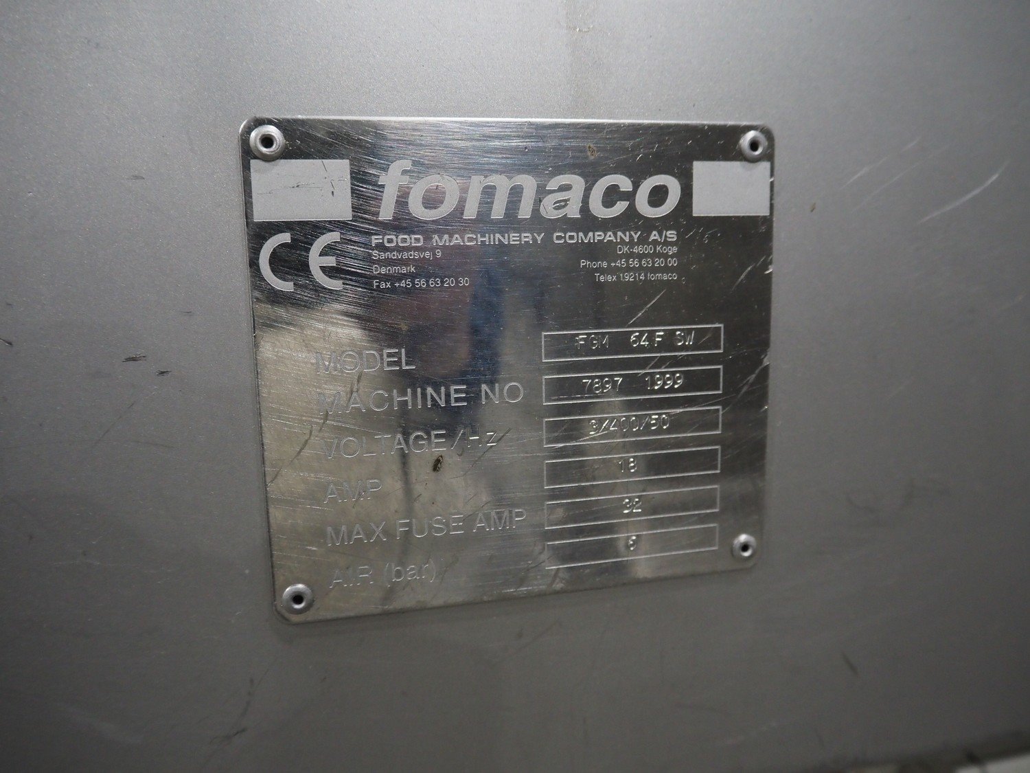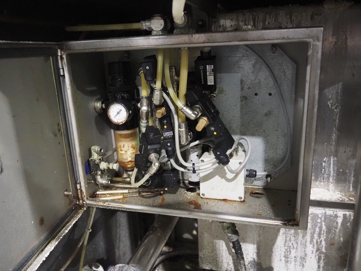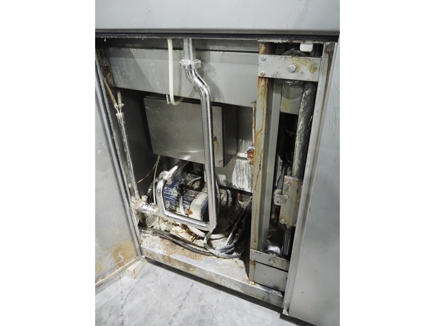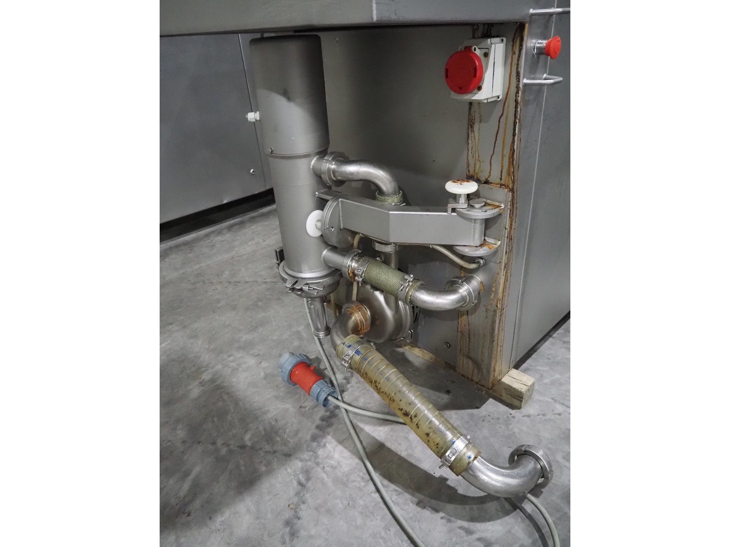 Fomaco A/S injector, model: FGM 64F SW, machine number: 7897 1999, year of construction: 1999, 400 V, 3 Ph, 50 Hz, 18/32 A, 6 bar, s/s walking beam width: 540 mm, clearance: 540 mm x 150 mm, total dimensions: 1680 mm x 850 mm x 2220 mm. Including Fomaco A/S mobile filter tub, model: PFS 5/225 ROS, machine number: 8720, year of construction: 2001, dimensions: 1800 mm x 620 mm x 920 mm. Filter tub is incomplete. Kavel locatie: Langereijt 29A, 5091 JP Middelbeers, Nederland