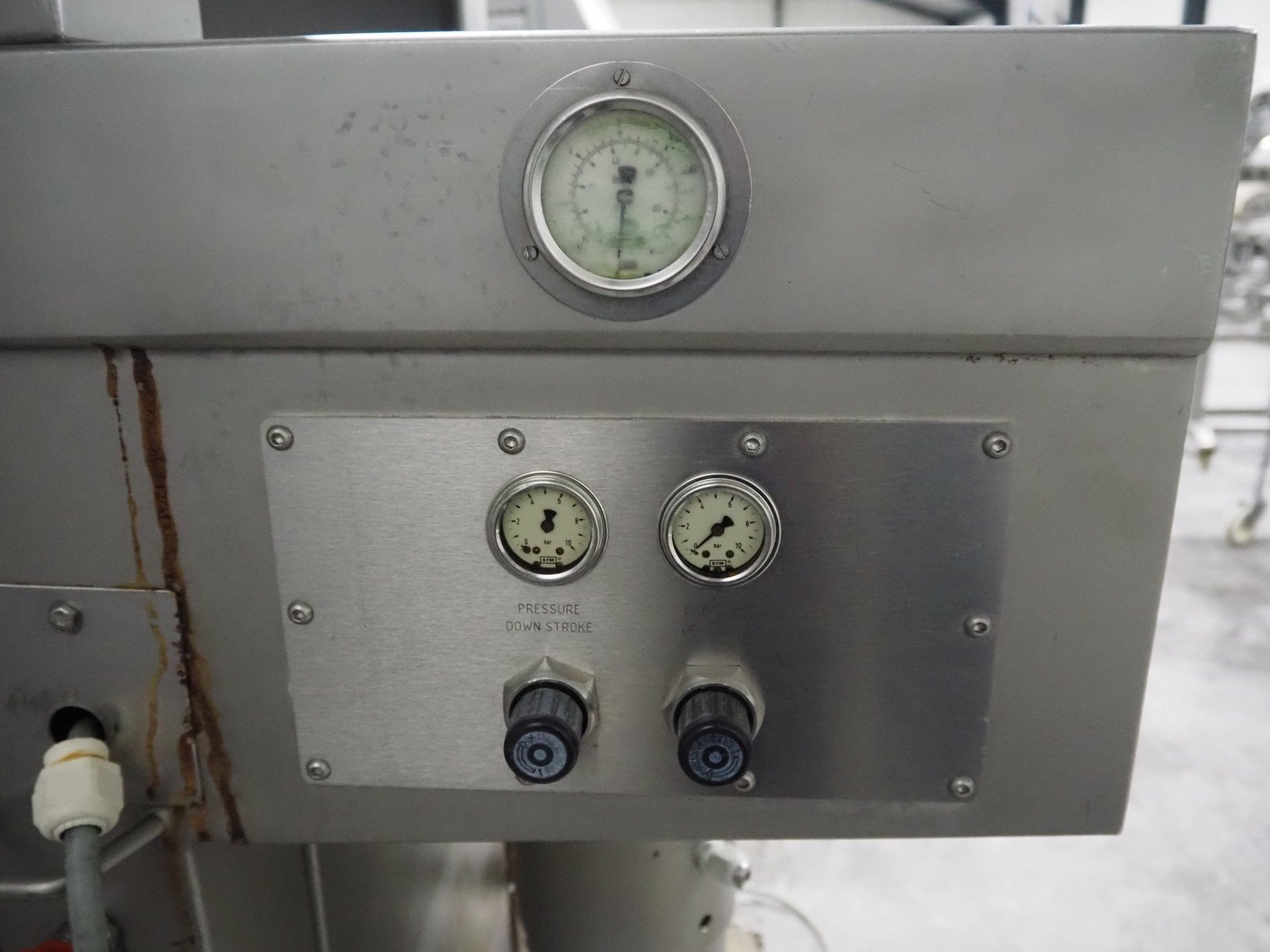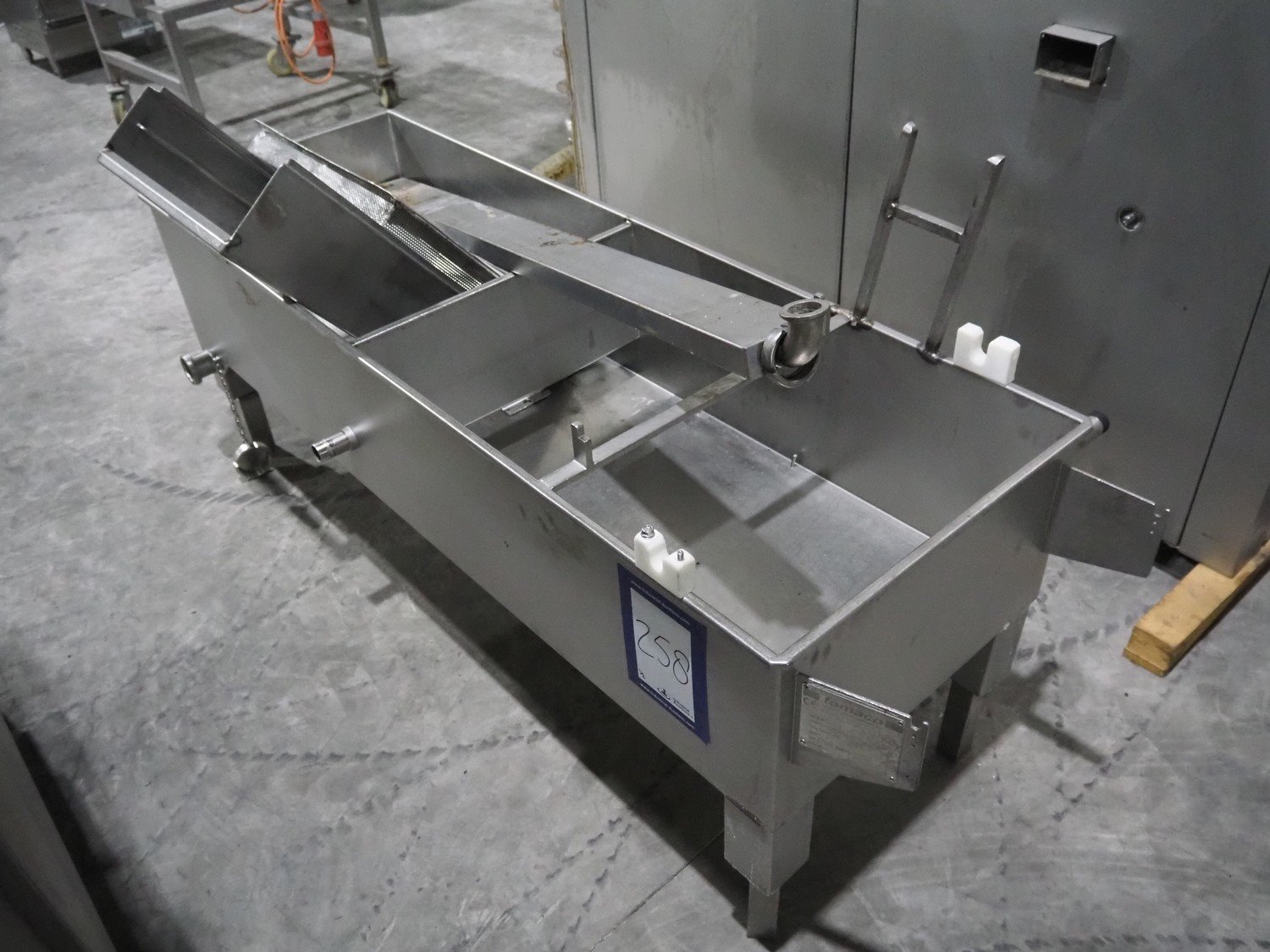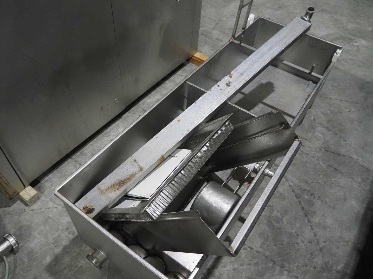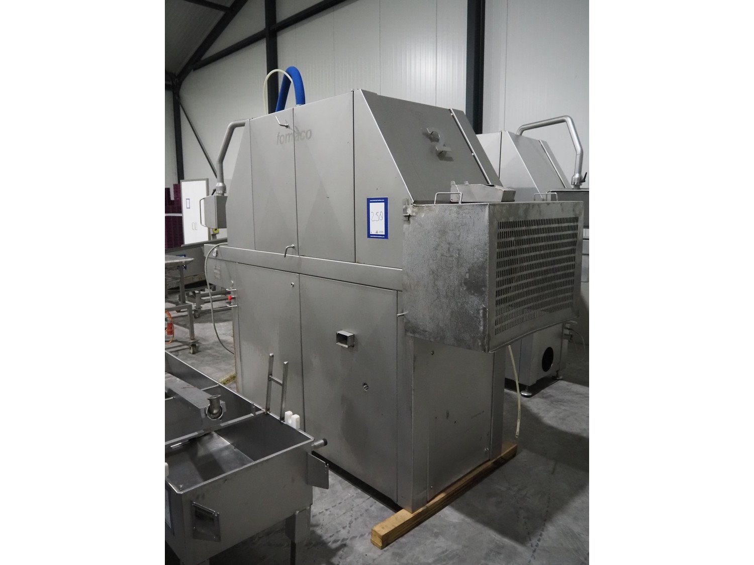 Fomaco A/S injector, model: FGM 64F SW, machine number: 7897 1999, year of construction: 1999, 400 V, 3 Ph, 50 Hz, 18/32 A, 6 bar, s/s walking beam width: 540 mm, clearance: 540 mm x 150 mm, total dimensions: 1680 mm x 850 mm x 2220 mm. Including Fomaco A/S mobile filter tub, model: PFS 5/225 ROS, machine number: 8720, year of construction: 2001, dimensions: 1800 mm x 620 mm x 920 mm. Filter tub is incomplete. Kavel locatie: Langereijt 29A, 5091 JP Middelbeers, Nederland