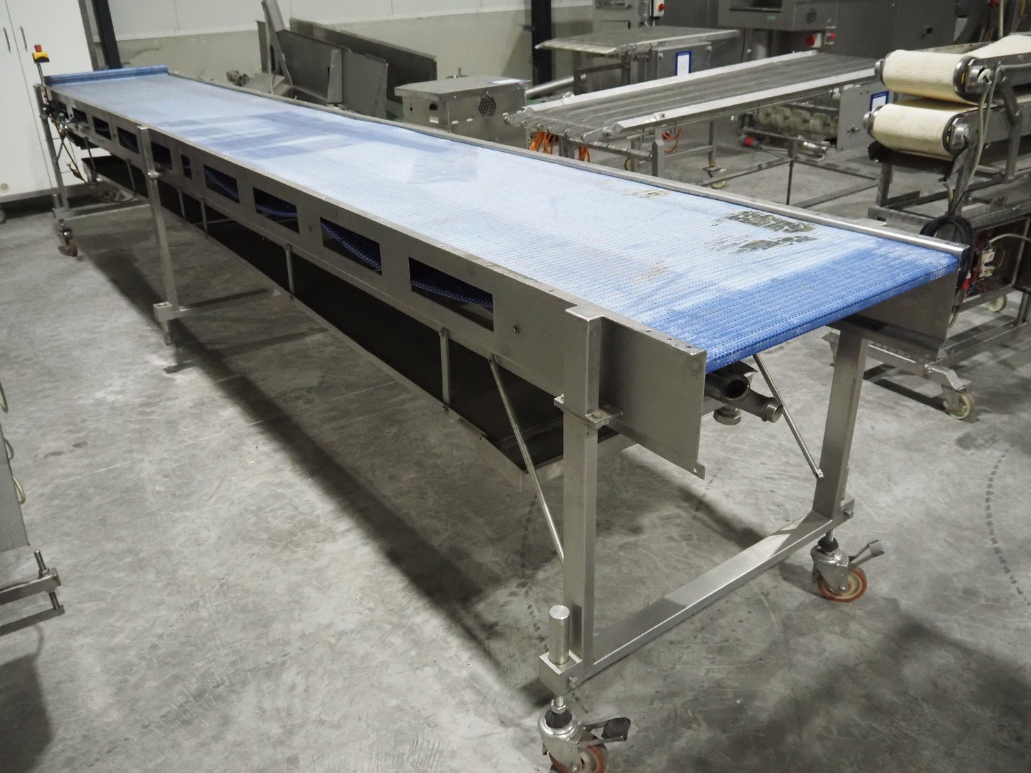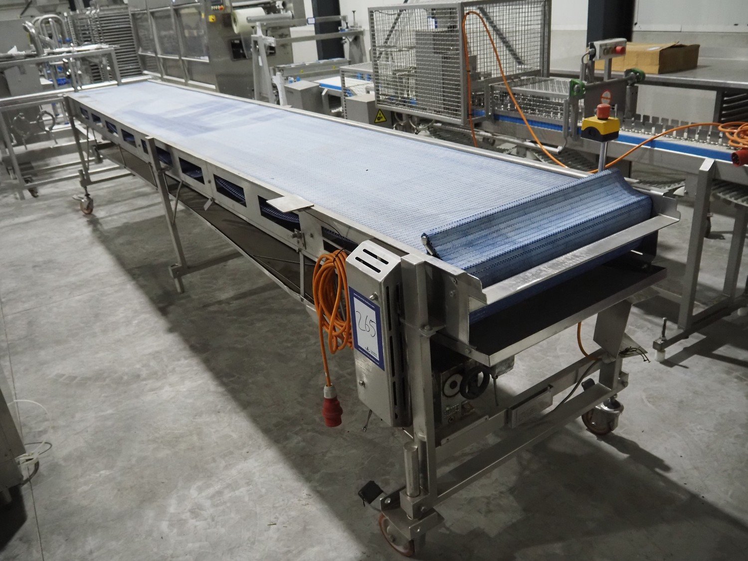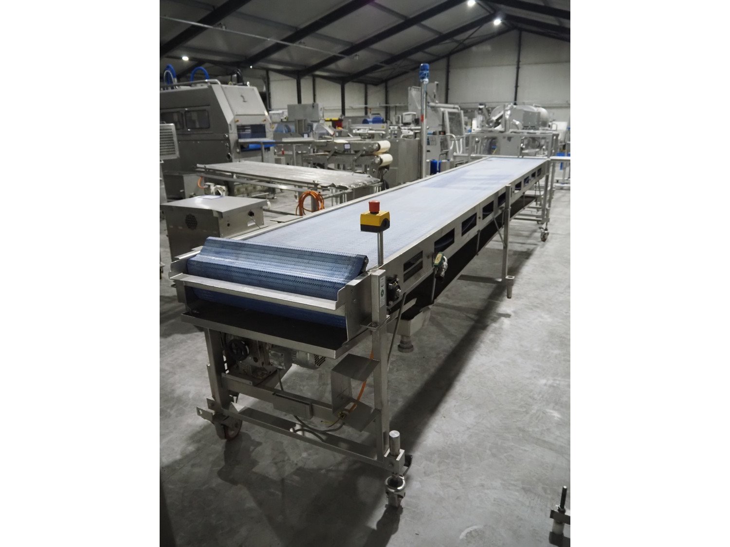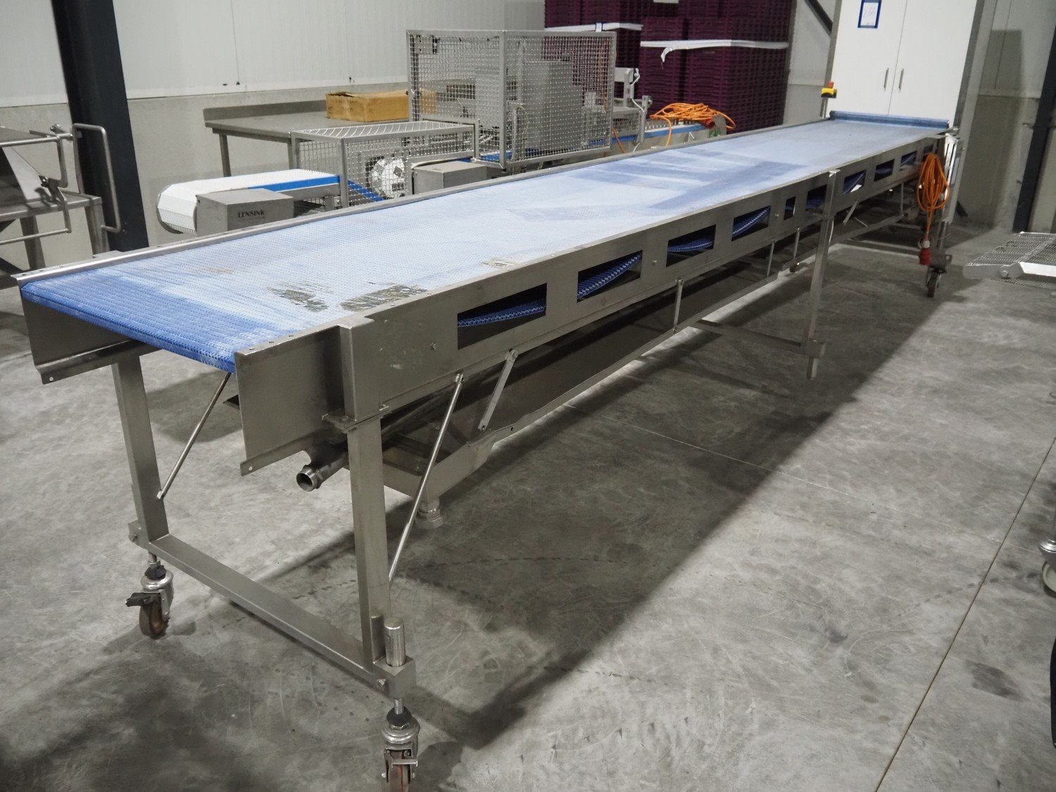 CFS mobile transport belt, type: TCP 600, machine number: 375, year of construction: 2001, 400 V, 3 Ph, 50 Hz, 1.42 A, 0.74 kW, weight: 325 kg, plastic belt, belt width: 800 mm, total dimensions: 5250 mm x 1000 mm x 1230 mm. Kavel locatie: Langereijt 29A, 5091 JP Middelbeers, Nederland