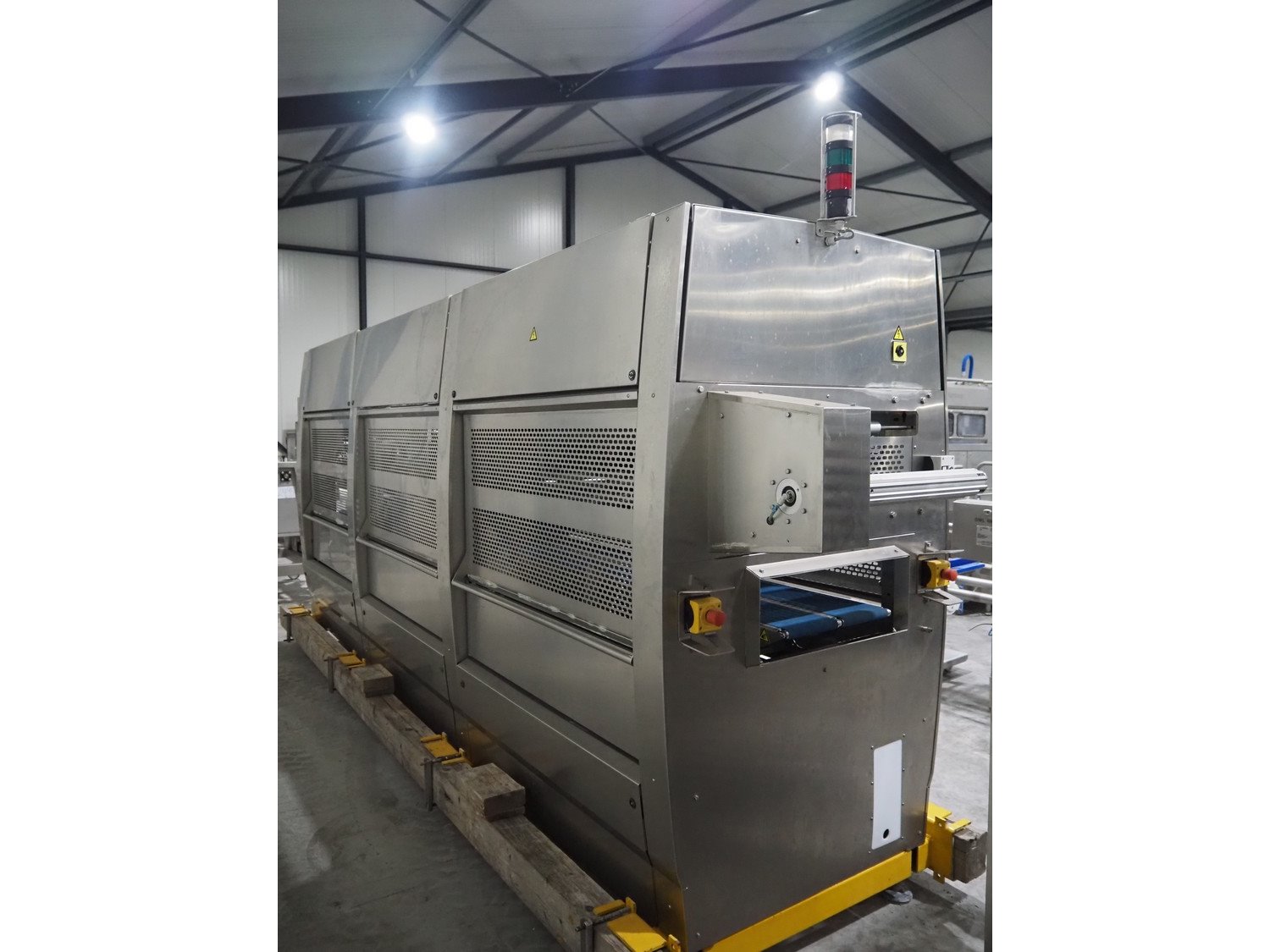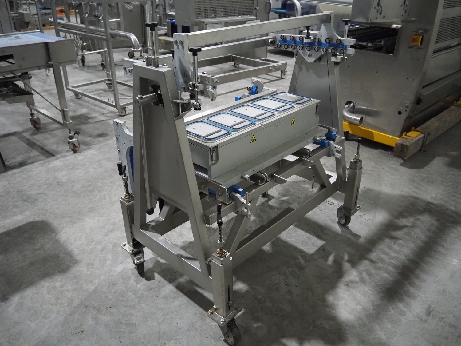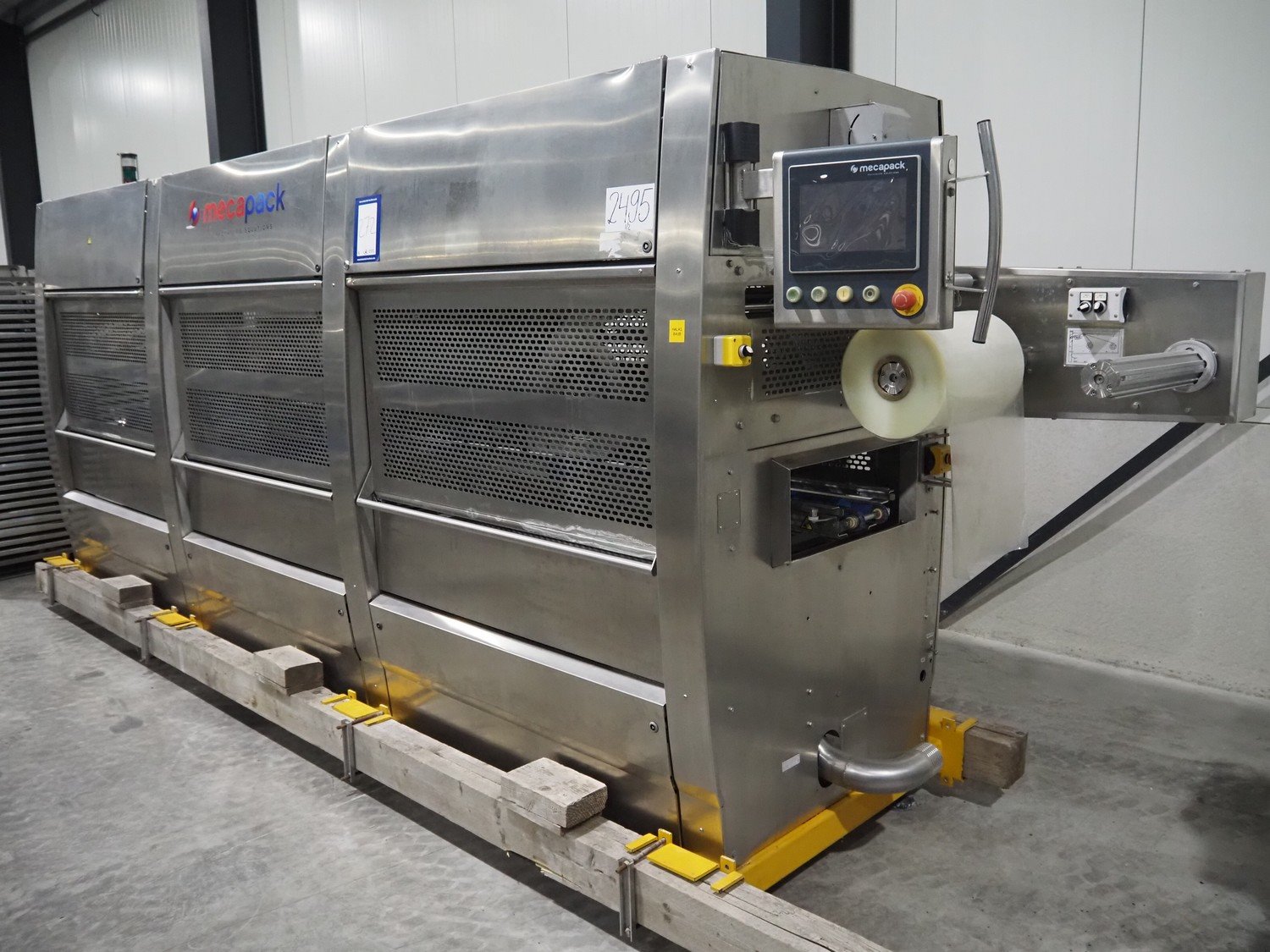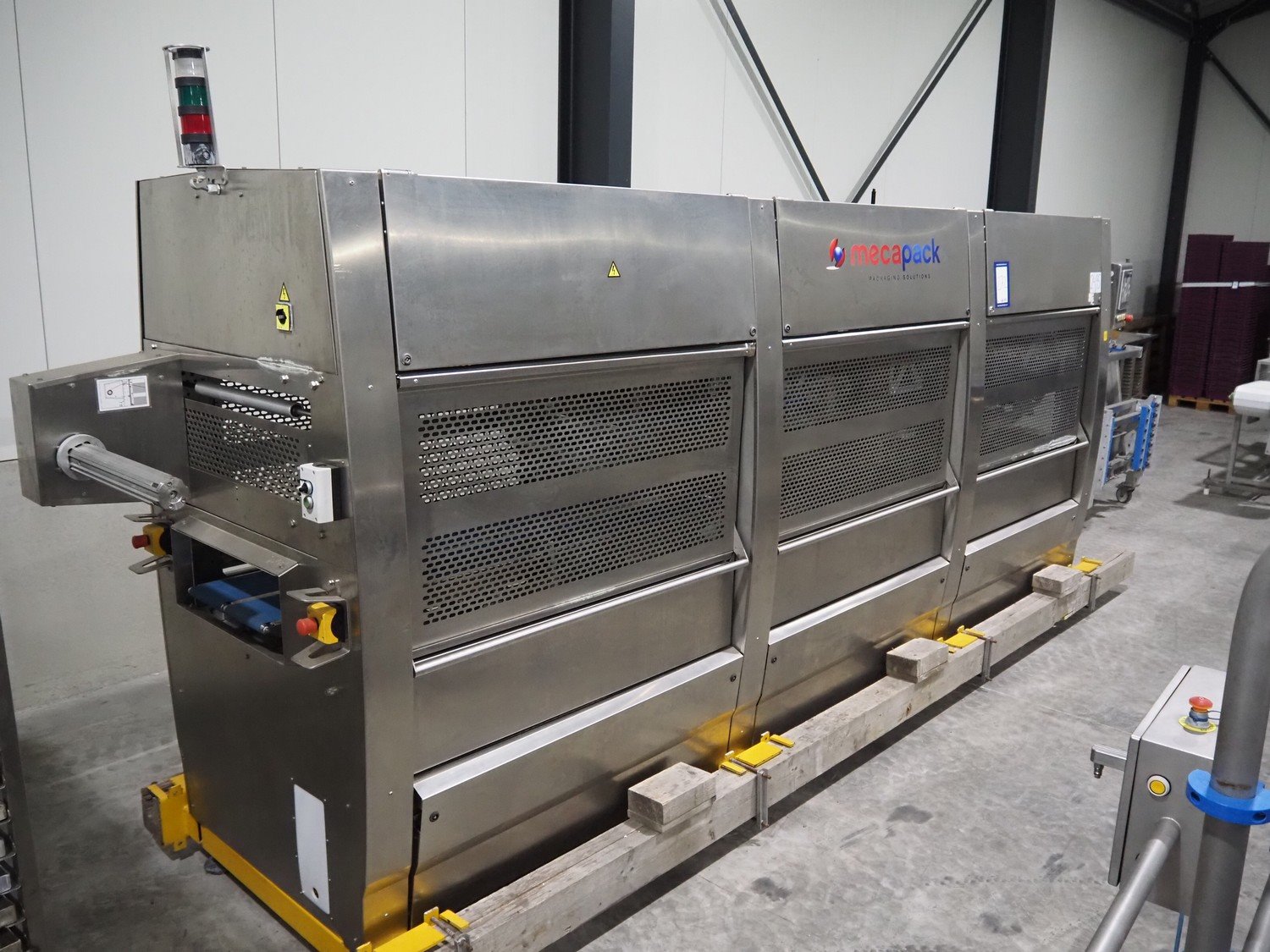 Mecapack traysealer, type: O² 7000, serial number: O07923, year of construction: 2016, 400 V, 3 Ph, 50 Hz, 20 kW, weight: 3000 kg, film width: 355 mm, total dimensions: 5800 mm x 900 mm x 2400 mm. Including s/s trolley with extra dye, dye dimensions: (5x) 148 mm x 233 mm, total dimensions trolley: 1400 mm x 1100 mm x 1400 mm. Kavel locatie: Langereijt 29A, 5091 JP Middelbeers, Nederland