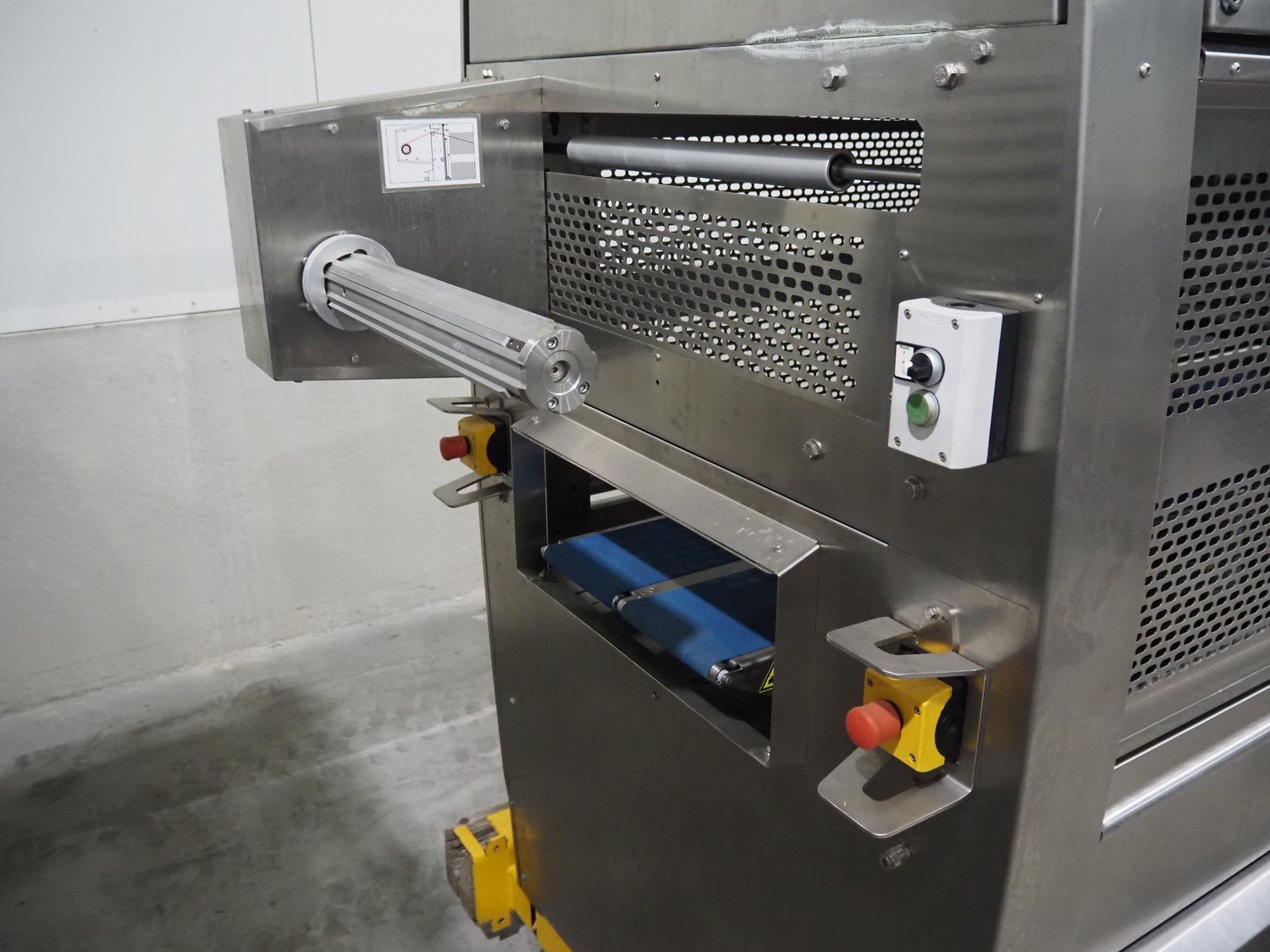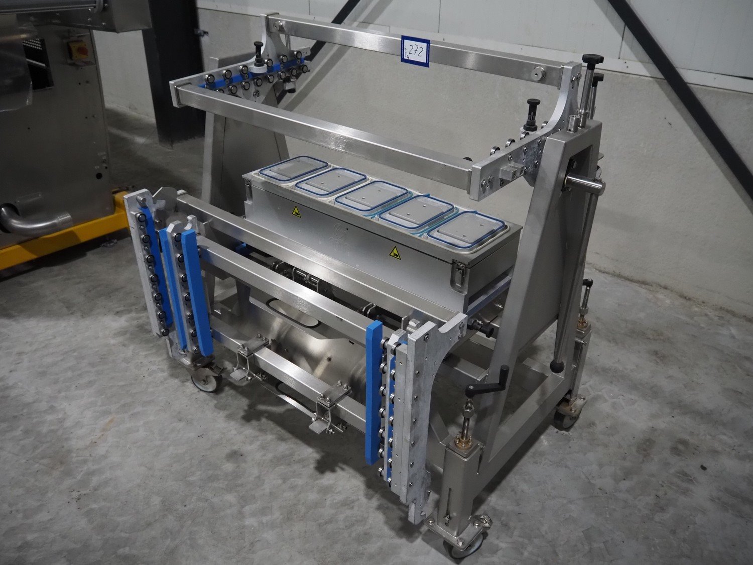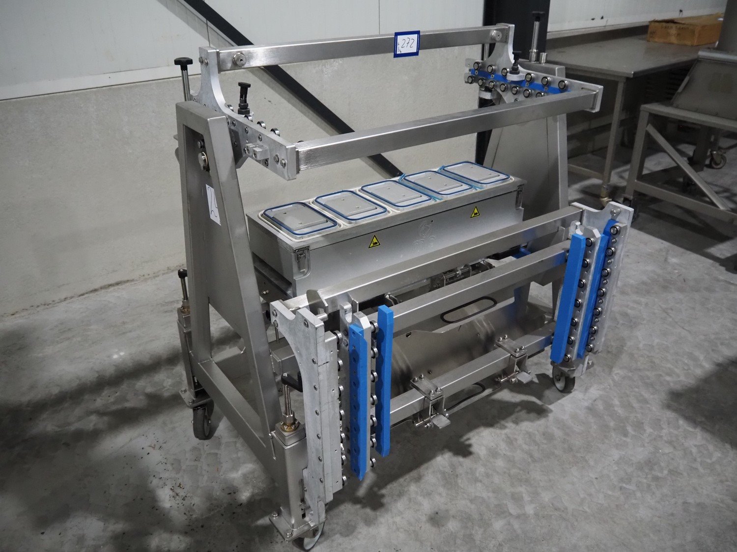 Mecapack traysealer, type: O² 7000, serial number: O07923, year of construction: 2016, 400 V, 3 Ph, 50 Hz, 20 kW, weight: 3000 kg, film width: 355 mm, total dimensions: 5800 mm x 900 mm x 2400 mm. Including s/s trolley with extra dye, dye dimensions: (5x) 148 mm x 233 mm, total dimensions trolley: 1400 mm x 1100 mm x 1400 mm. Kavel locatie: Langereijt 29A, 5091 JP Middelbeers, Nederland