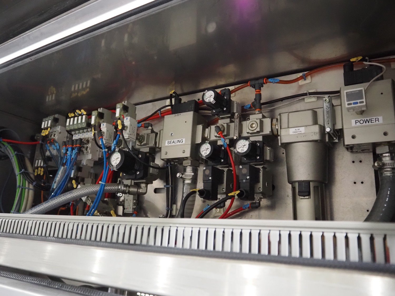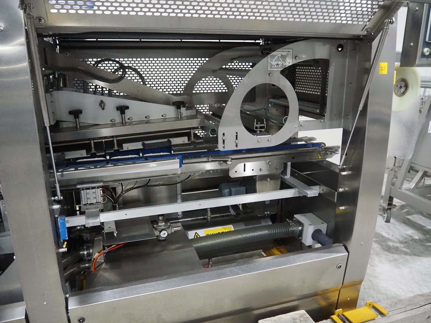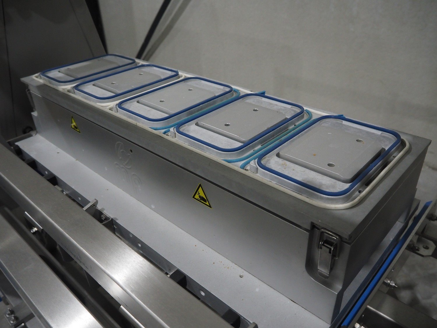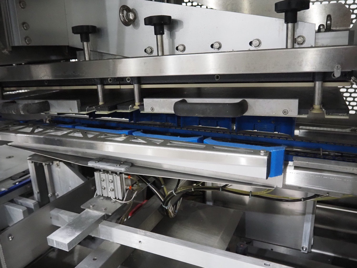 Mecapack traysealer, type: O² 7000, serial number: O07923, year of construction: 2016, 400 V, 3 Ph, 50 Hz, 20 kW, weight: 3000 kg, film width: 355 mm, total dimensions: 5800 mm x 900 mm x 2400 mm. Including s/s trolley with extra dye, dye dimensions: (5x) 148 mm x 233 mm, total dimensions trolley: 1400 mm x 1100 mm x 1400 mm. Kavel locatie: Langereijt 29A, 5091 JP Middelbeers, Nederland