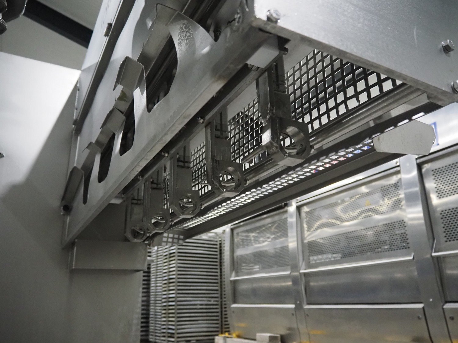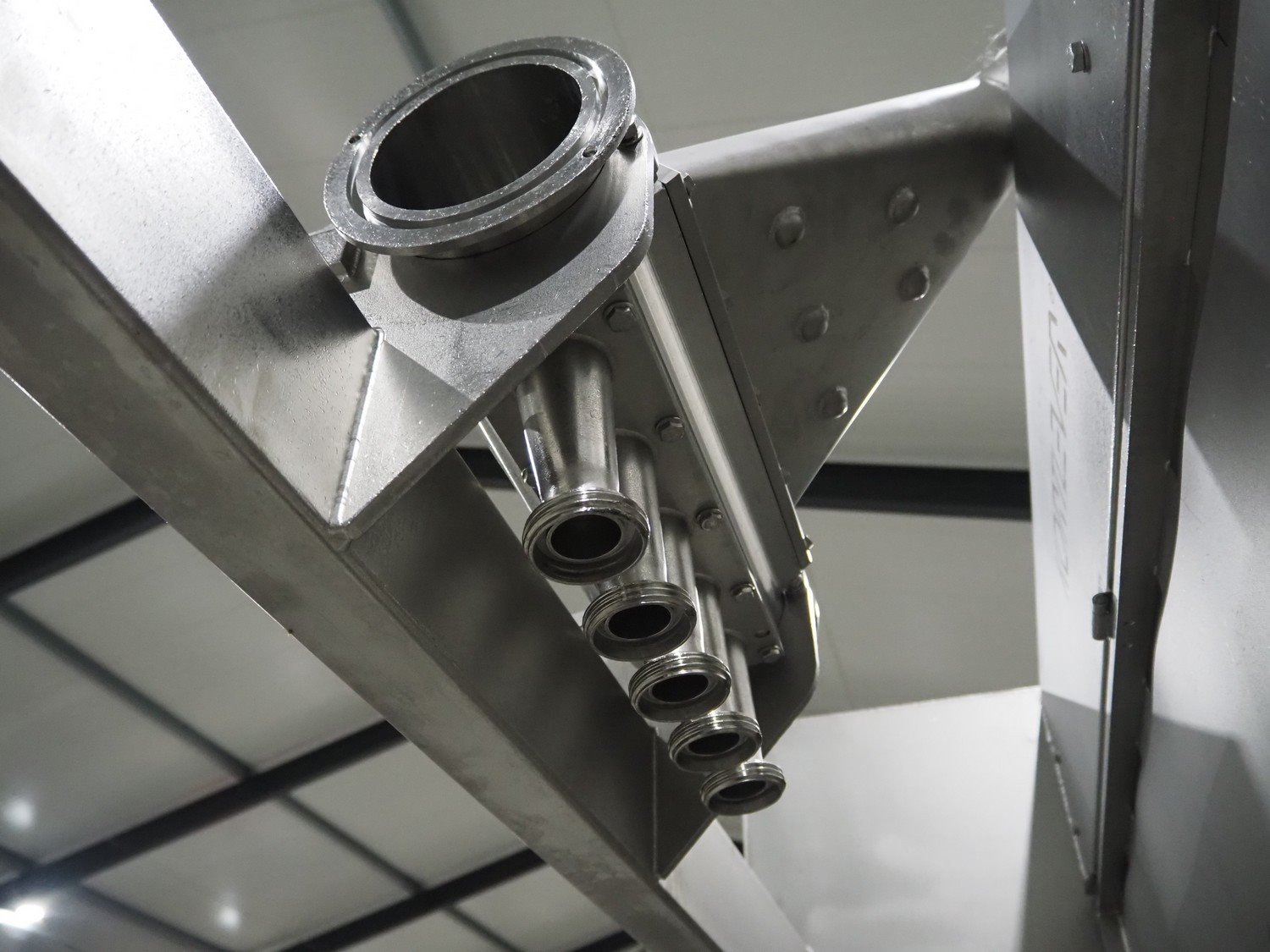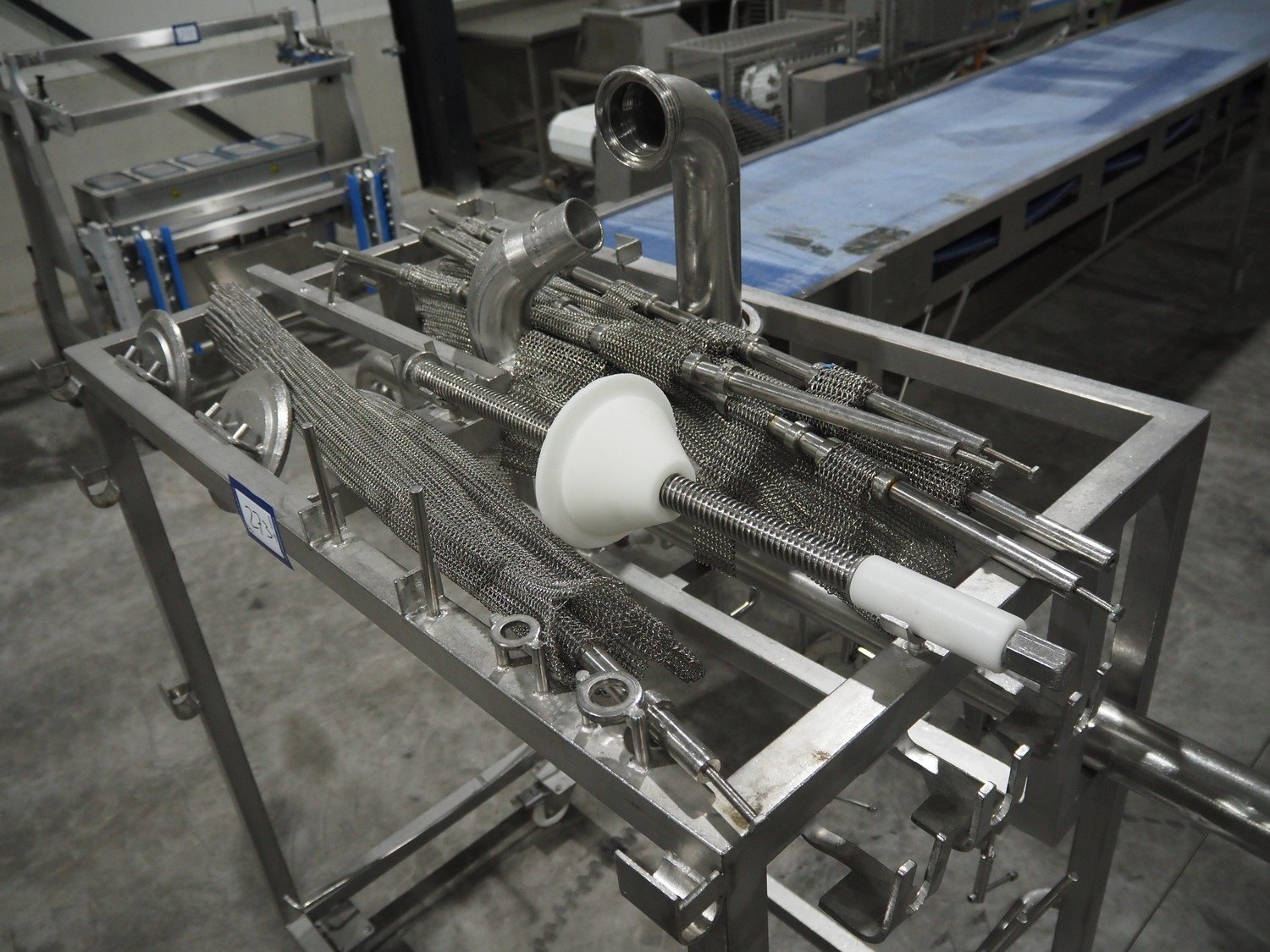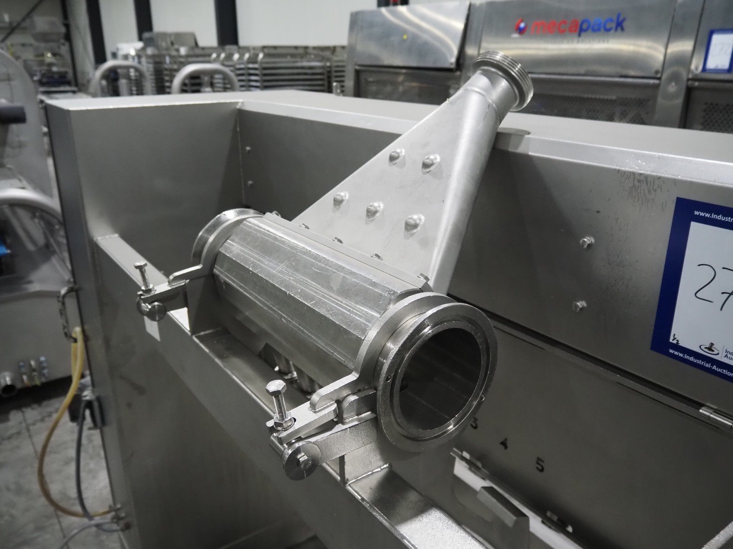 Kortlever mobile waterwheel, 5 heads, dimensions: 1700 mm x 1250 mm x 1700 mm. Incomplete. Including s/s trolley with parts, dimensions: 1300 mm x 750 mm x 1400 mm. Kavel locatie: Langereijt 29A, 5091 JP Middelbeers, Nederland