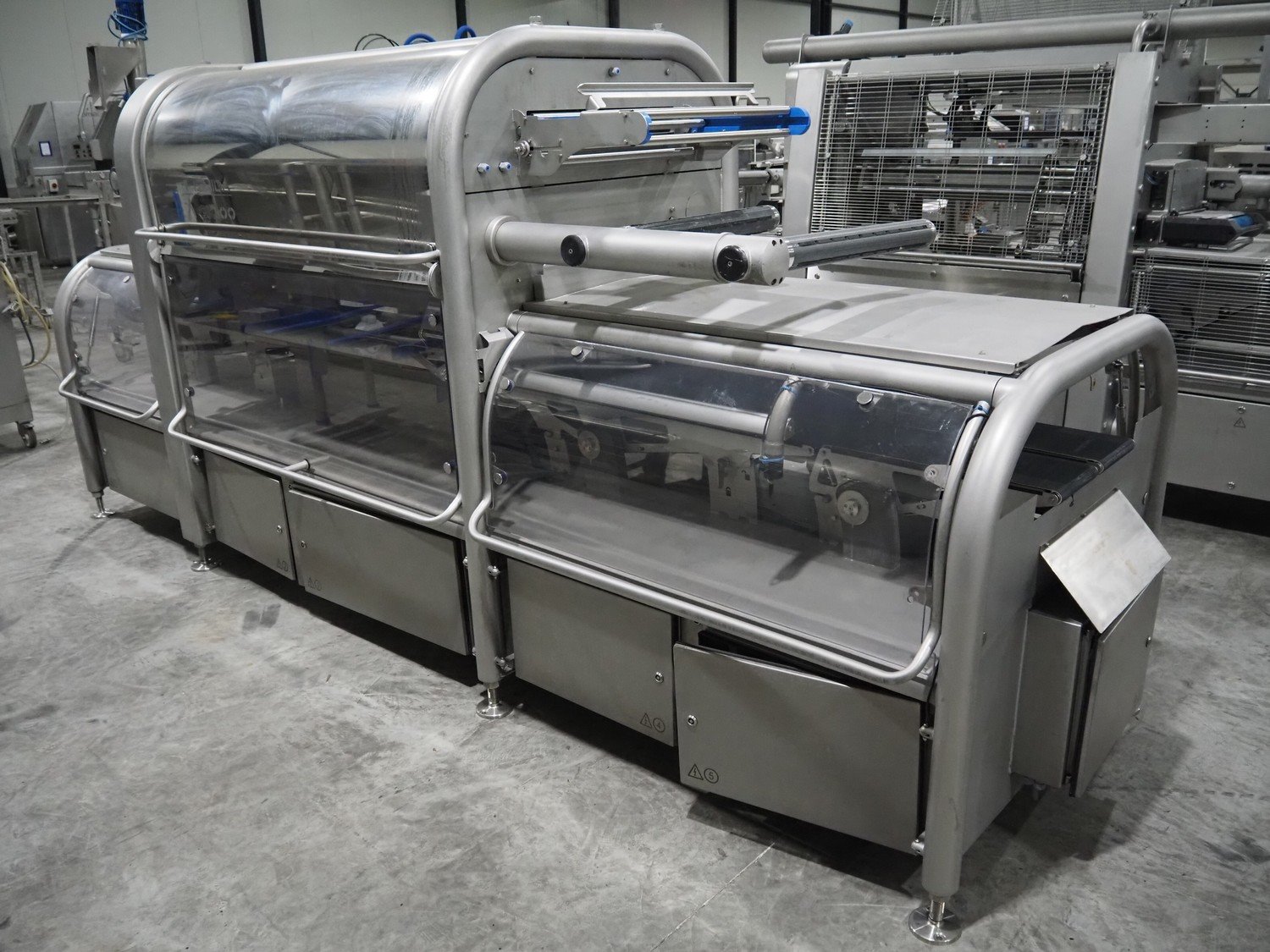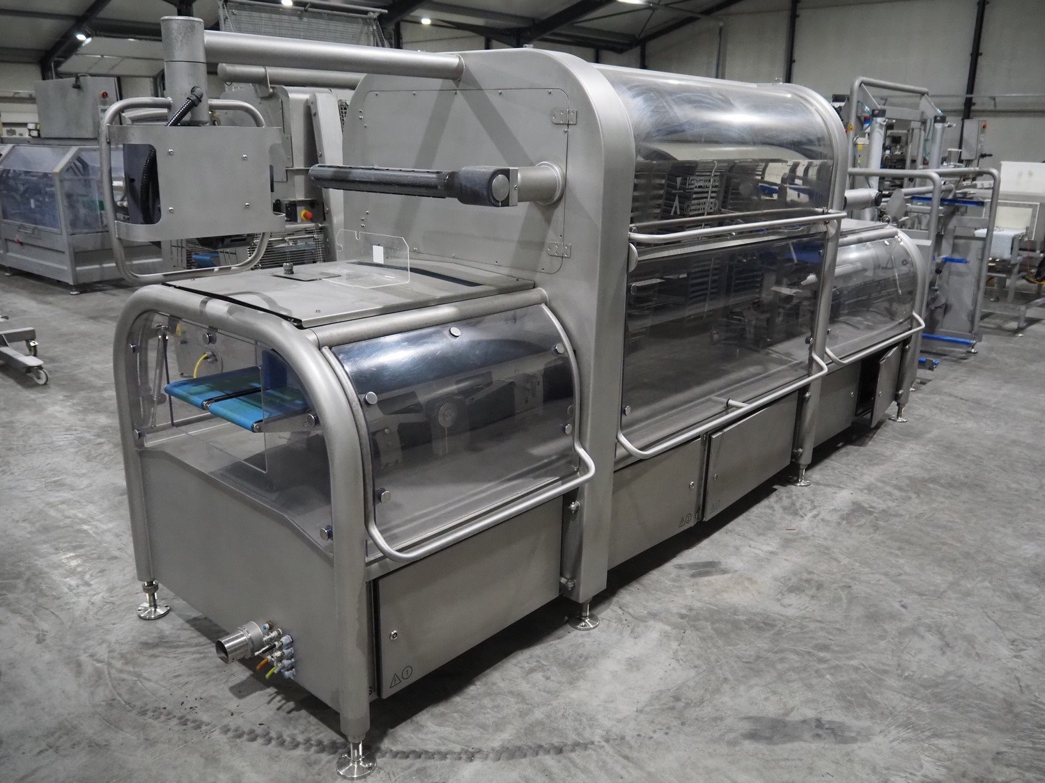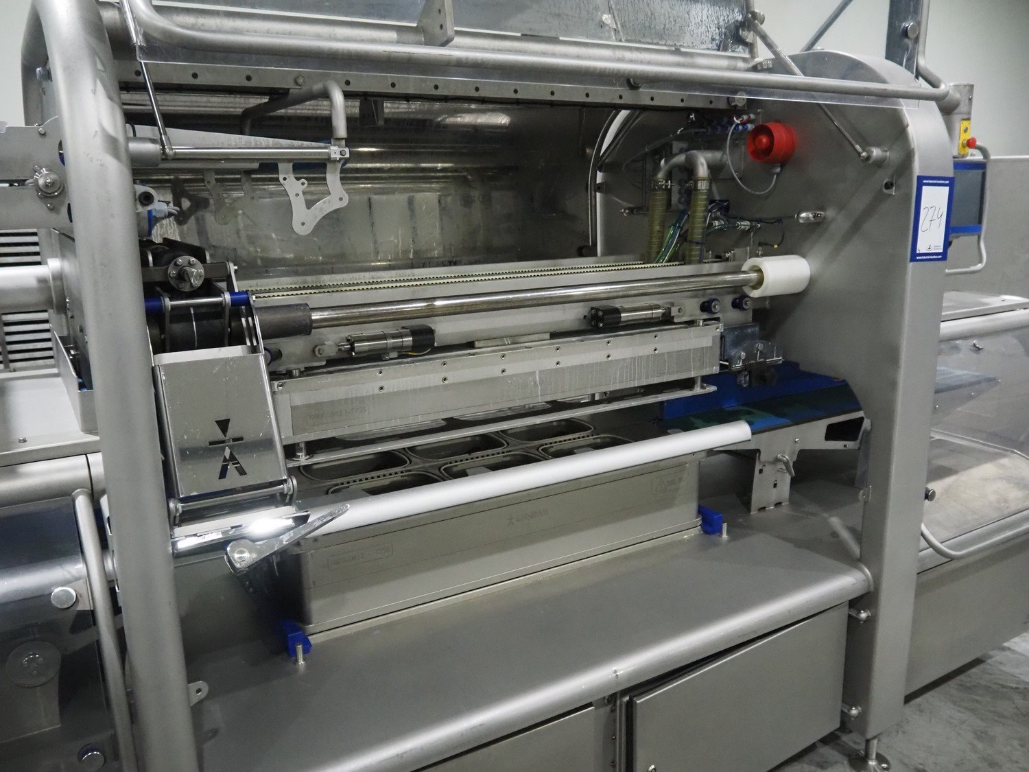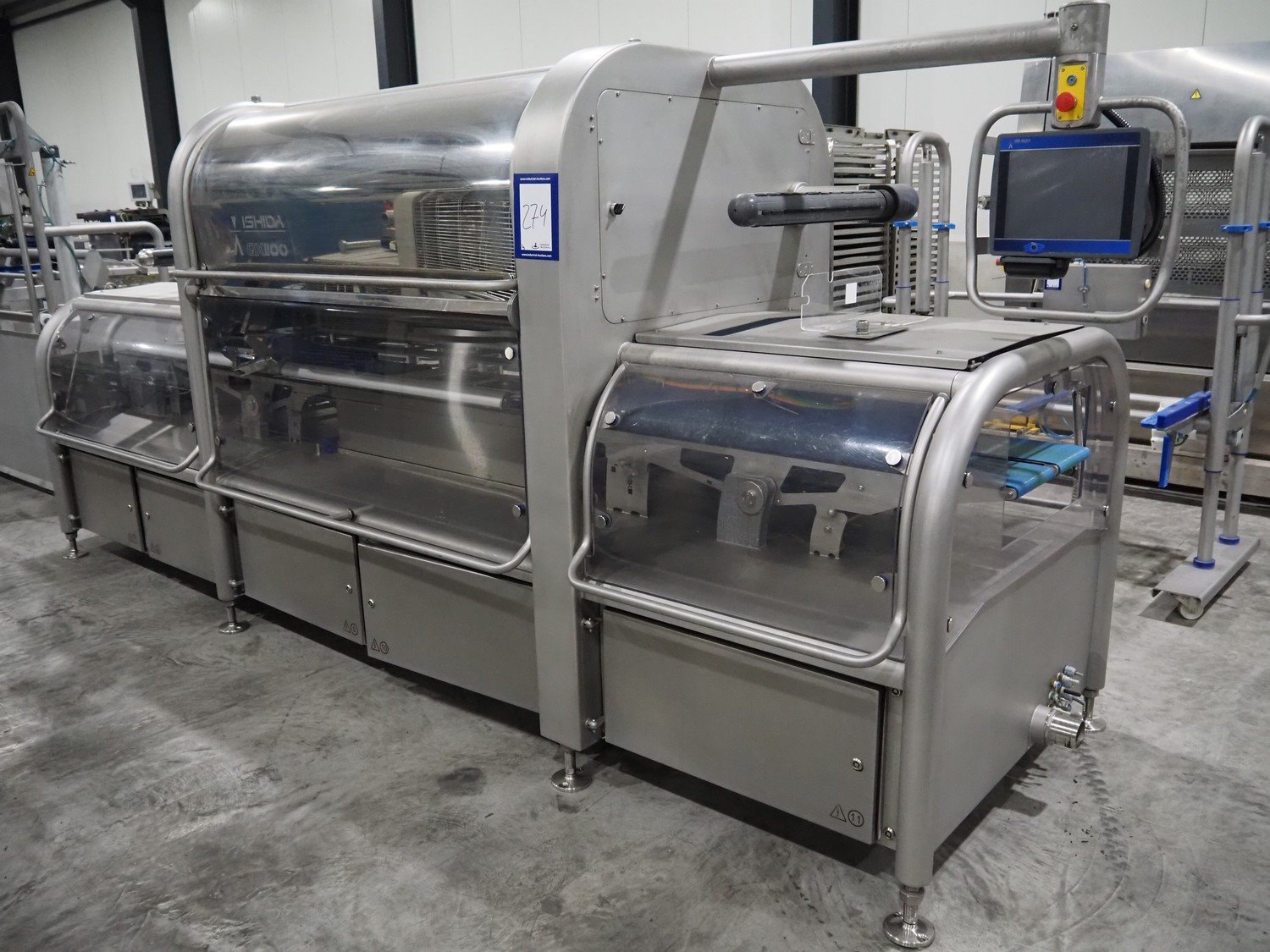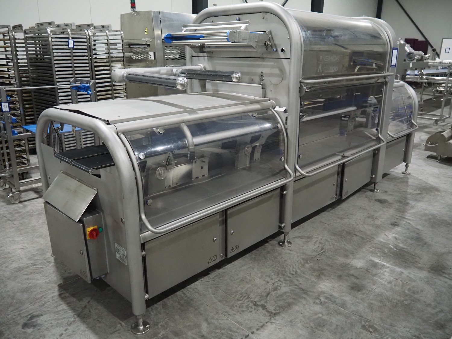 Ishida traysealer, model: QX1100-RL-AMI-ST-WIDE, serial number: 561844, year of construction: 03/2012, 415 V, 3 Ph, 50 Hz, 25 A, weight: 2500 kg, dye: (6x) 247 mm x 174 mm, plastic belts, belt width: 210 mm, total dimensions: 4600 mm x 1400 mm x 1900 mm. Including frame for dye's, model: Maintenance station, serial number: 559329, year of construction: 01/2009, weight: 220 kg, dimensions: 1700 mm x 800 mm x 2050 mm. Including Ishida trolley for dye's, model: QX1100 Tooling trolley, serial number: 560010794, year of construction: 05/2016, weight: 125 kg, dimensions: 1360 mm x 950 mm x 1420 mm. Kavel locatie: Langereijt 29A, 5091 JP Middelbeers, Nederland