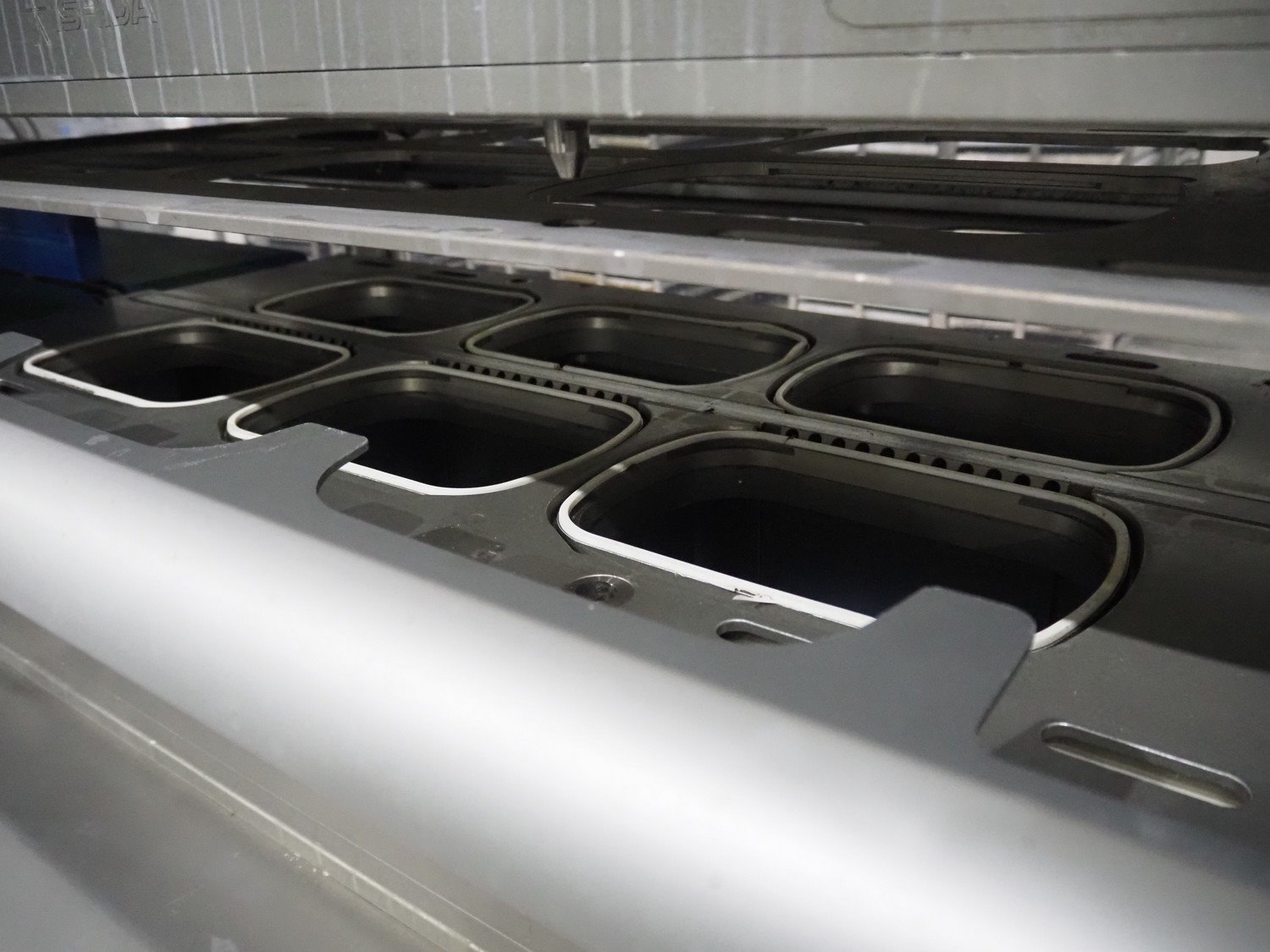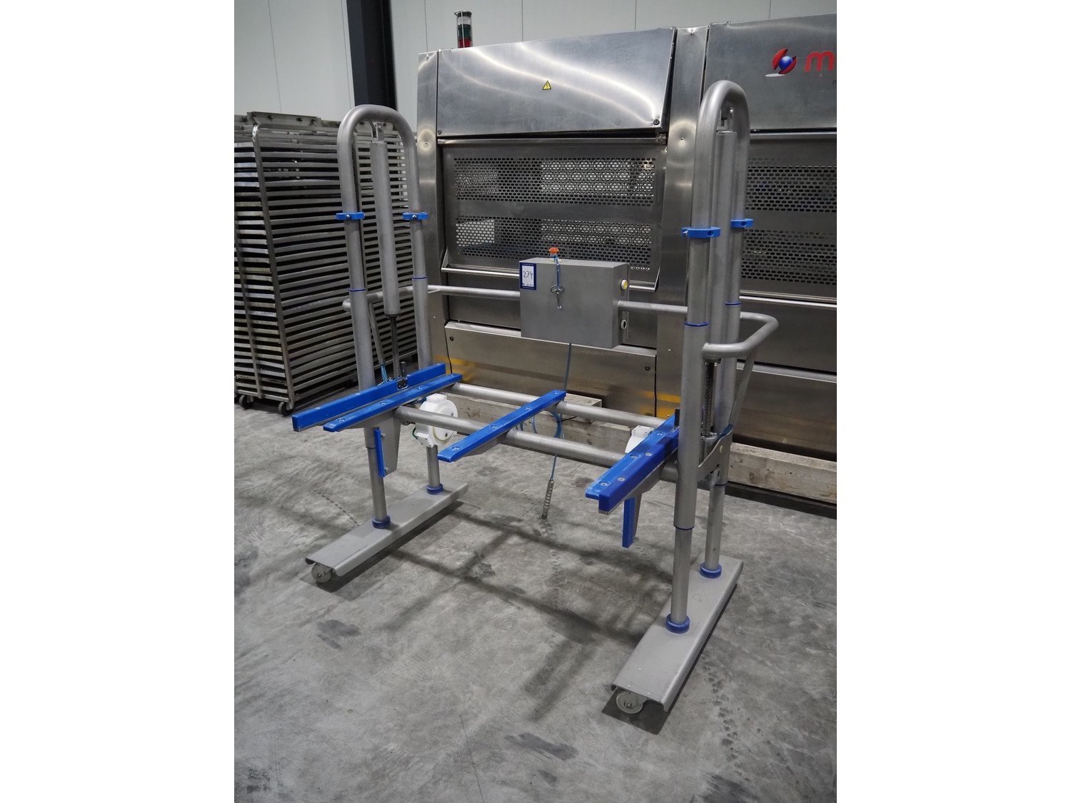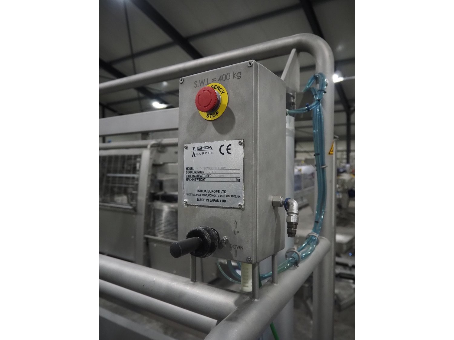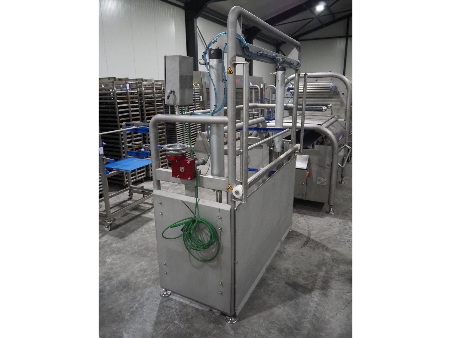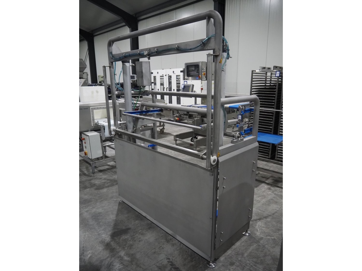 Ishida traysealer, model: QX1100-RL-AMI-ST-WIDE, serial number: 561844, year of construction: 03/2012, 415 V, 3 Ph, 50 Hz, 25 A, weight: 2500 kg, dye: (6x) 247 mm x 174 mm, plastic belts, belt width: 210 mm, total dimensions: 4600 mm x 1400 mm x 1900 mm. Including frame for dye's, model: Maintenance station, serial number: 559329, year of construction: 01/2009, weight: 220 kg, dimensions: 1700 mm x 800 mm x 2050 mm. Including Ishida trolley for dye's, model: QX1100 Tooling trolley, serial number: 560010794, year of construction: 05/2016, weight: 125 kg, dimensions: 1360 mm x 950 mm x 1420 mm. Kavel locatie: Langereijt 29A, 5091 JP Middelbeers, Nederland