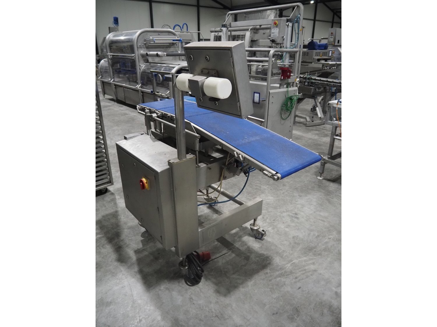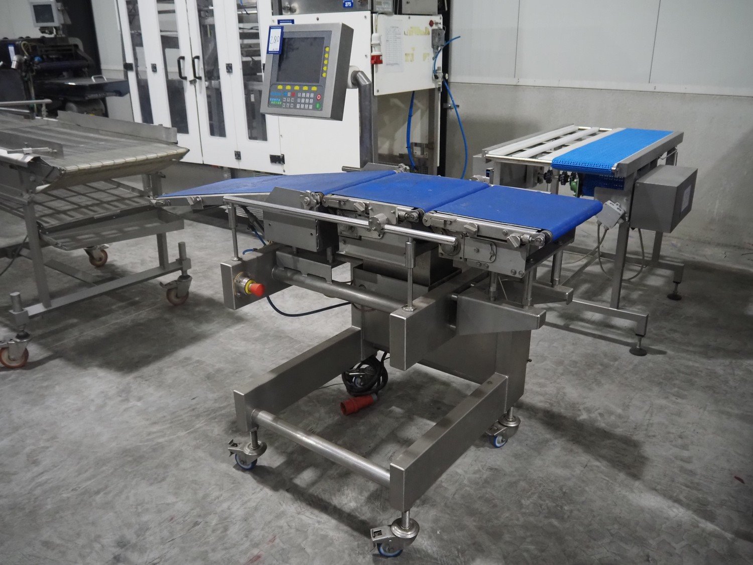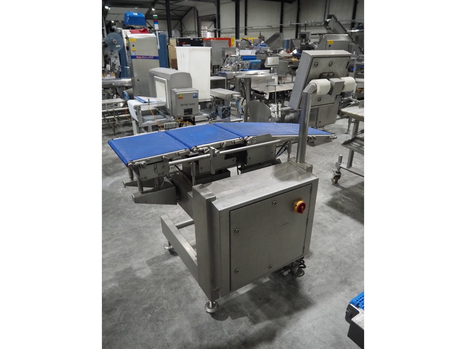 AEW Delford mobile checkweigher, type: G2200-01, serial number: N3, year of construction: 2003, 415 V, 3 Ph, 50 Hz, 3 A, maximum capacity: 990 g, minimum capacity: 10 g, plastic belts, belt width: 360 mm, dimensions: 1550 mm x 900 mm x 1500 mm. Kavel locatie: Langereijt 29A, 5091 JP Middelbeers, Nederland