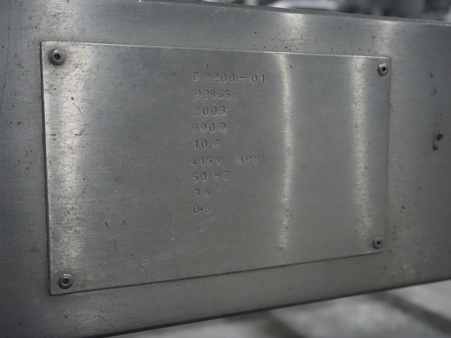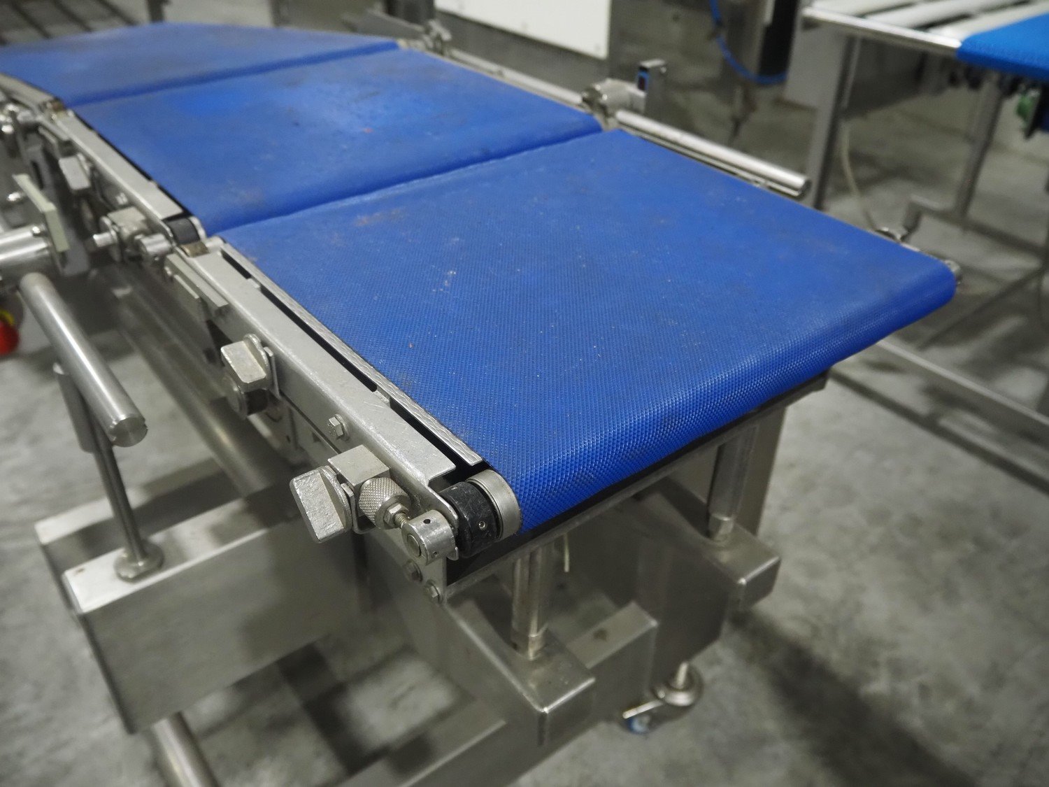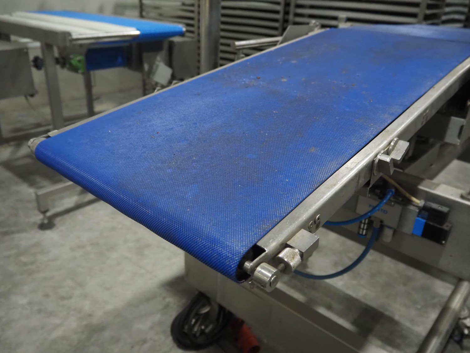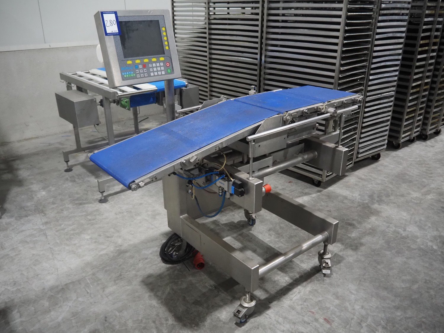 AEW Delford mobile checkweigher, type: G2200-01, serial number: N3, year of construction: 2003, 415 V, 3 Ph, 50 Hz, 3 A, maximum capacity: 990 g, minimum capacity: 10 g, plastic belts, belt width: 360 mm, dimensions: 1550 mm x 900 mm x 1500 mm. Kavel locatie: Langereijt 29A, 5091 JP Middelbeers, Nederland