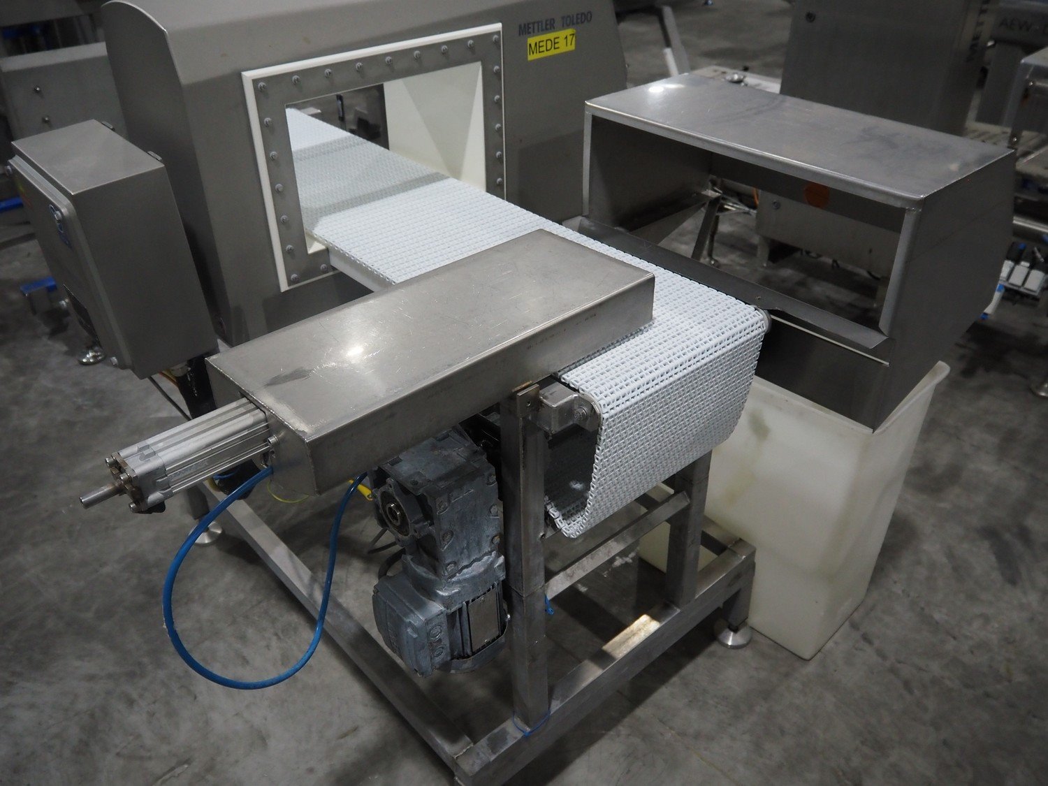 Mettler Toledo metal detector with rejector, model : V48-RAD, 50/60 Hz, 100/240V, 340 W, plastic mesh belt, belt width: 300 mm, clearance: 350 mm x 400 mm, total dimensions: 1450 mm x 1200 mm x 1250 mm. Kavel locatie: Langereijt 29A, 5091 JP Middelbeers, Nederland