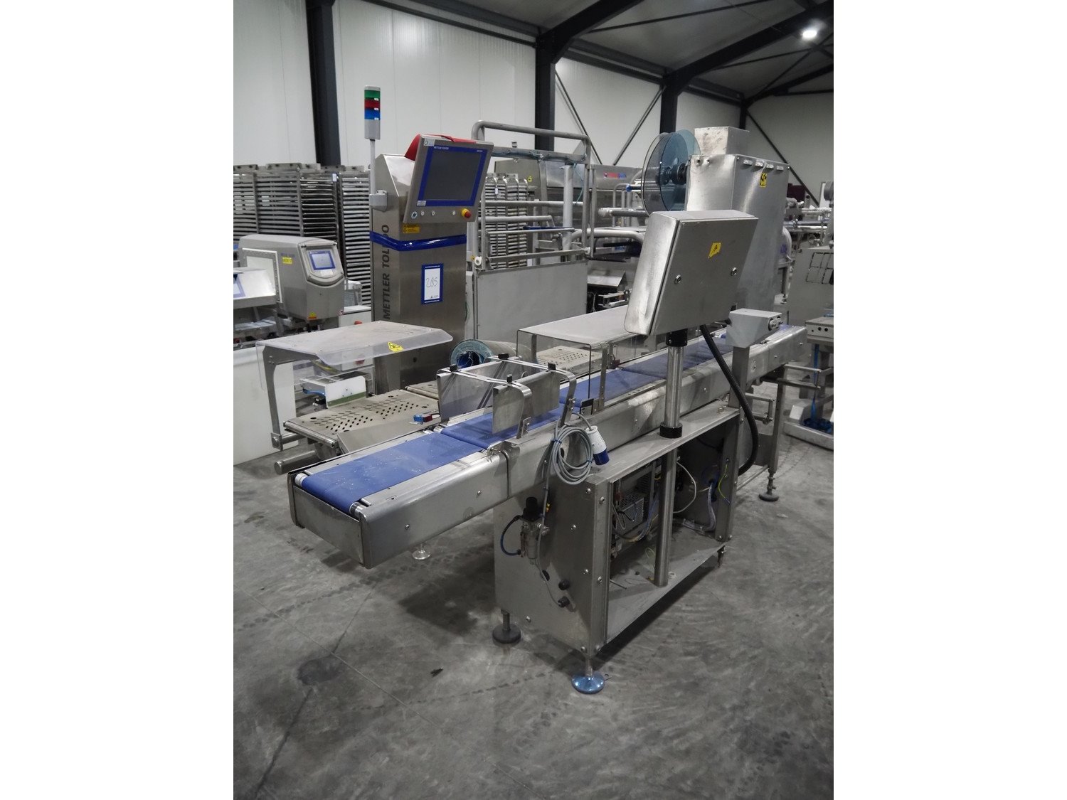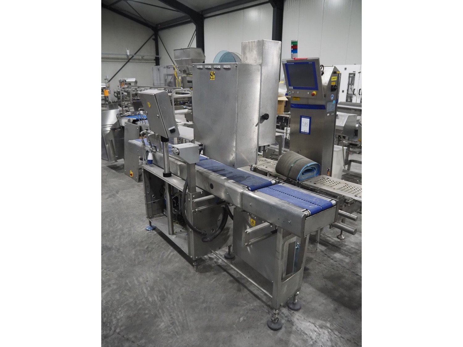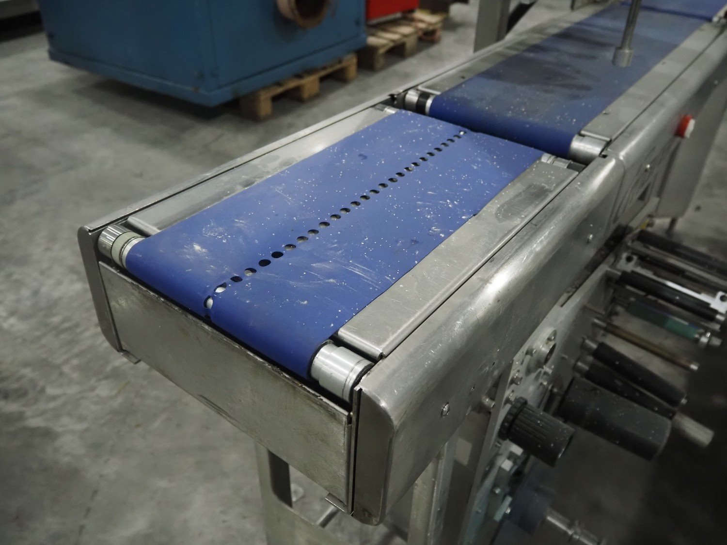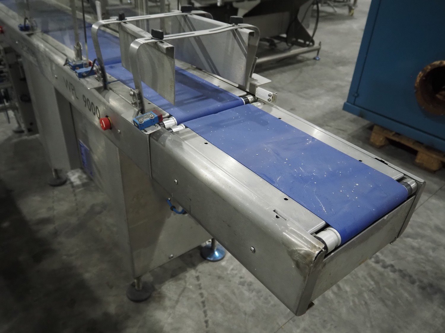 Marel / AEW Delford weighing and labelling machine, model: 9060, serial number: 1049954496084, Max capacity: 5.5 kg, 230 V, 50 Hz, belt speed: 0.3-0.5 m/s, plastic belt, belt width: 195 mm, total dimensions: 2600 mm x 650 mm x 1780 mm. Kavel locatie: Langereijt 29A, 5091 JP Middelbeers, Nederland