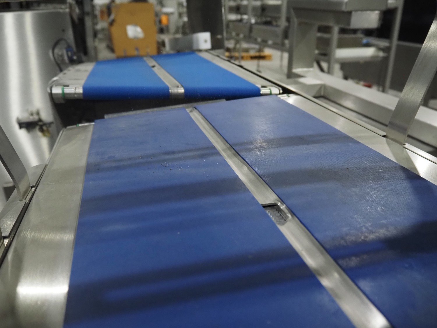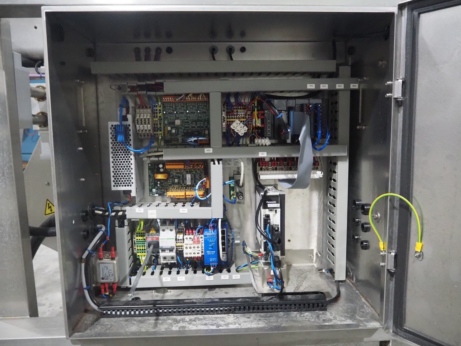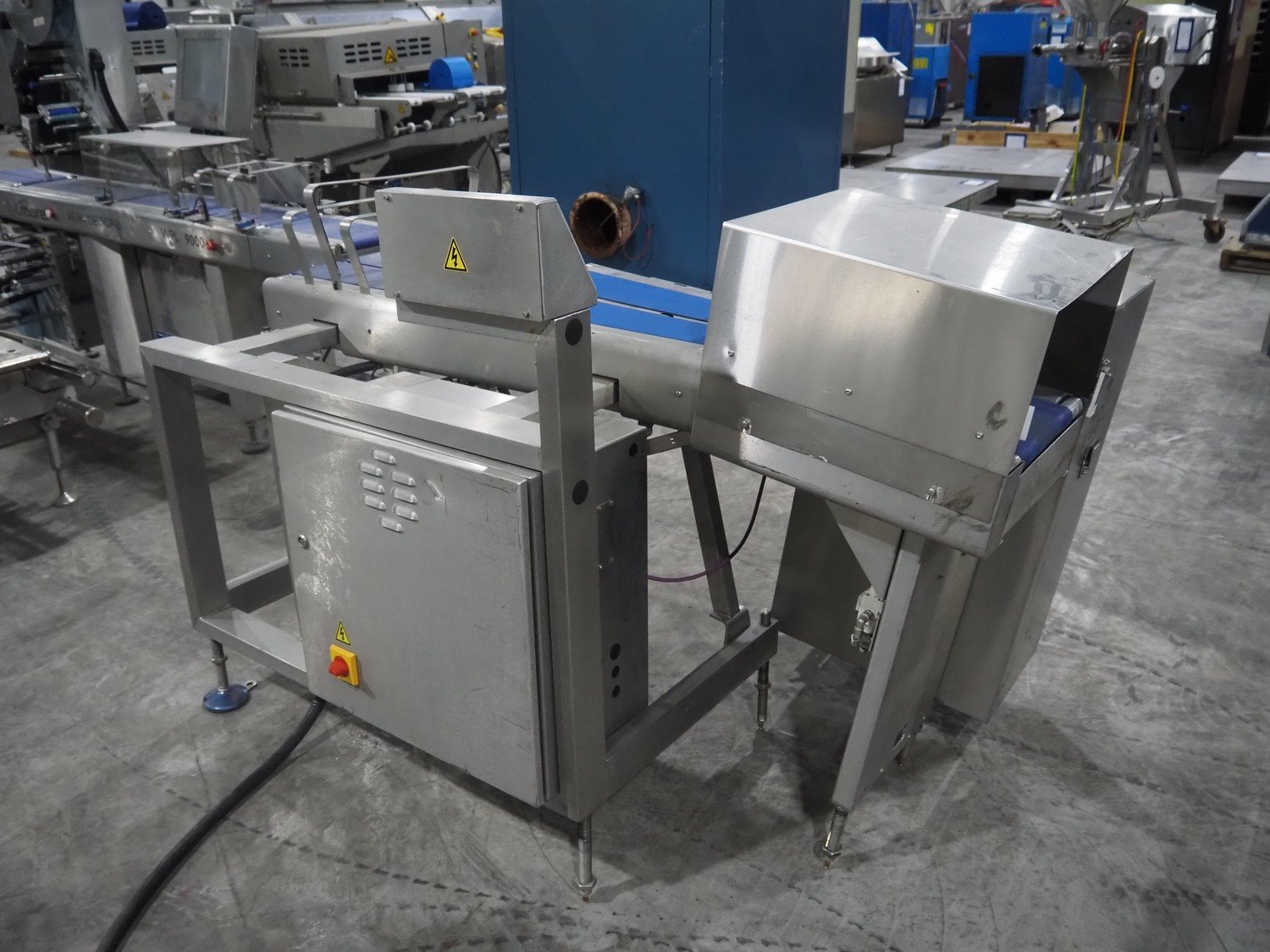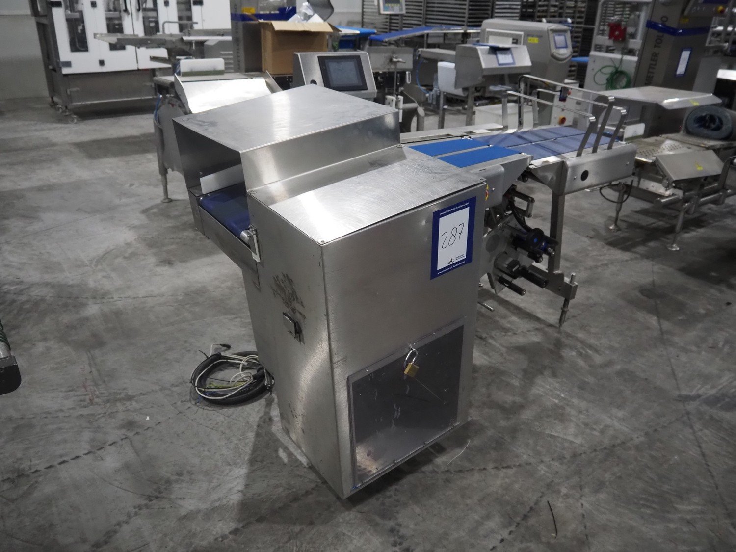 Marel weighing and labelling machine with rejector, plastic belt, belt width: (2x) 136 mm and 285 mm, total dimensions: 1720 mm x 1120 mm x 1220 mm. Kavel locatie: Langereijt 29A, 5091 JP Middelbeers, Nederland