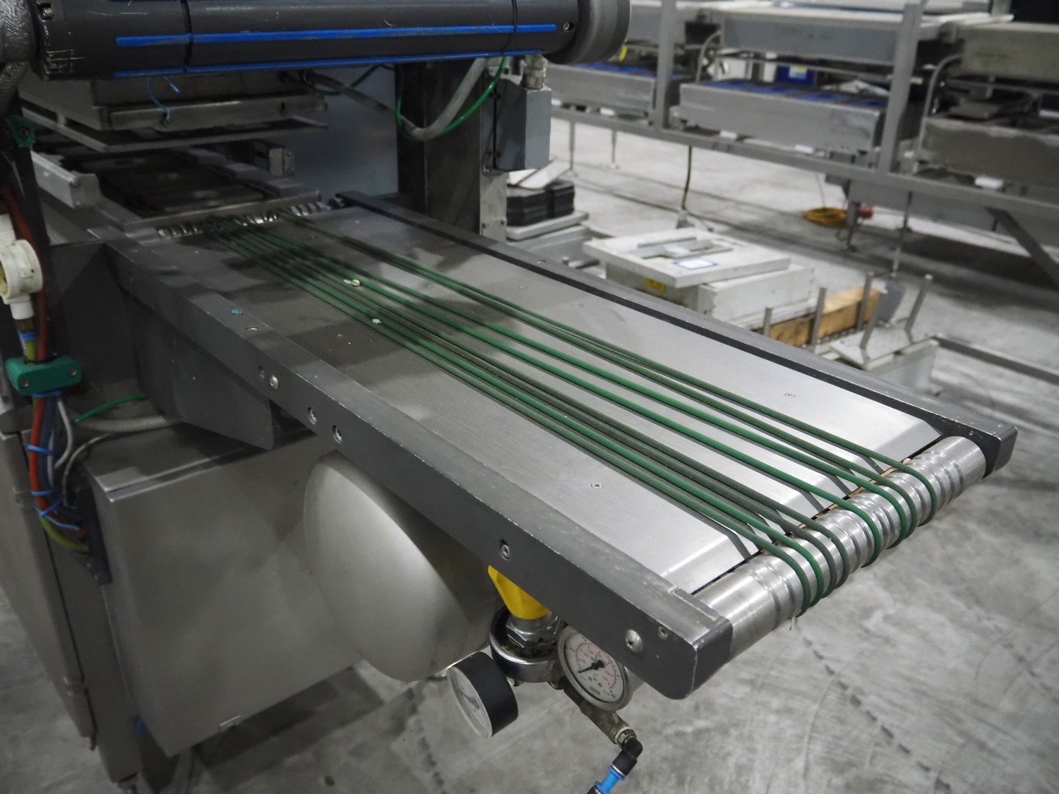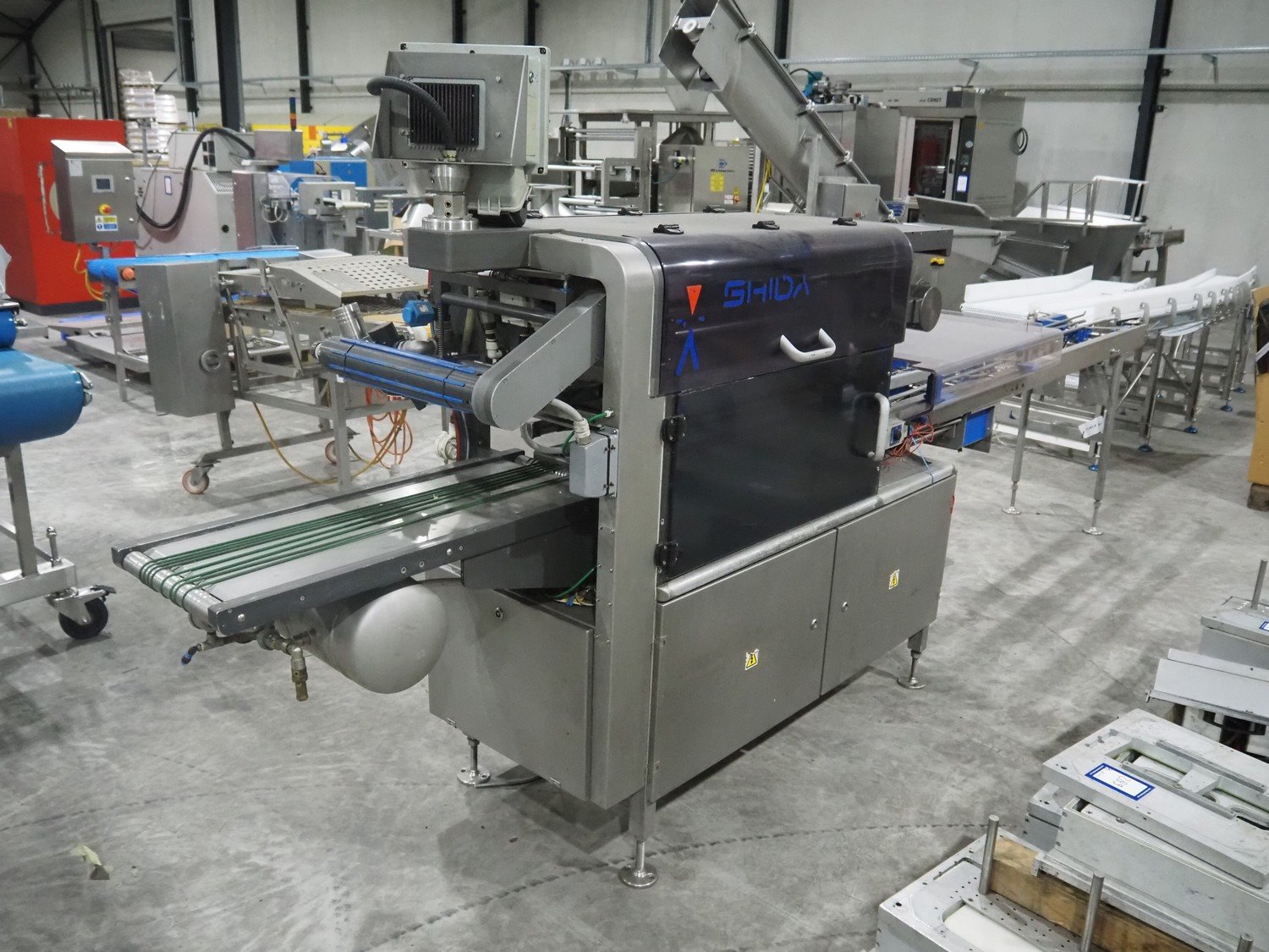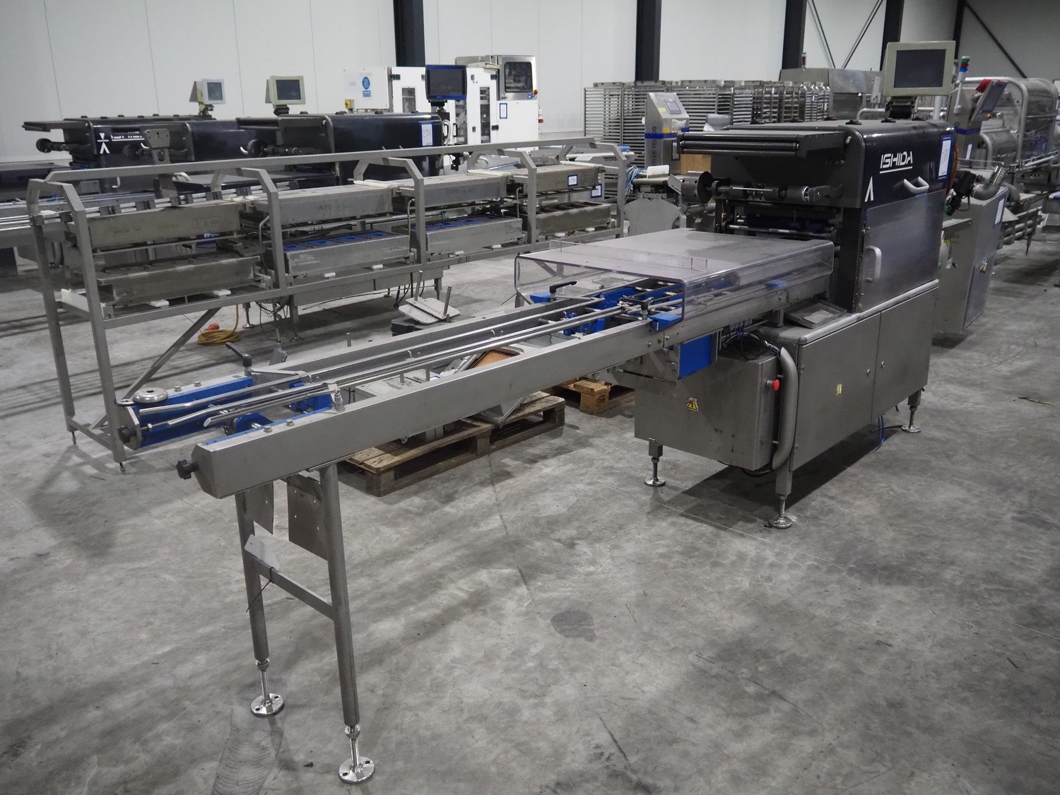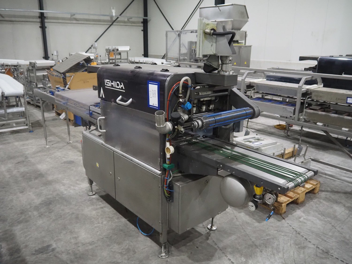 Ishida traysealer, model: QX775, serial number: 580445, year of construction: 08/2006, 415 V, 3 Ph, 50 Hz, 16 A, 850 kg, s/s chain conveyor with dividers, distance between dividers: 300 mm, dimensions dye: (4x) 180 mm x 280 mm, total dimensions: 4750 mm x 800 mm x 1820 mm. Kavel locatie: Langereijt 29A, 5091 JP Middelbeers, Nederland