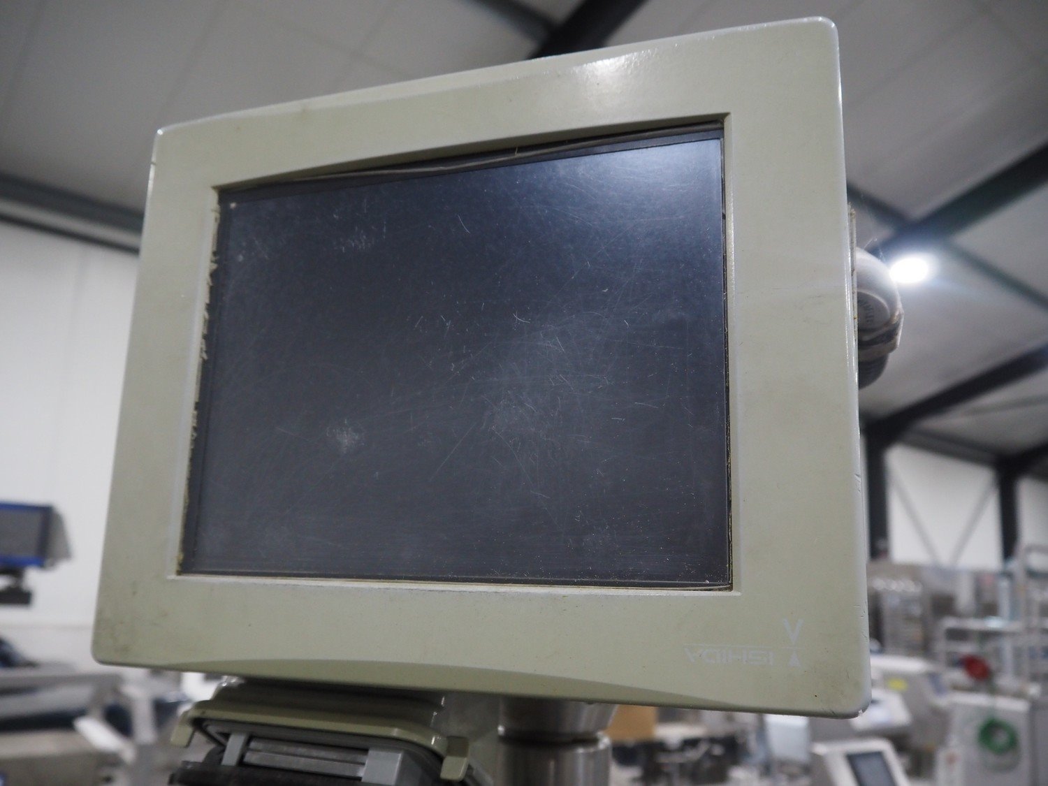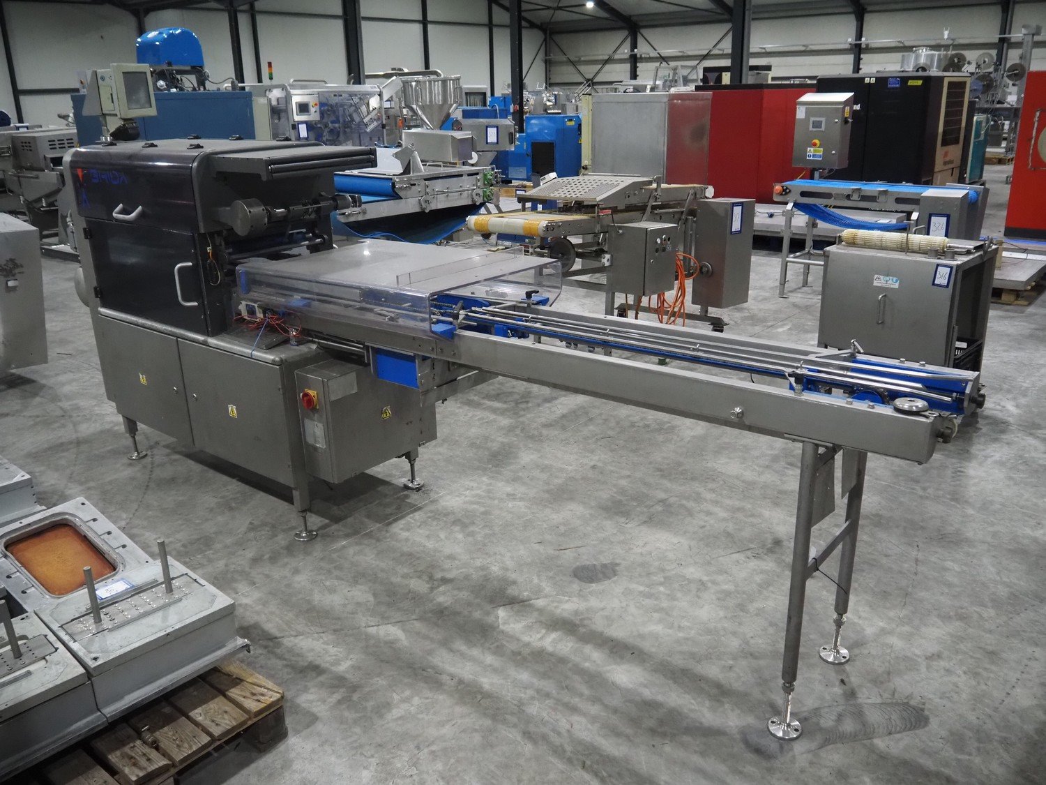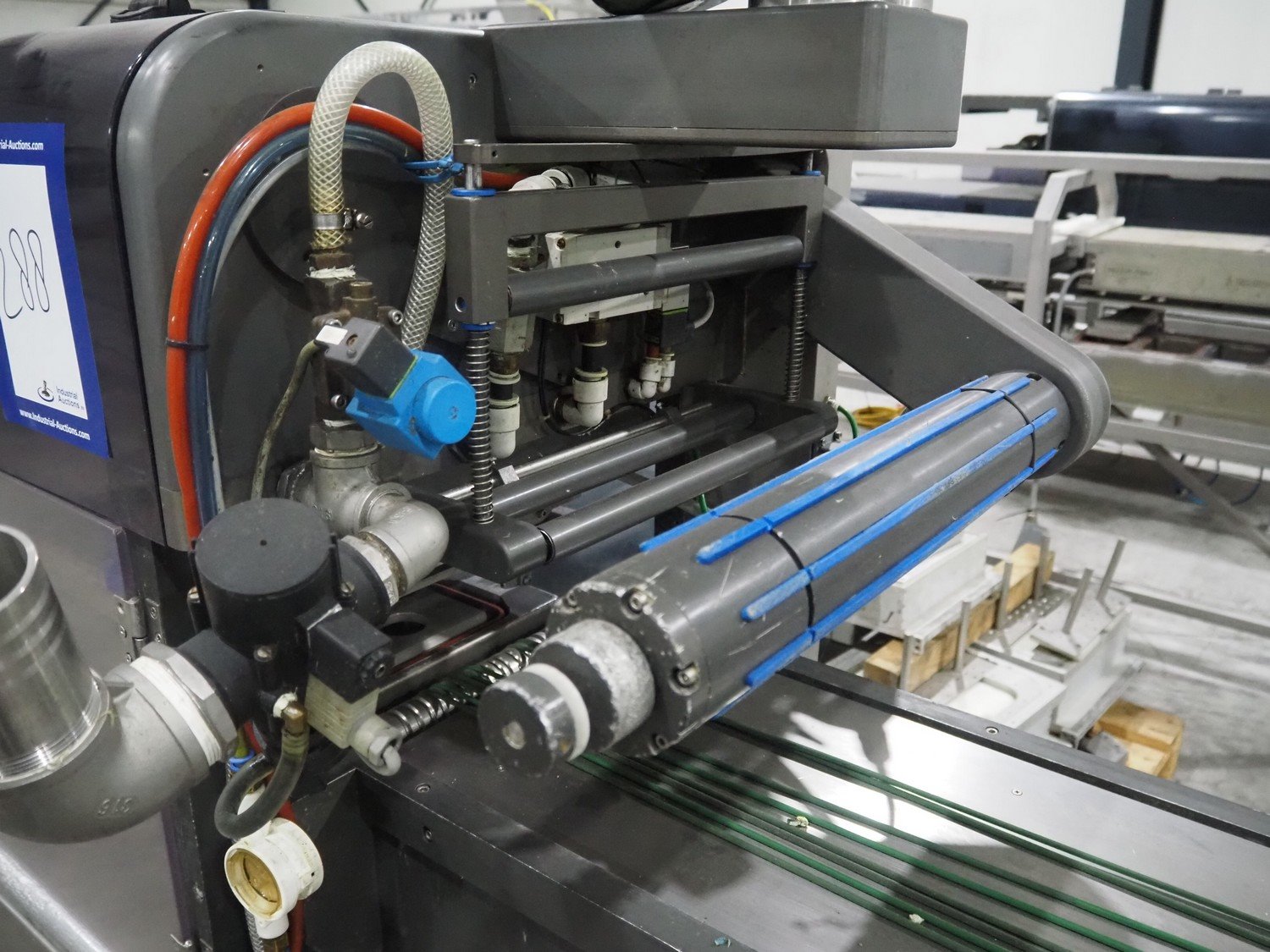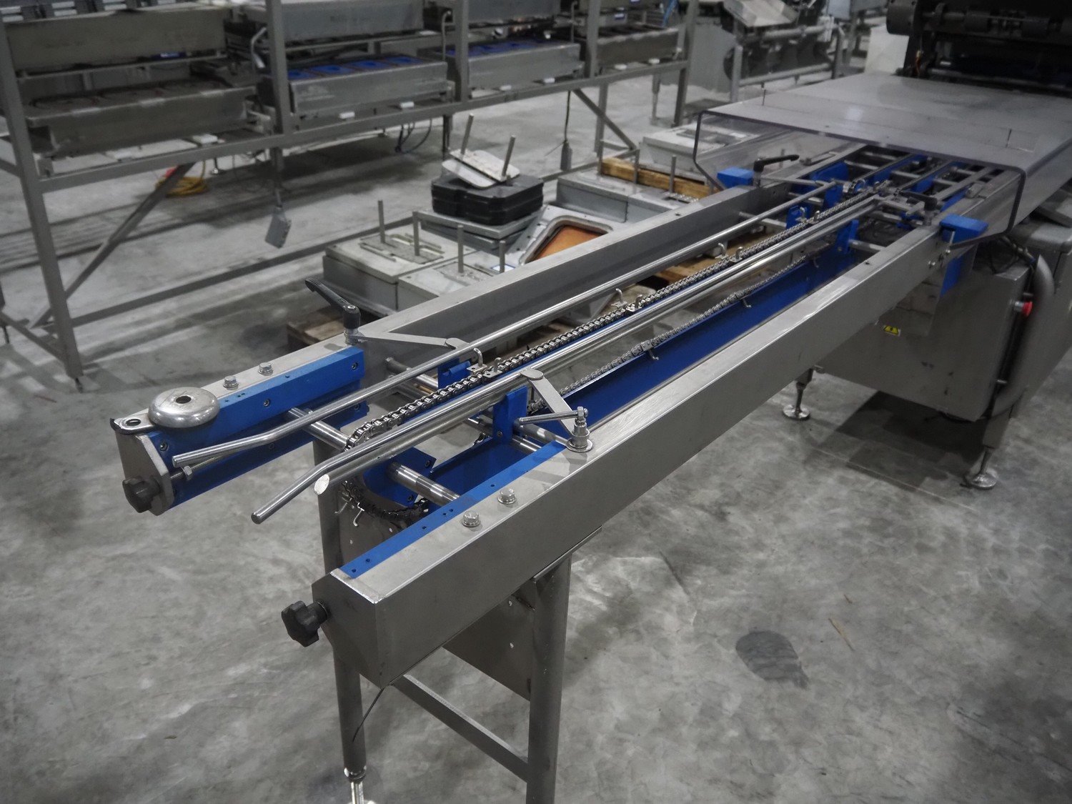 Ishida traysealer, model: QX775, serial number: 580445, year of construction: 08/2006, 415 V, 3 Ph, 50 Hz, 16 A, 850 kg, s/s chain conveyor with dividers, distance between dividers: 300 mm, dimensions dye: (4x) 180 mm x 280 mm, total dimensions: 4750 mm x 800 mm x 1820 mm. Kavel locatie: Langereijt 29A, 5091 JP Middelbeers, Nederland