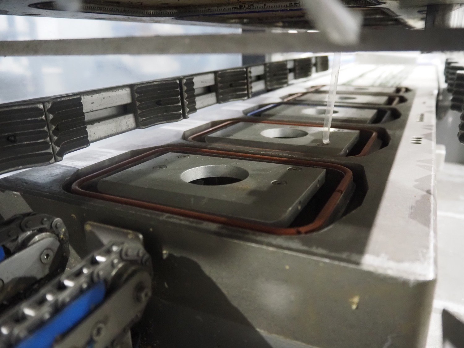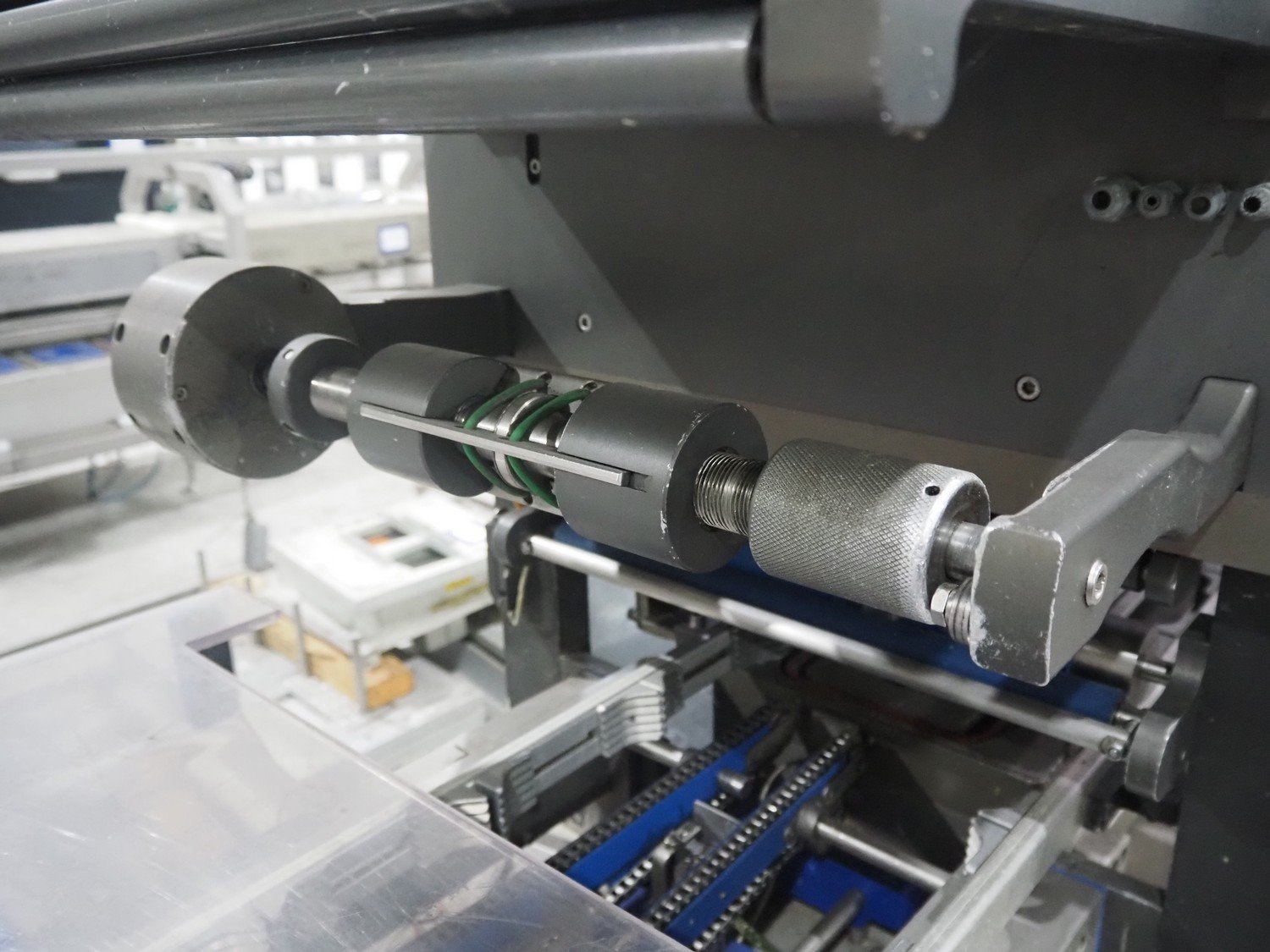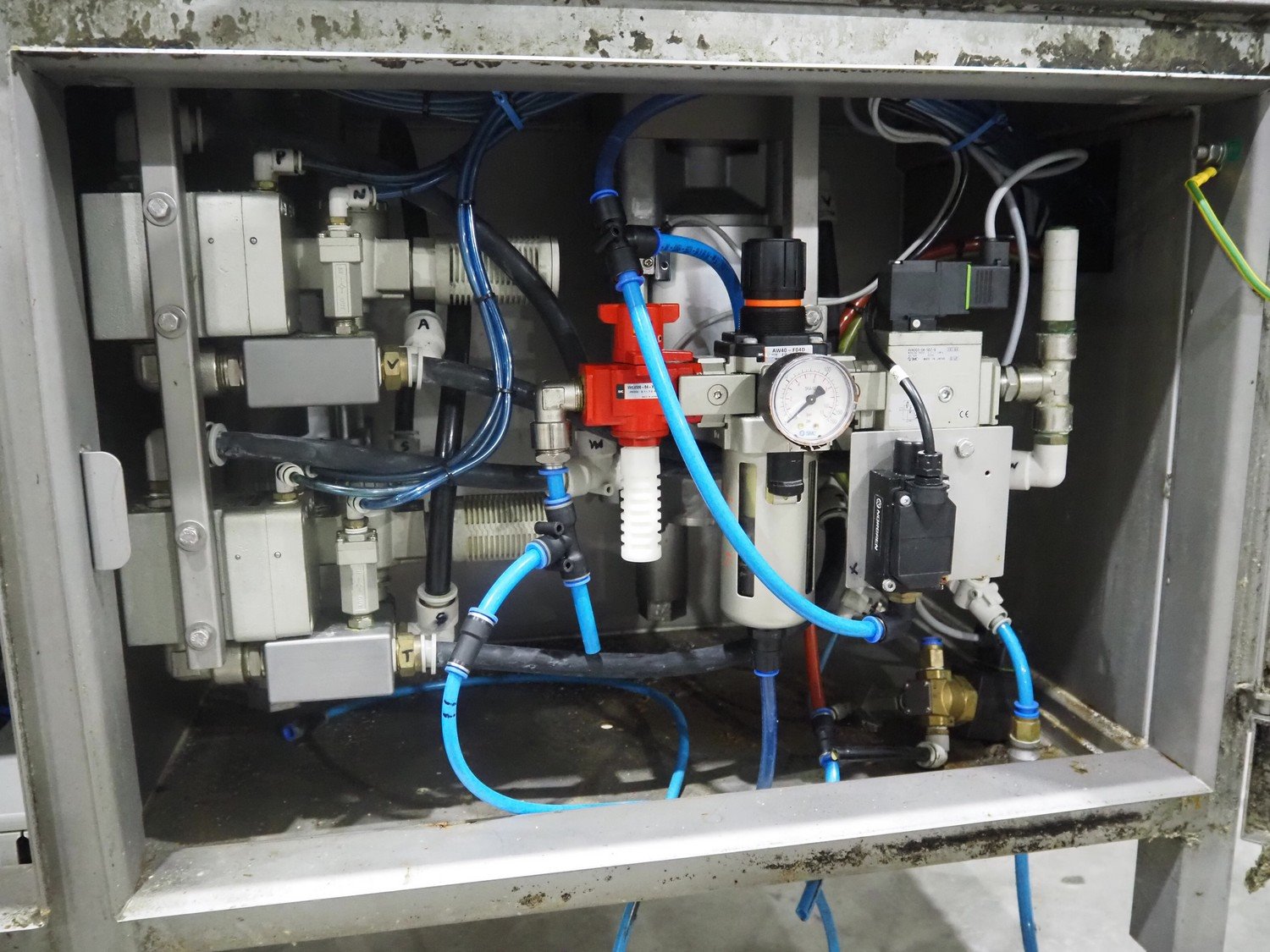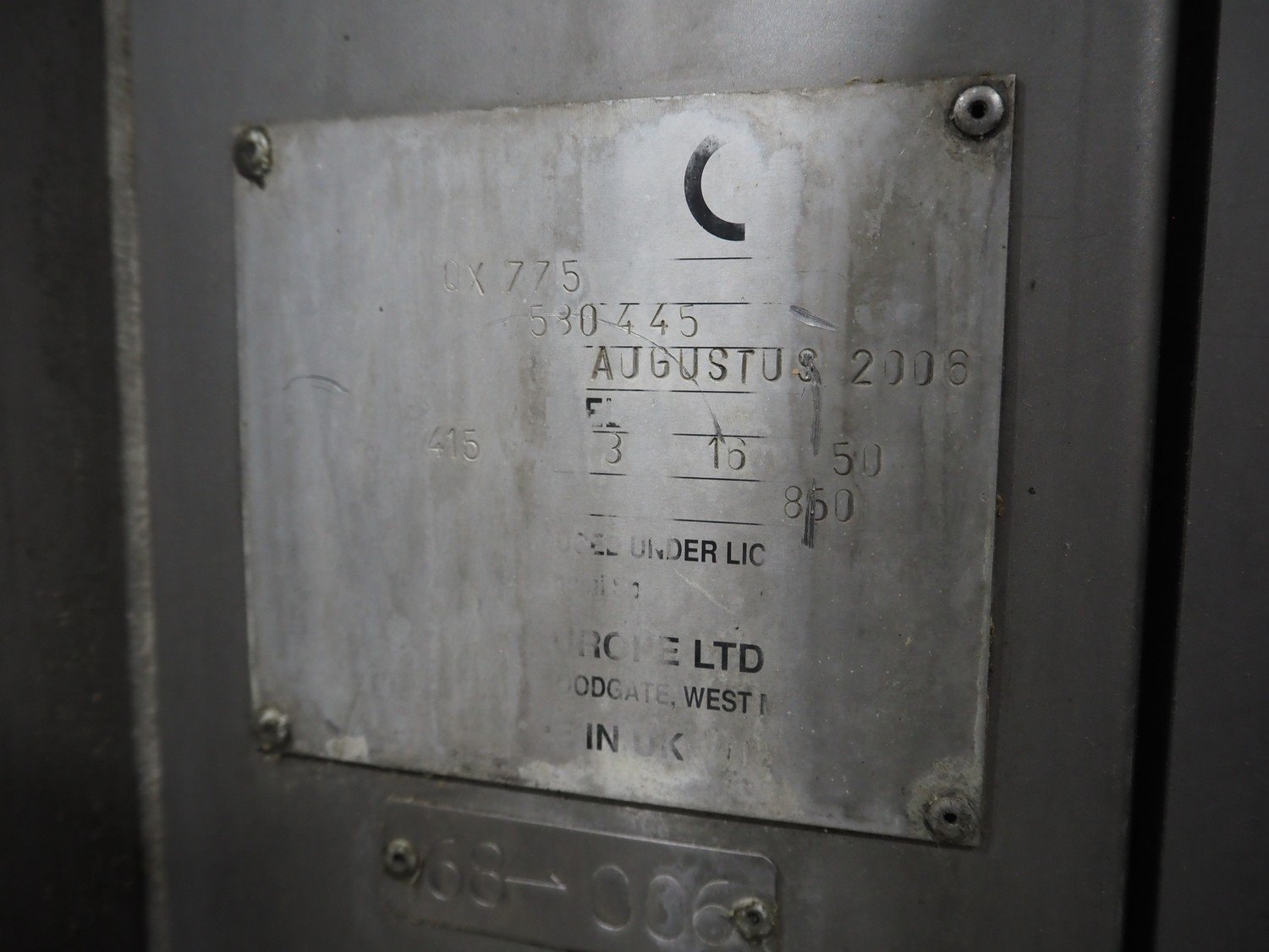 Ishida traysealer, model: QX775, serial number: 580445, year of construction: 08/2006, 415 V, 3 Ph, 50 Hz, 16 A, 850 kg, s/s chain conveyor with dividers, distance between dividers: 300 mm, dimensions dye: (4x) 180 mm x 280 mm, total dimensions: 4750 mm x 800 mm x 1820 mm. Kavel locatie: Langereijt 29A, 5091 JP Middelbeers, Nederland