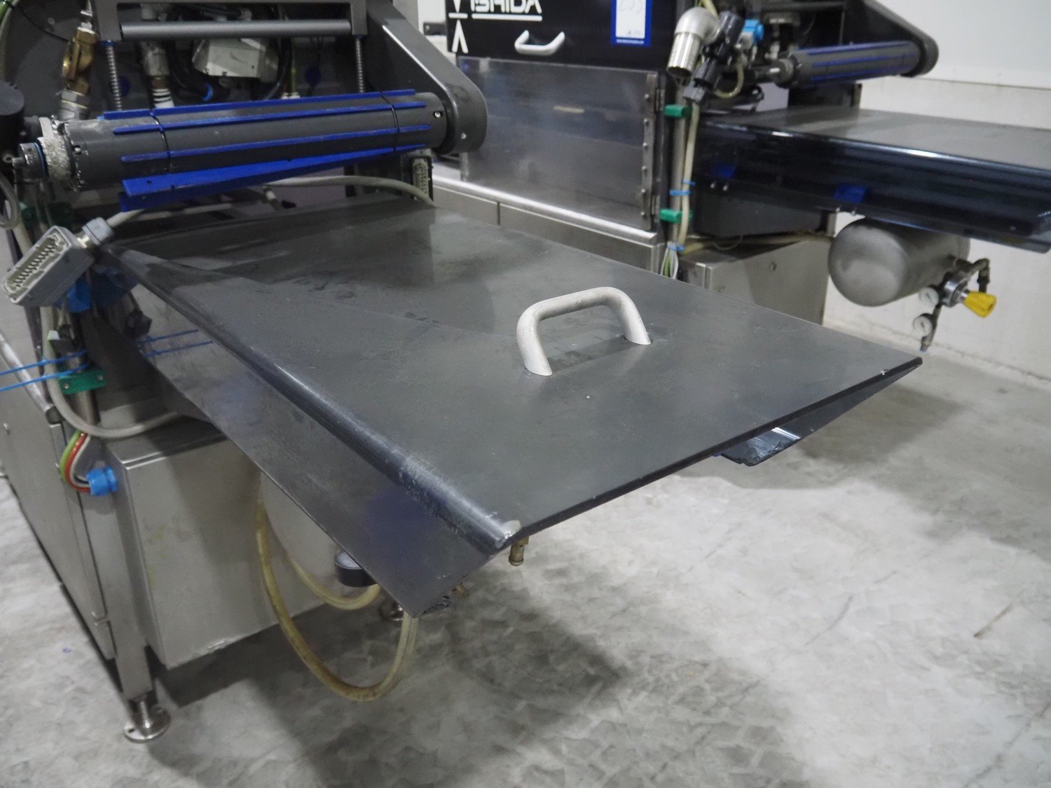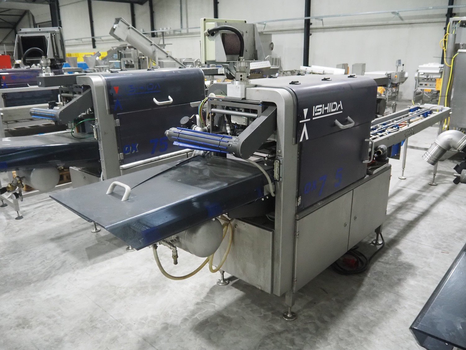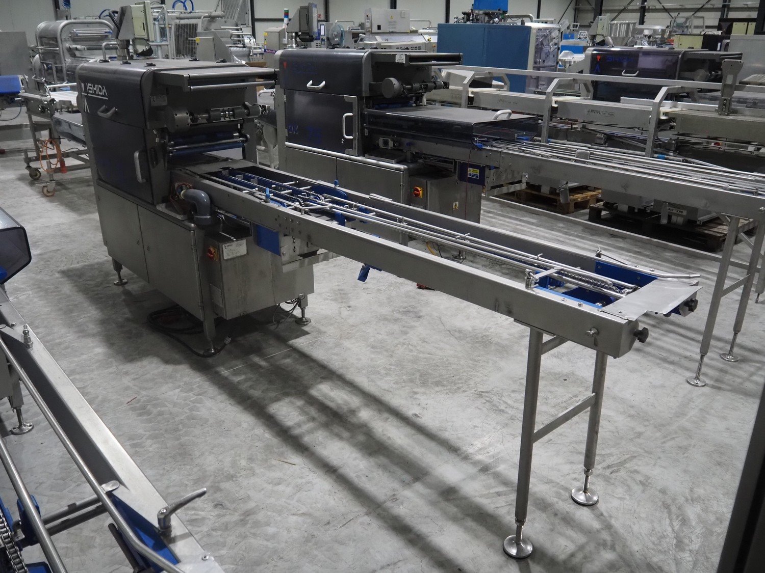 Ishida traysealer, model: QX775, serial number: 580095, year of construction: 03/2004, 415 V, 3 Ph, 50 Hz, 16 A, 815 kg, s/s chain conveyor with dividers, distance between dividers: 300 mm, dimensions dye: (4x) 180 mm x 280 mm, total dimensions: 4750 mm x 800 mm x 1820 mm. Kavel locatie: Langereijt 29A, 5091 JP Middelbeers, Nederland