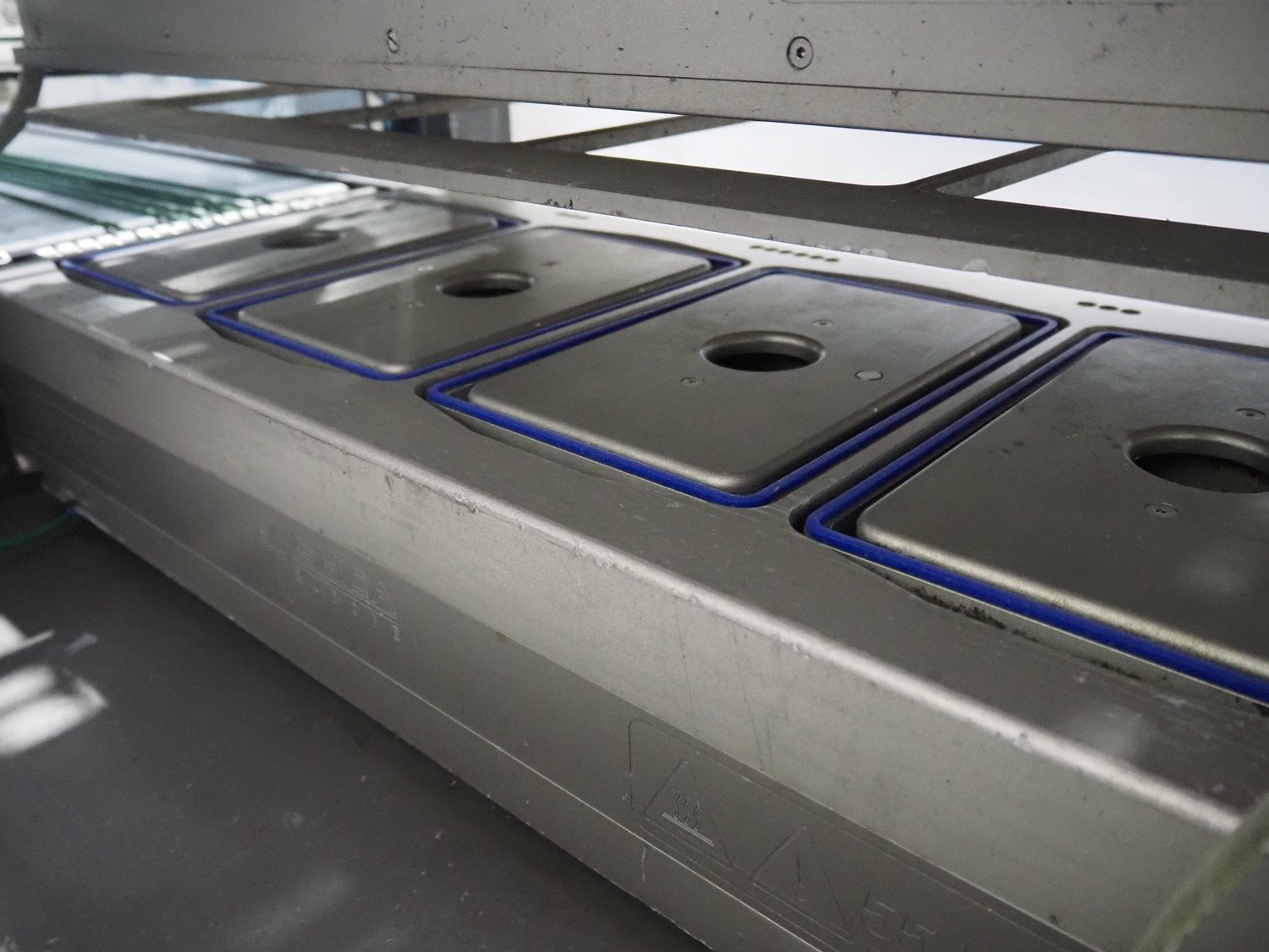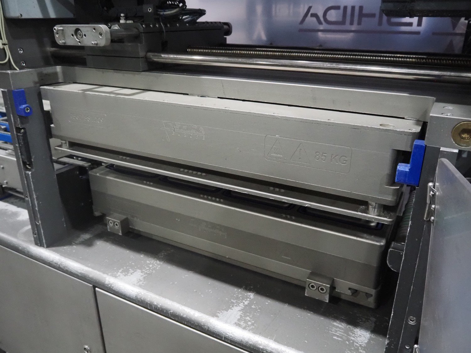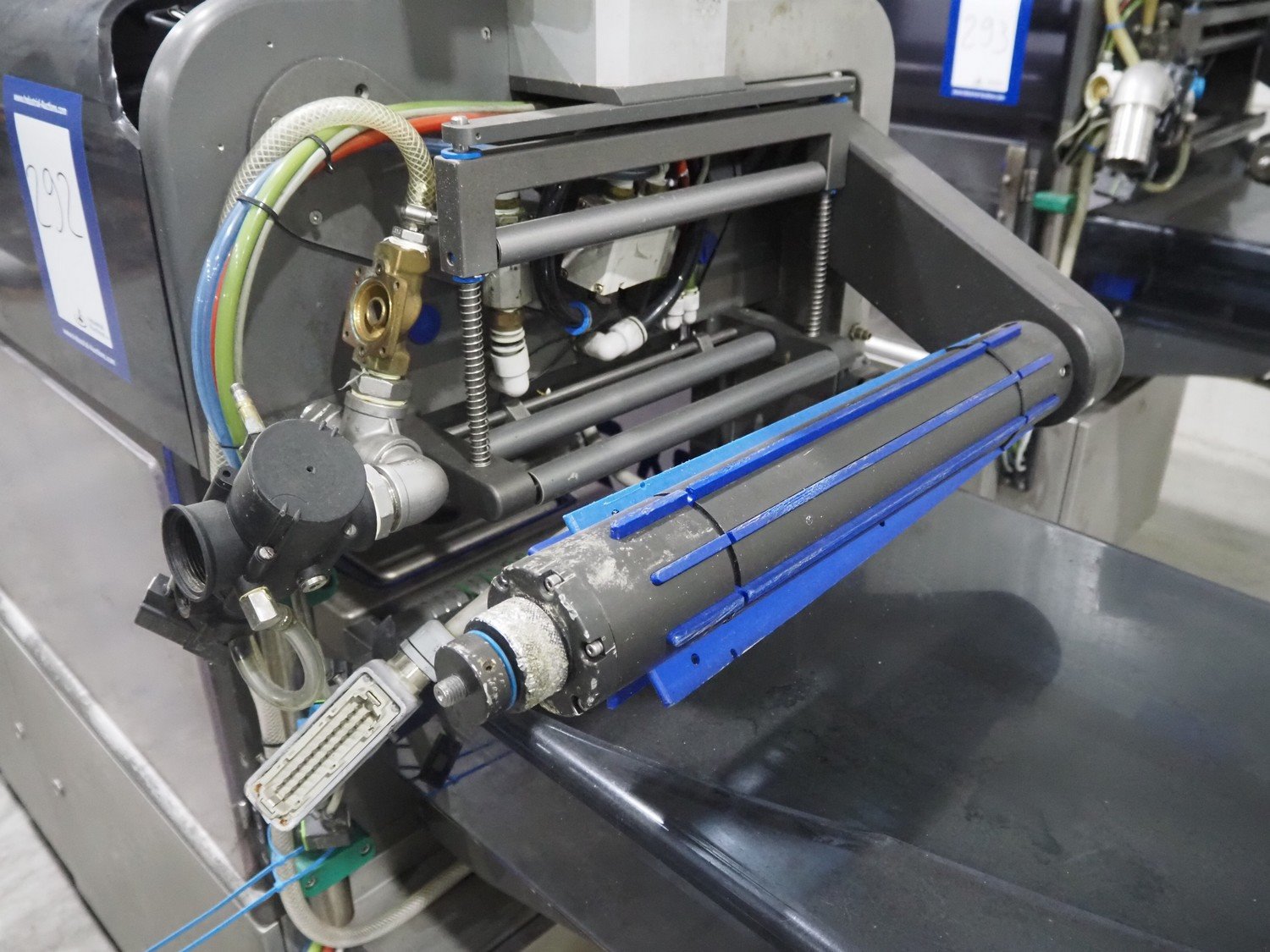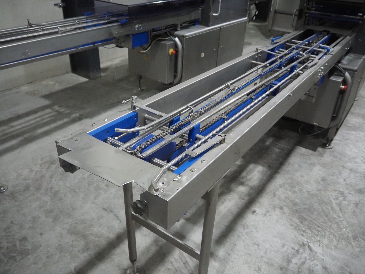 Ishida traysealer, model: QX775, serial number: 580095, year of construction: 03/2004, 415 V, 3 Ph, 50 Hz, 16 A, 815 kg, s/s chain conveyor with dividers, distance between dividers: 300 mm, dimensions dye: (4x) 180 mm x 280 mm, total dimensions: 4750 mm x 800 mm x 1820 mm. Kavel locatie: Langereijt 29A, 5091 JP Middelbeers, Nederland