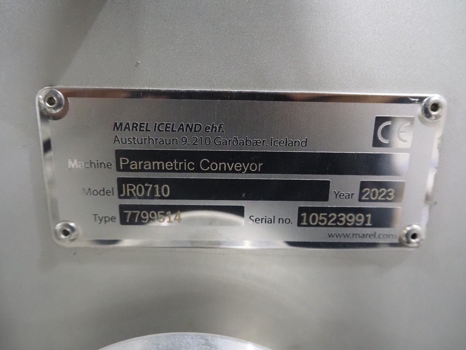 Marel elevating belt, model: JR0710, type: 7799514, serial number: 10523991, year of construction: 2023, plastic belt, belt width: 610 mm, total dimensions: 1170 mm x 800 mm x 1230 mm. Kavel locatie: Langereijt 29A, 5091 JP Middelbeers, Nederland