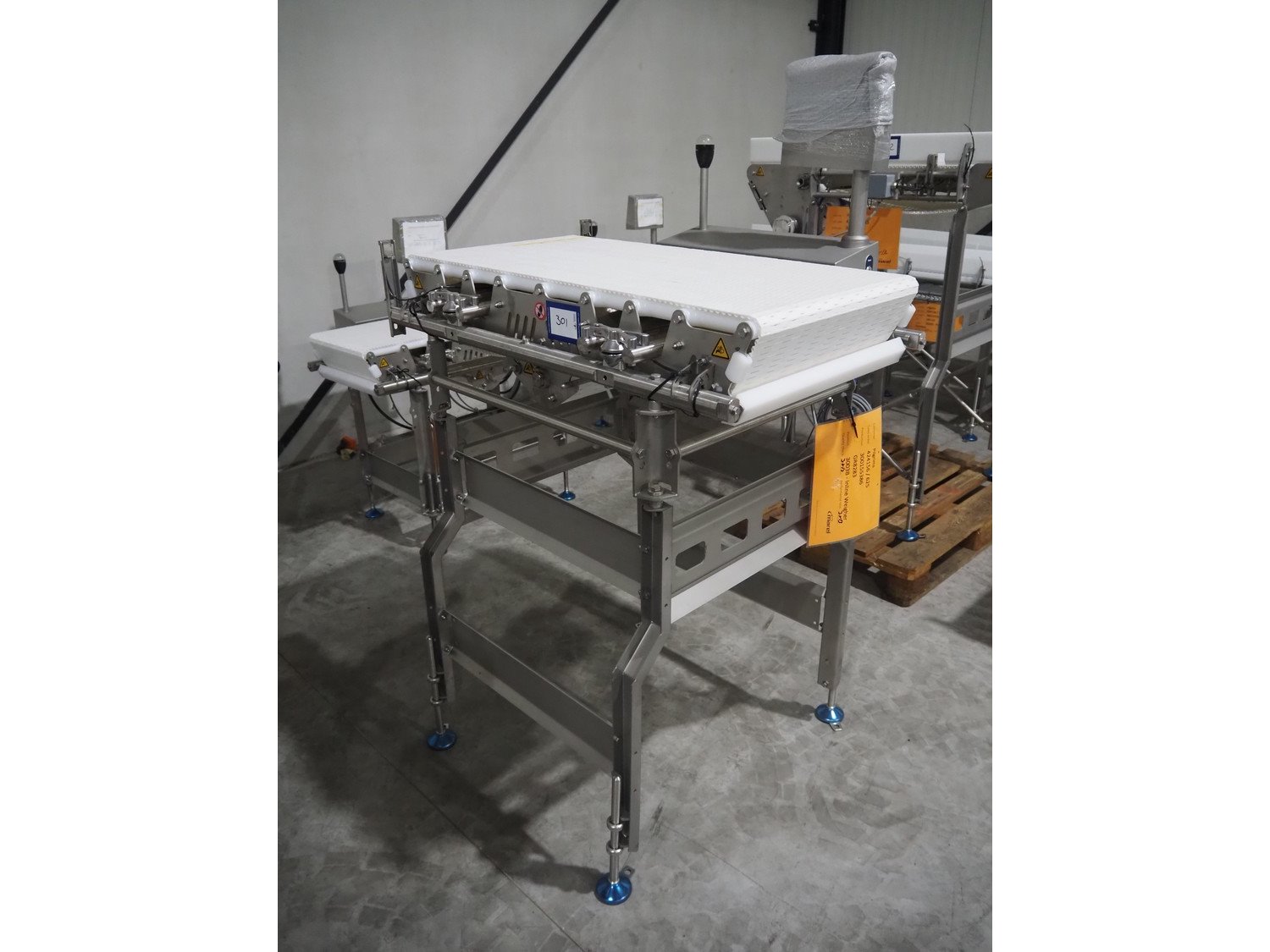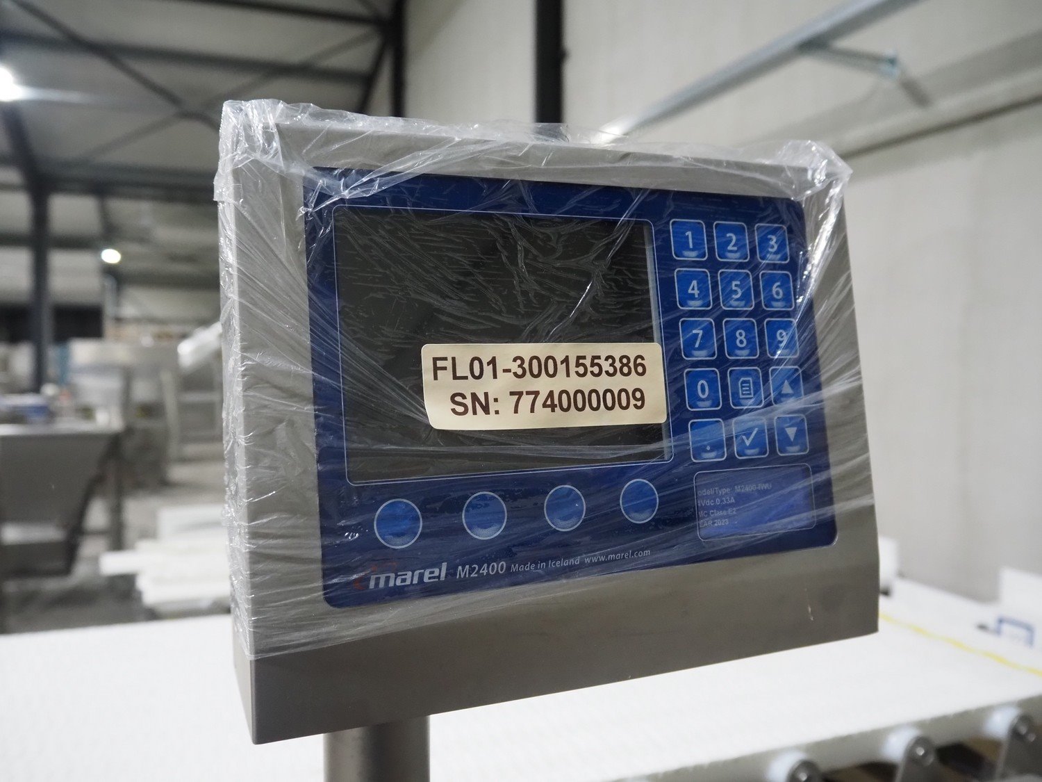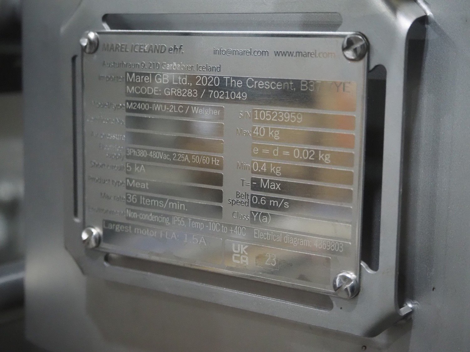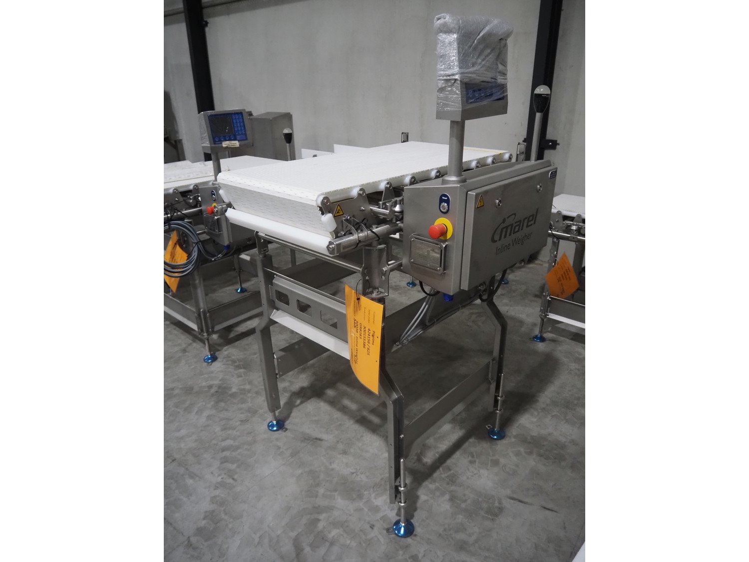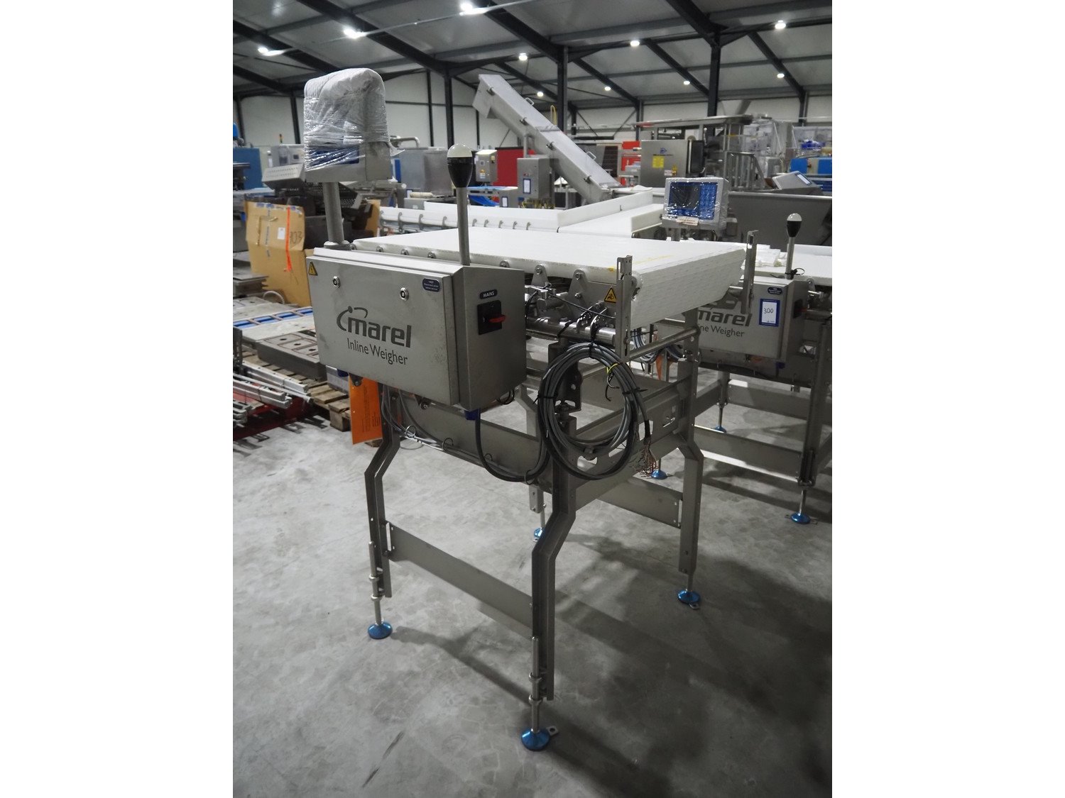 Marel inline weigher, model: M2400-IWU-2LC, serial number: 10523959, year of construction: 2023, max: 40 Kg, min: 0.4 Kg, e=d=0.02 Kg, plastic belt, belt width: 505 mm, total dimensions: 1050 mm x 900 mm x 1650 mm. Kavel locatie: Langereijt 29A, 5091 JP Middelbeers, Nederland
