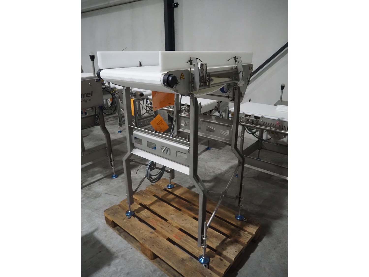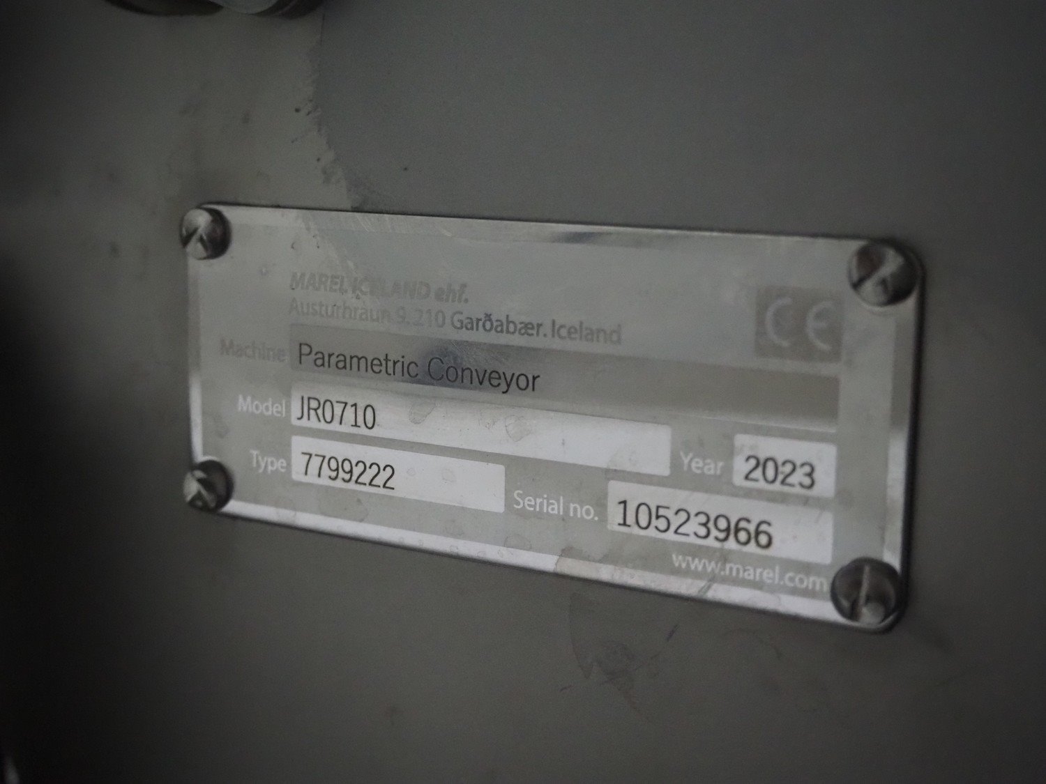 Marel transport belt, model: JR0710, type: 7799222, serial number: 10523966, year of construction: 2023, plastic belt, belt width: 505 mm, total dimensions: 1100 mm x 850 mm x 1400 mm. Kavel locatie: Langereijt 29A, 5091 JP Middelbeers, Nederland