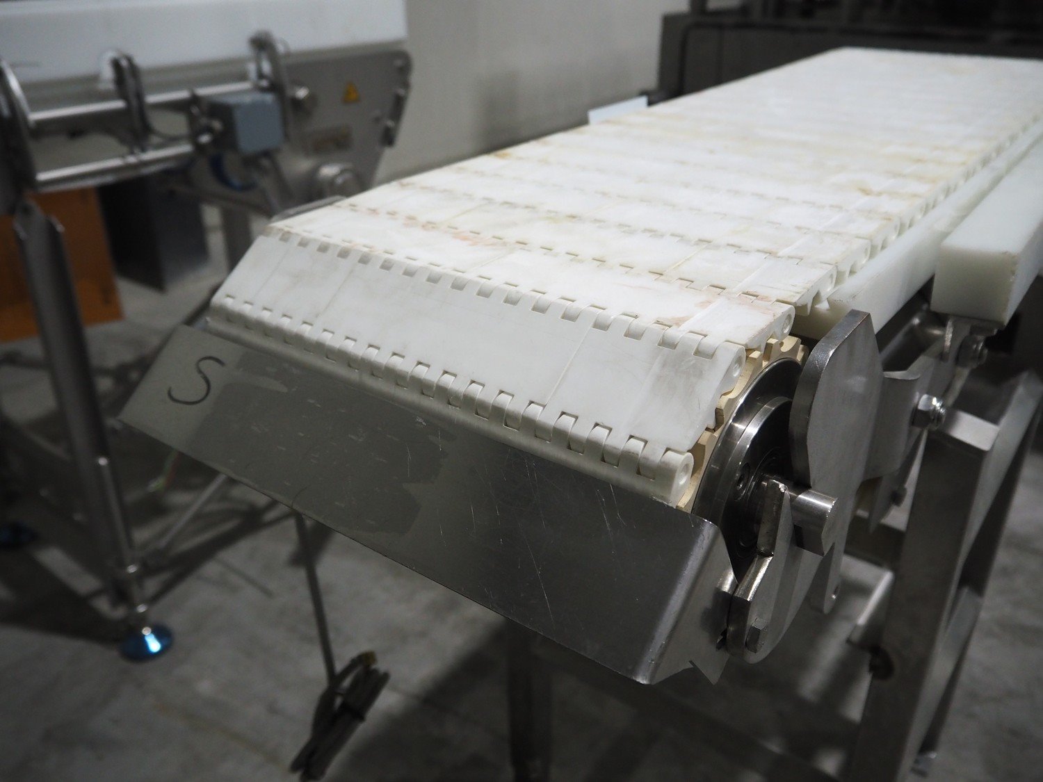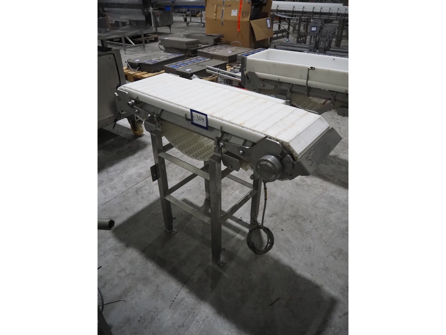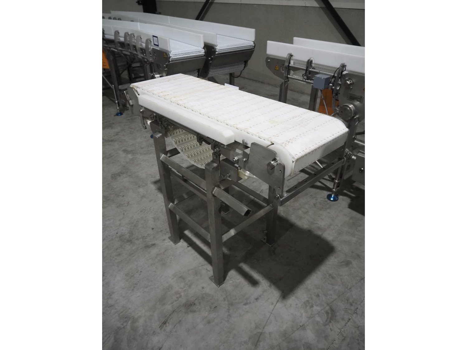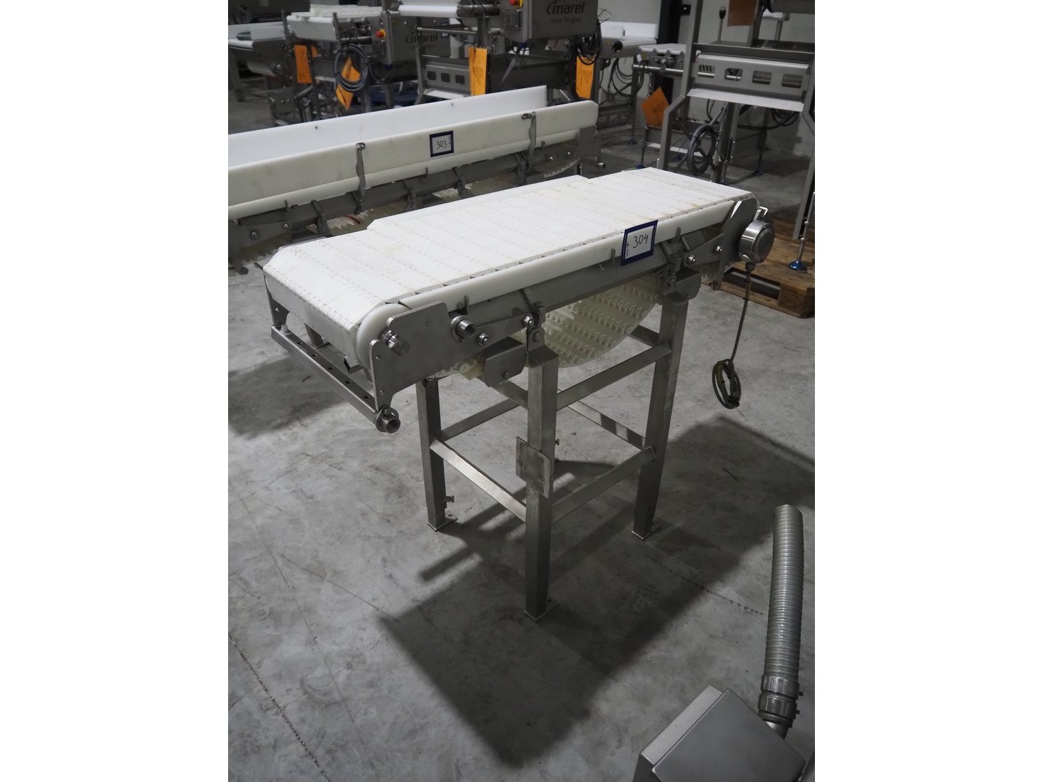 Marel transport belt, number: 1100037992, year of construction: 21-08-2015, plastic belt, belt width: 300 mm, total dimensions: 1150 mm x 450 mm x 870 mm. Kavel locatie: Langereijt 29A, 5091 JP Middelbeers, Nederland