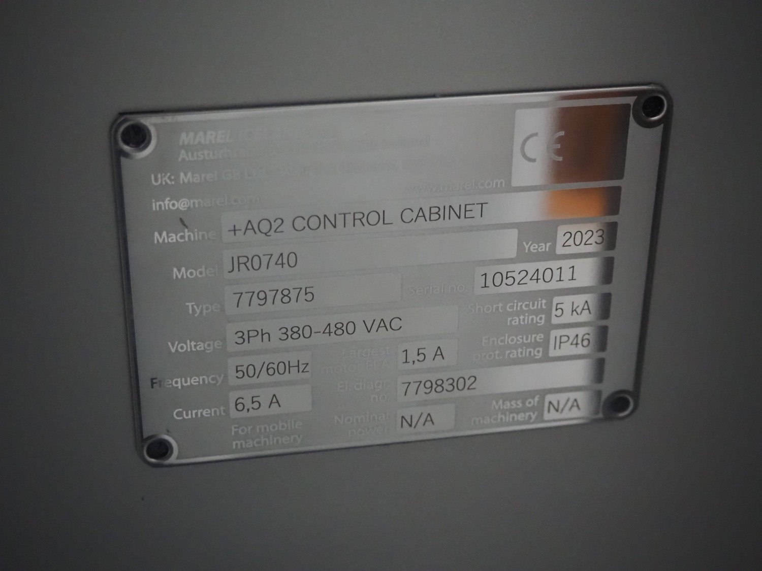 2x Marel switch cabinets, model: (2x) JR0740, type: 7797862, 7797875, year of construction: 2023, dimensions: (2x) 480 mm x 450 mm x 1100 mm. Kavel locatie: Langereijt 29A, 5091 JP Middelbeers, Nederland