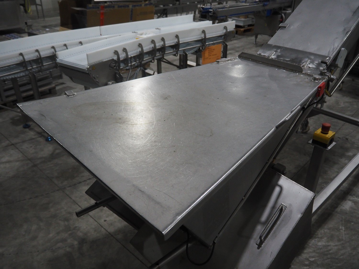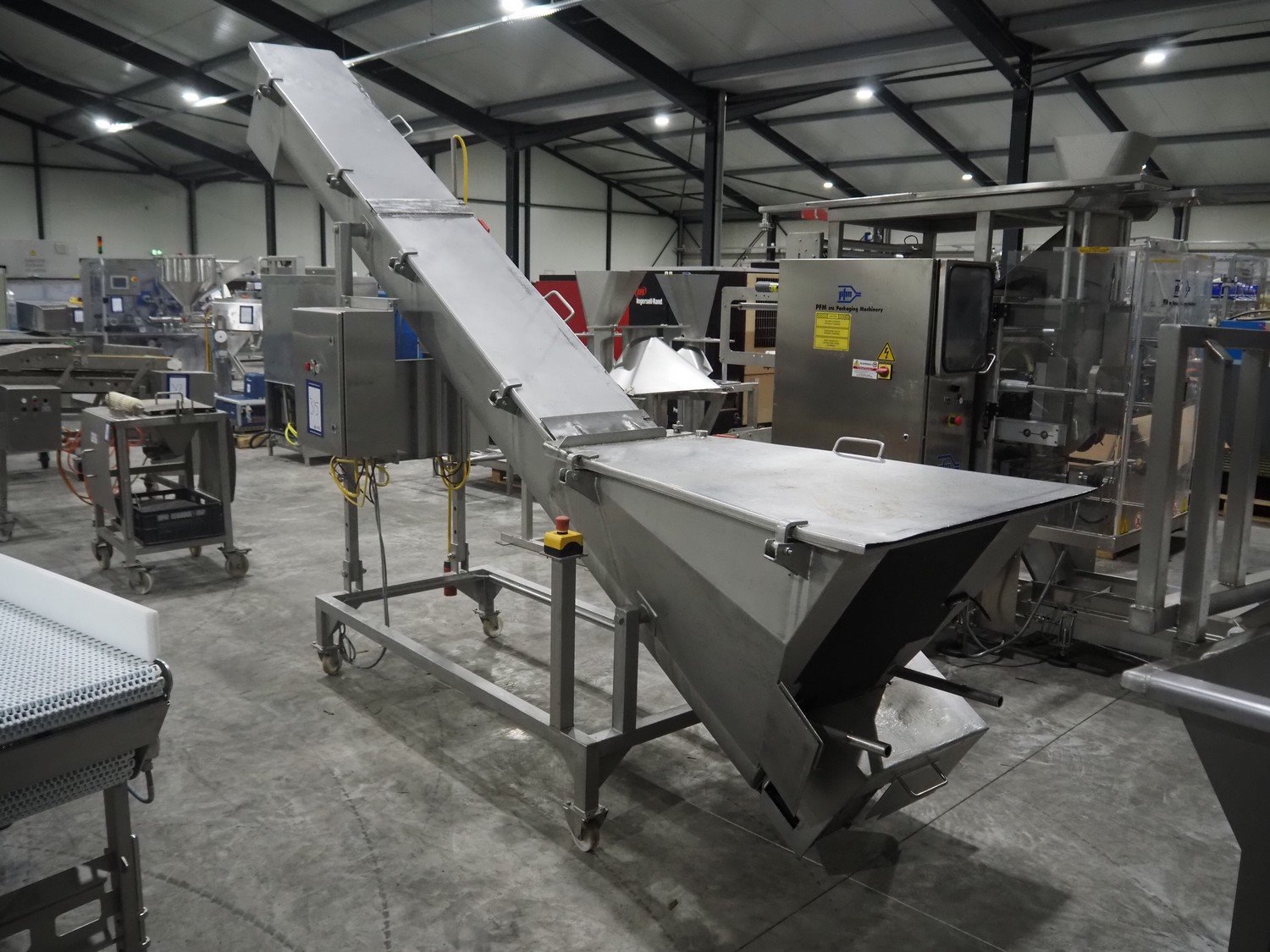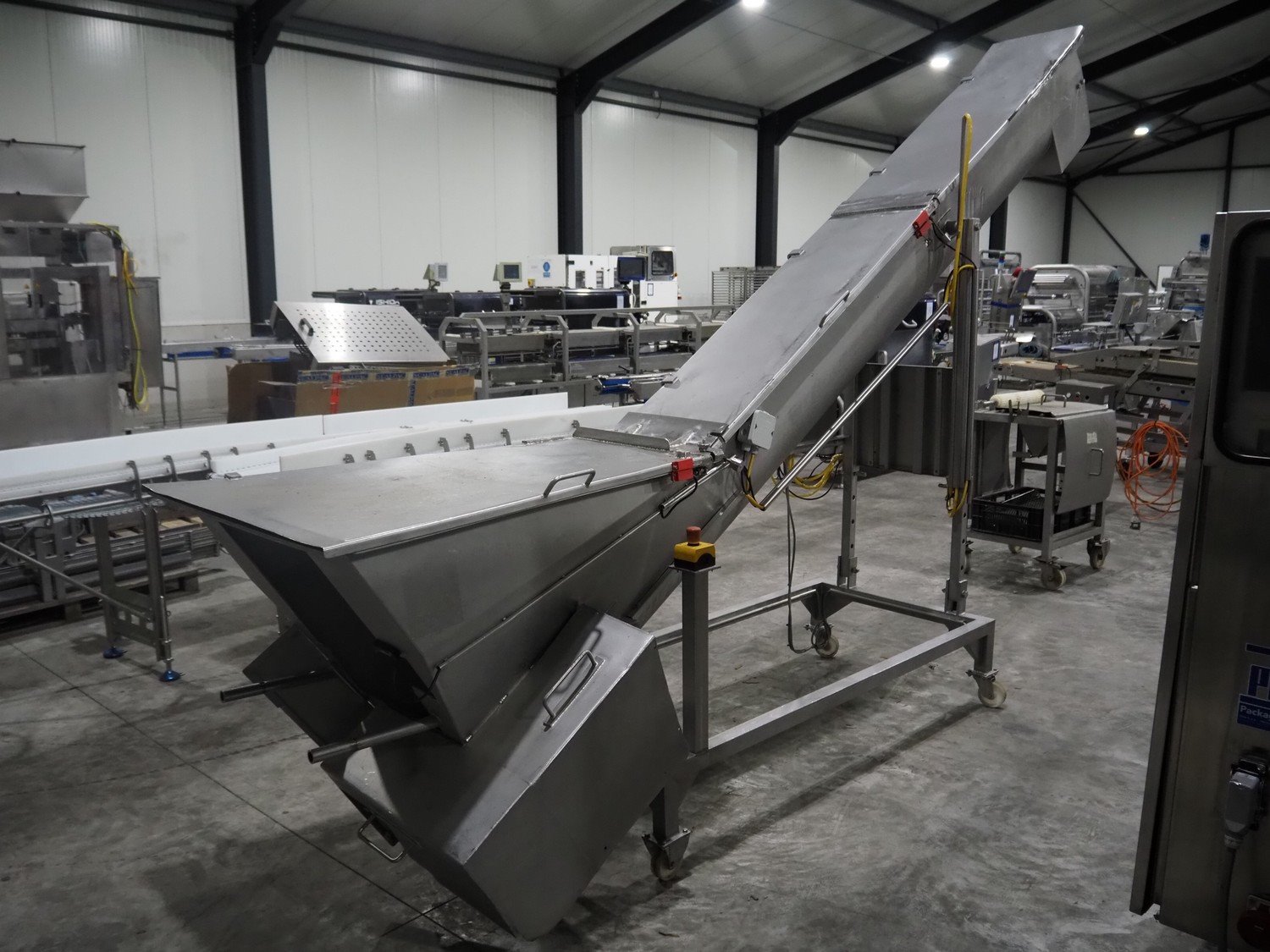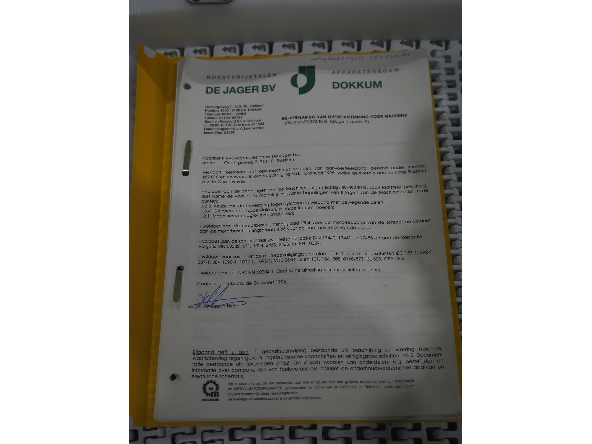 Roestvrijstalen-Apparatenbouw De Jager BV mobile elevating screw, number: 689.010, year of construction: March 1995, s/s screw, diameter screw: 250 mm, tier: 140 mm, elevating height: 2100 mm, total dimensions: 3800 mm x 1100 mm x 2600 mm. Kavel locatie: Langereijt 29A, 5091 JP Middelbeers, Nederland
