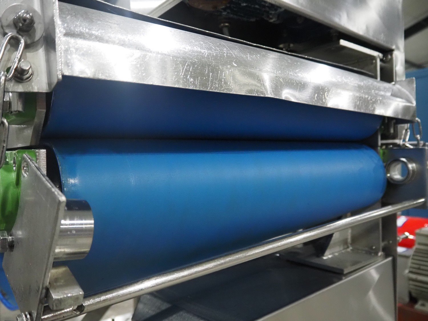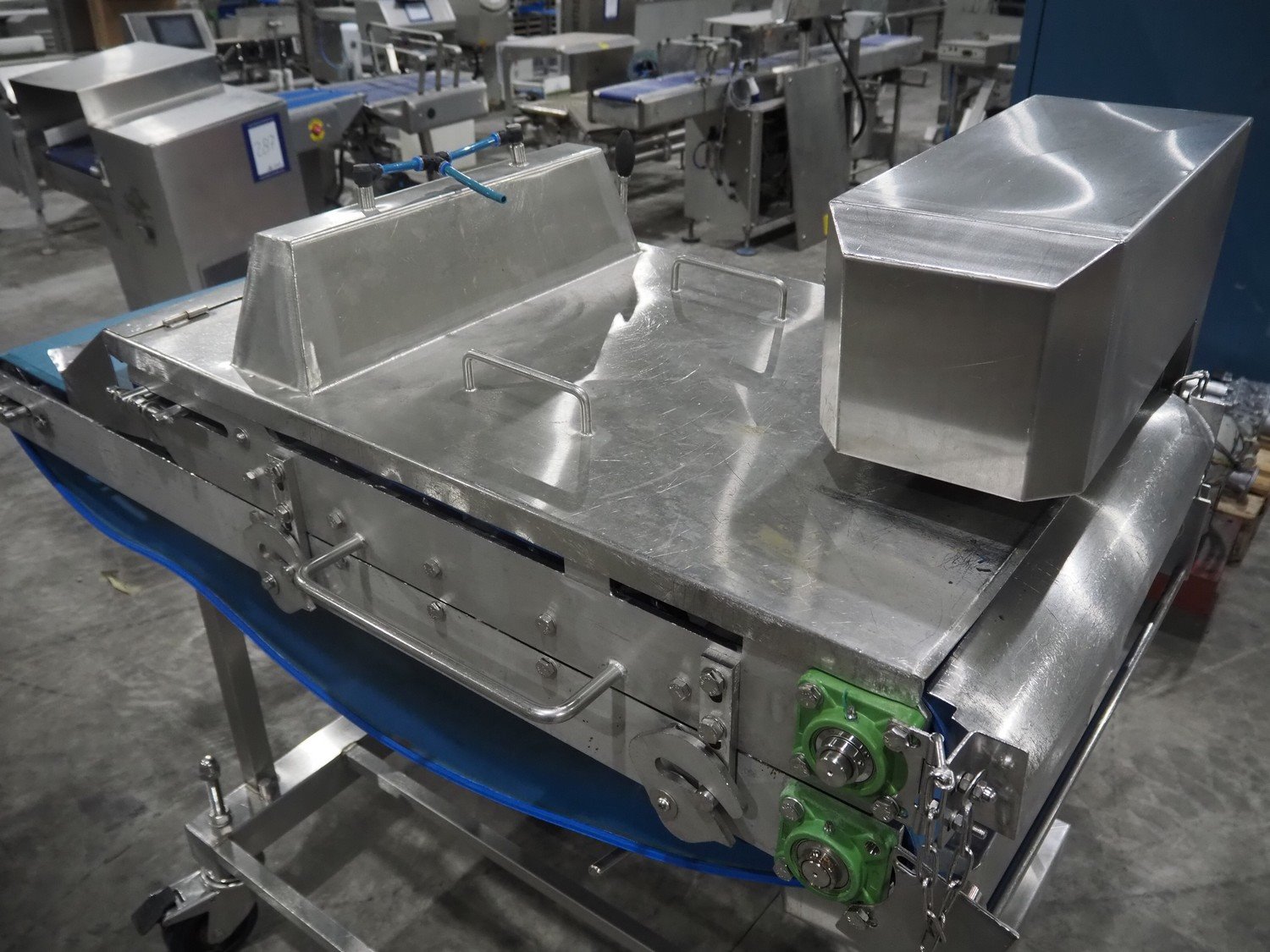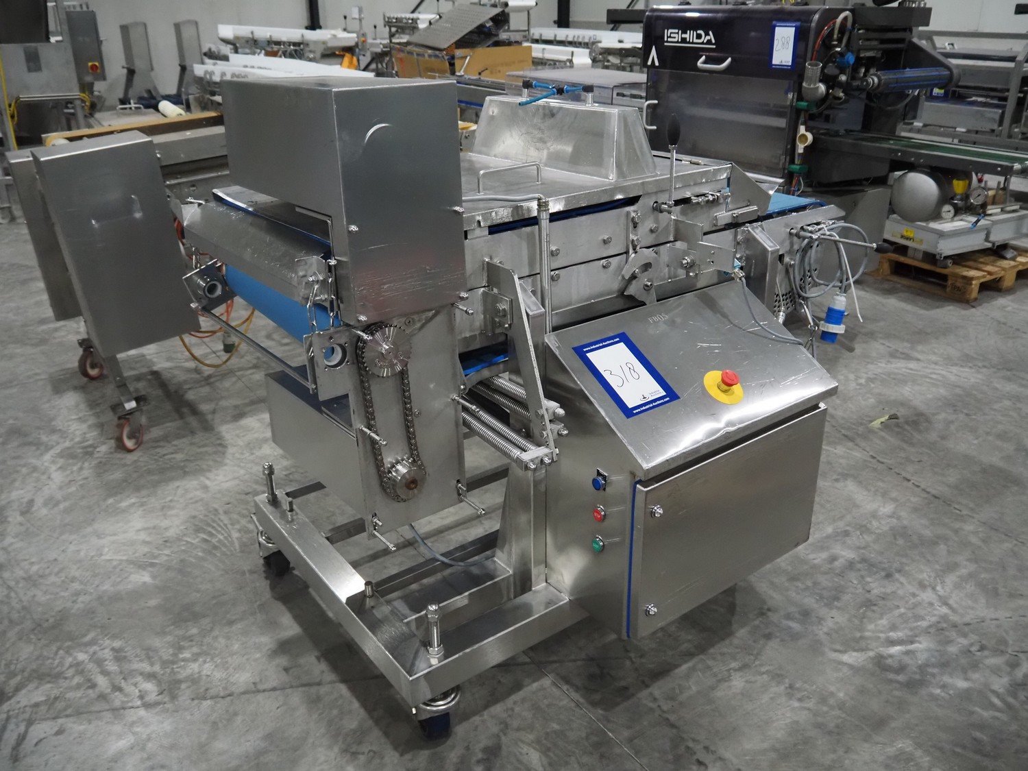 Mobile flattener, plastic belt, belt width: (2x) 600 mm, clearance: 600 mm x 40 mm, total dimensions: 1850 mm x 1200 mm x 1400 mm. Kavel locatie: Langereijt 29A, 5091 JP Middelbeers, Nederland