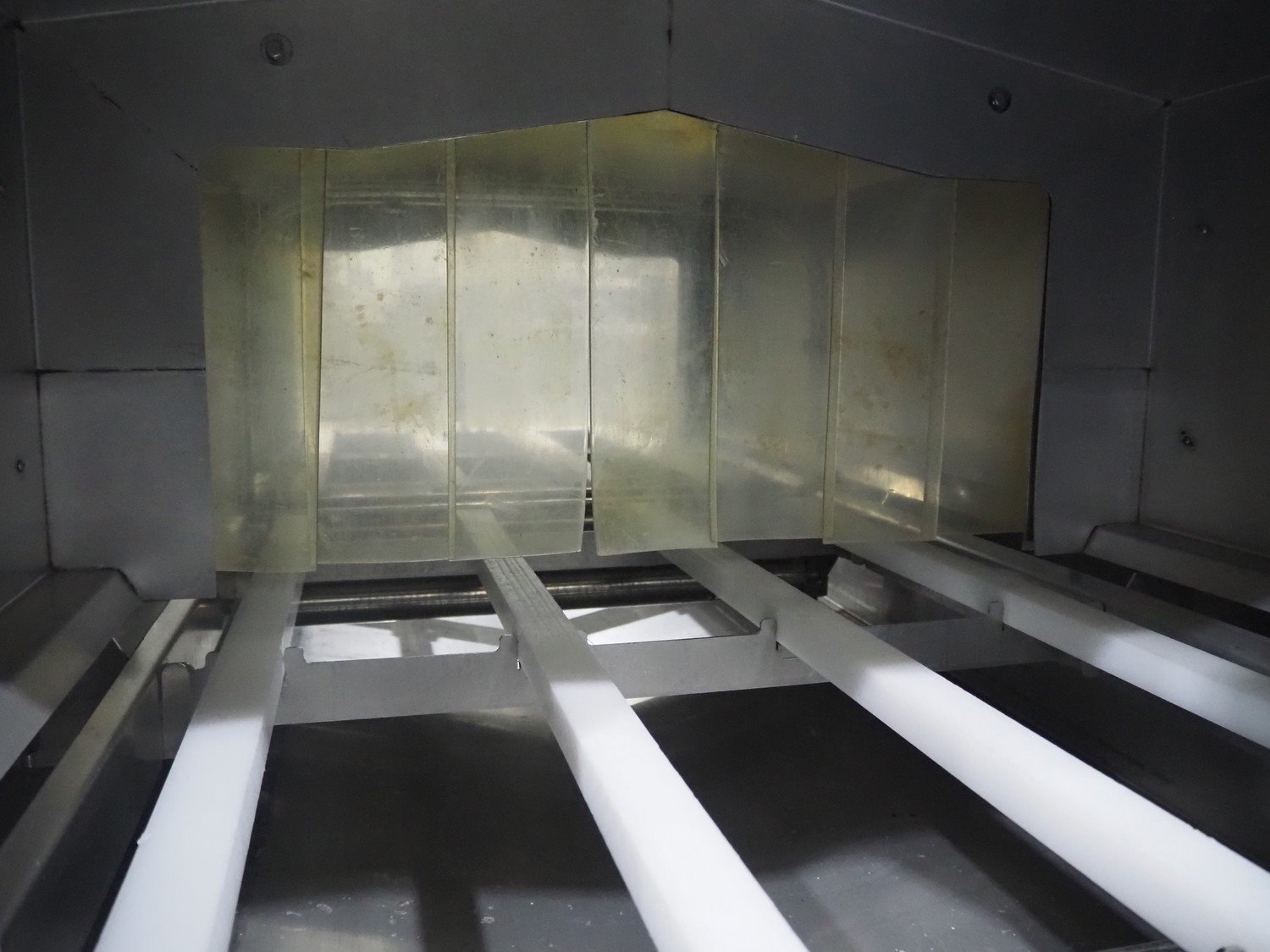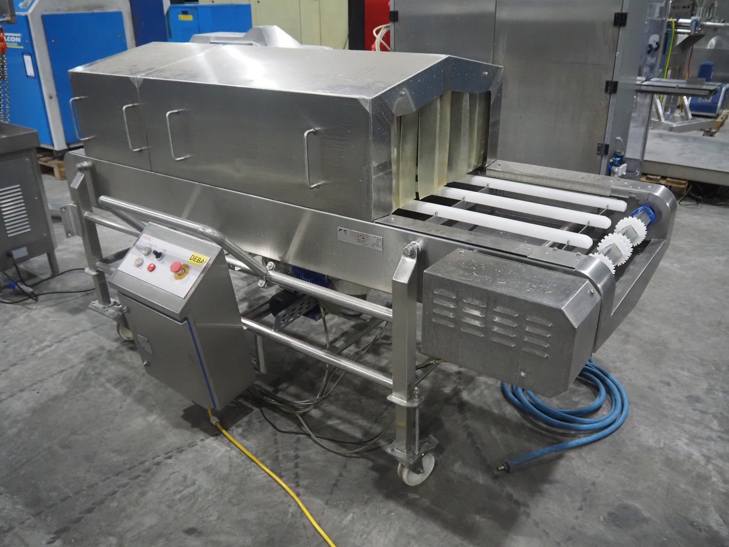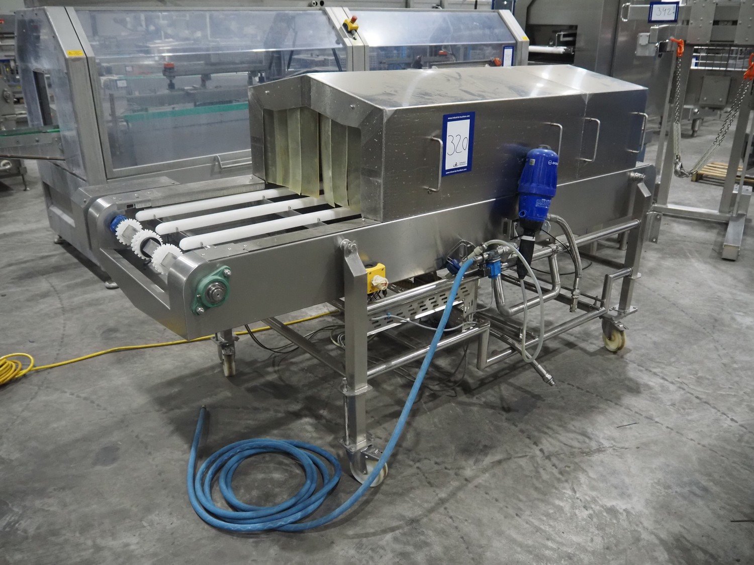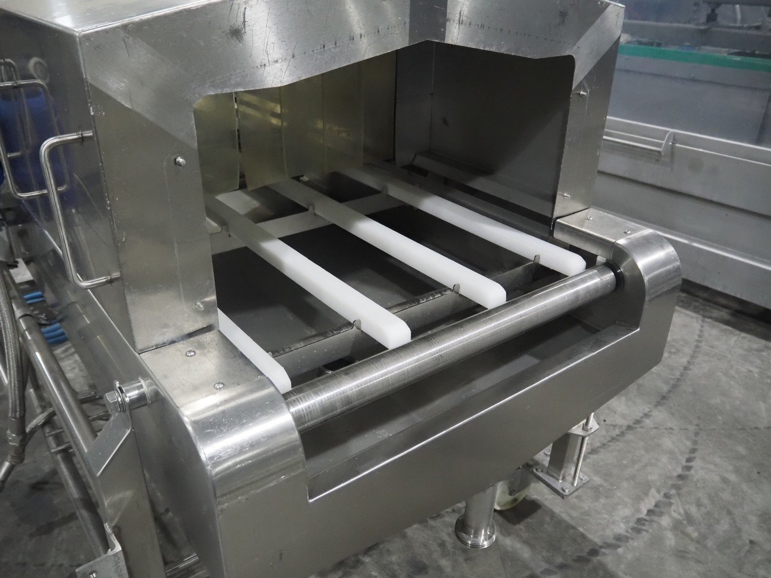 Syspal mobile crate washer, type: 512/071502-415V, number: C3581-1-1, year of construction: 2015, clearance: 610 mm x 300 mm, total dimensions: 2300 mm x 1200 mm x 1300 mm. Belt is missing. Kavel locatie: Langereijt 29A, 5091 JP Middelbeers, Nederland