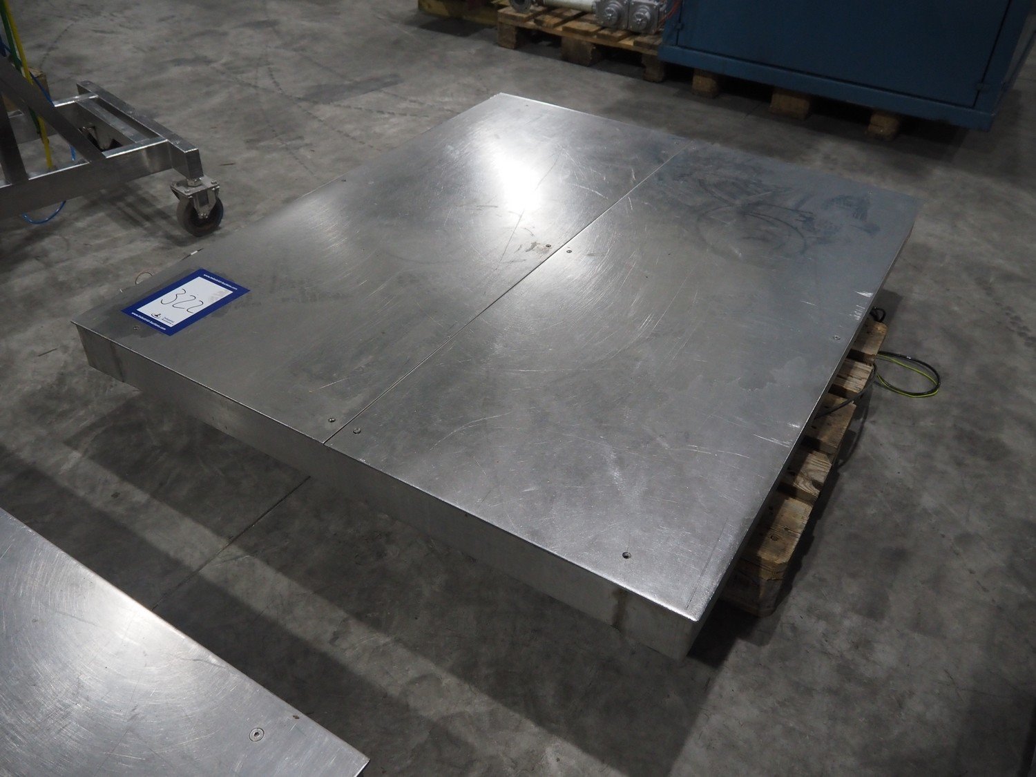 S/s floor weighing scale, dimensions: 1500 mm x 1255 mm x 110 mm. Without indicator. Kavel locatie: Langereijt 29A, 5091 JP Middelbeers, Nederland