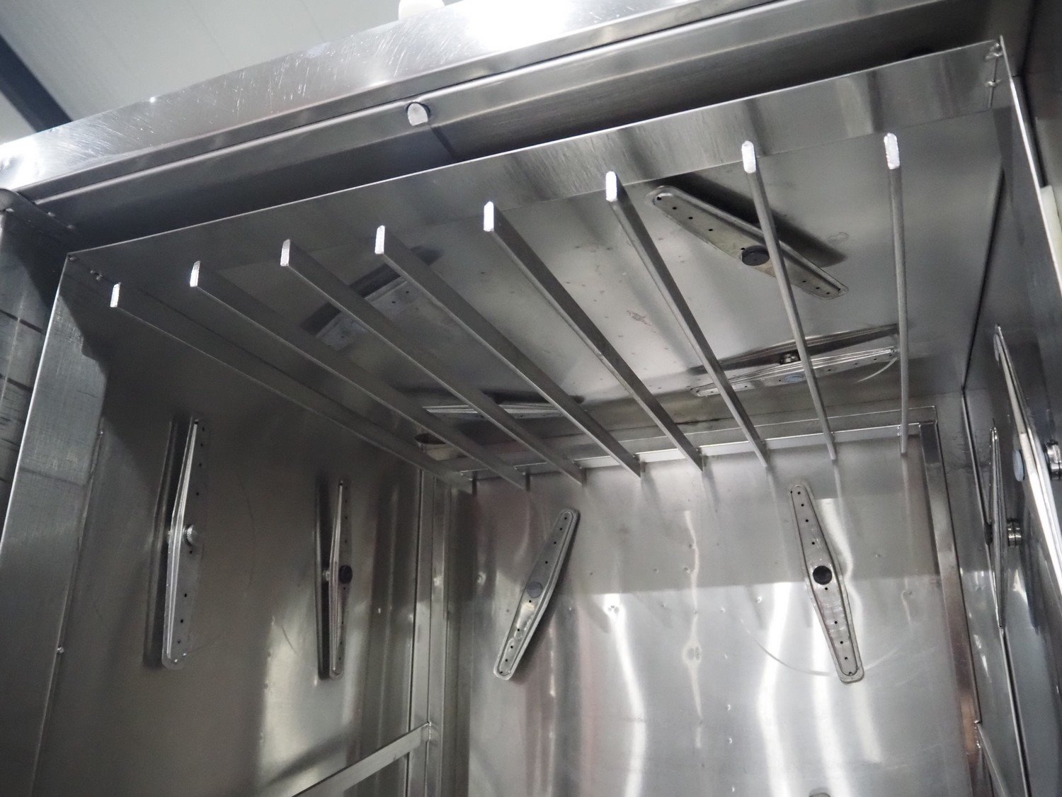 Washing machine for knife holders, 4100 W, inside dimensions: 550 mm x 540 mm x 610 mm, total dimensions: 810 mm x 800 mm x 1650 mm. Kavel locatie: Langereijt 29A, 5091 JP Middelbeers, Nederland