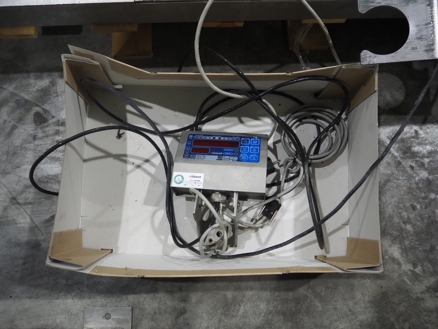 S/s floor weighing scale with Marel indicator, type indicator: C2, serial number: A068512, 110/230 V, 0.16/0.1 A, Max1/e1: 600 kg / 200g, Max2/e2: 1500 kg / 500g, min1/min2: 4 kg / 10 kg, dimensions ramp: 1500 mm x 800 x 100 mm, dimensions: 1500 mm x 1250 x 100 mm. Kavel locatie: Langereijt 29A, 5091 JP Middelbeers, Nederland
