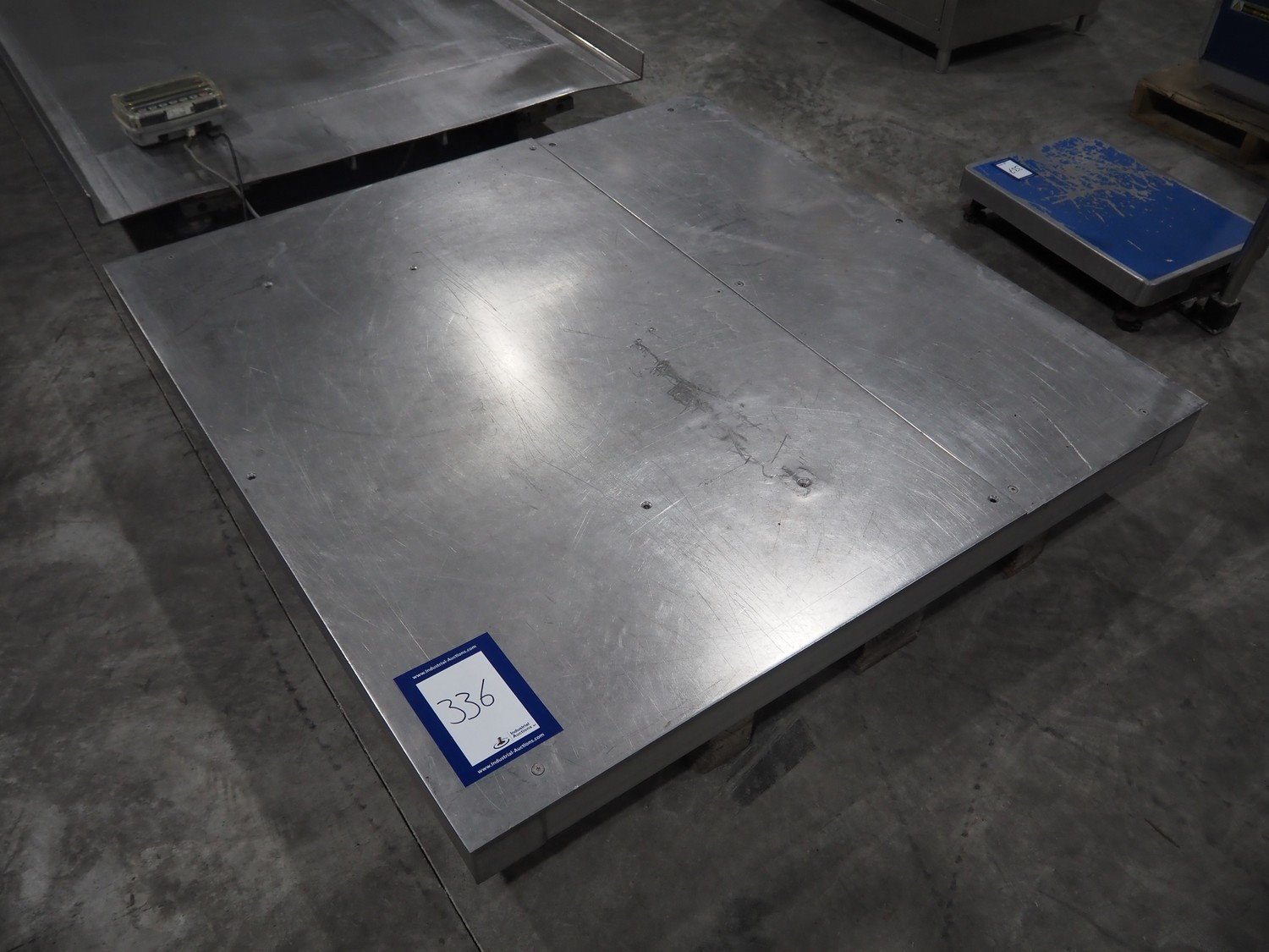 S/s floor weighing scale, dimensions: 1500 mm x 1500 mm x 105 mm. Without indicator. Kavel locatie: Langereijt 29A, 5091 JP Middelbeers, Nederland