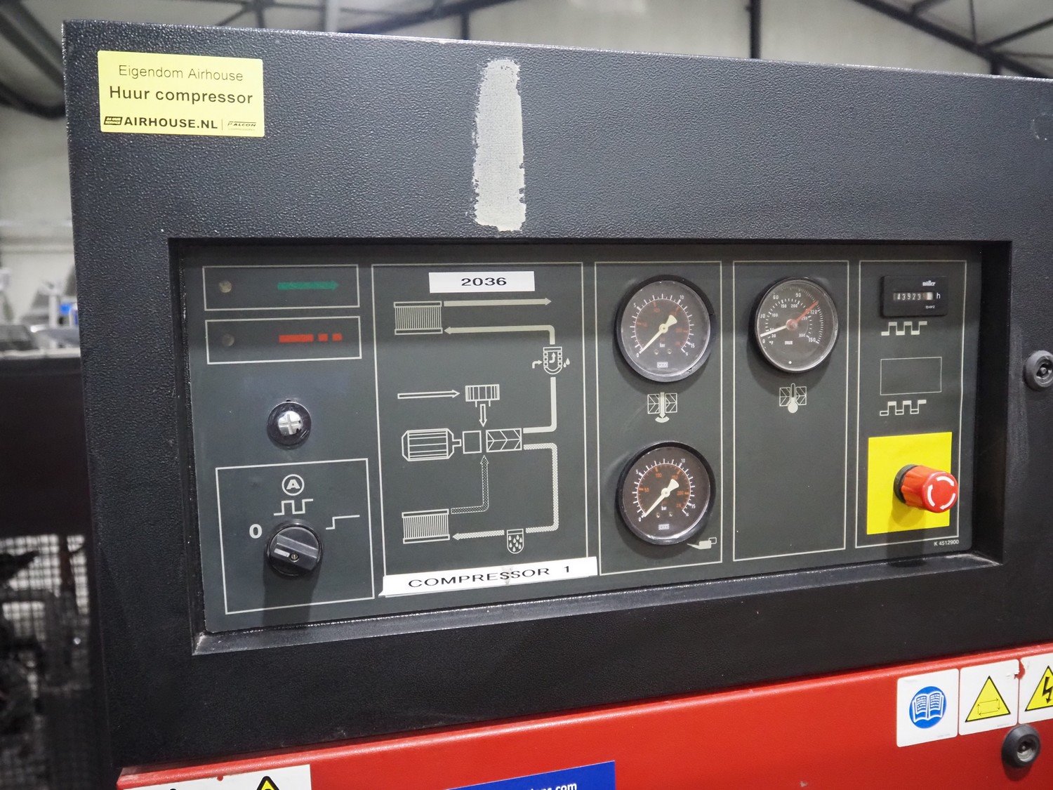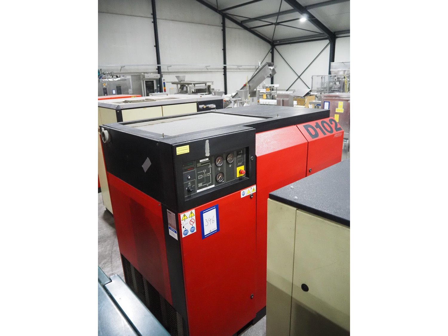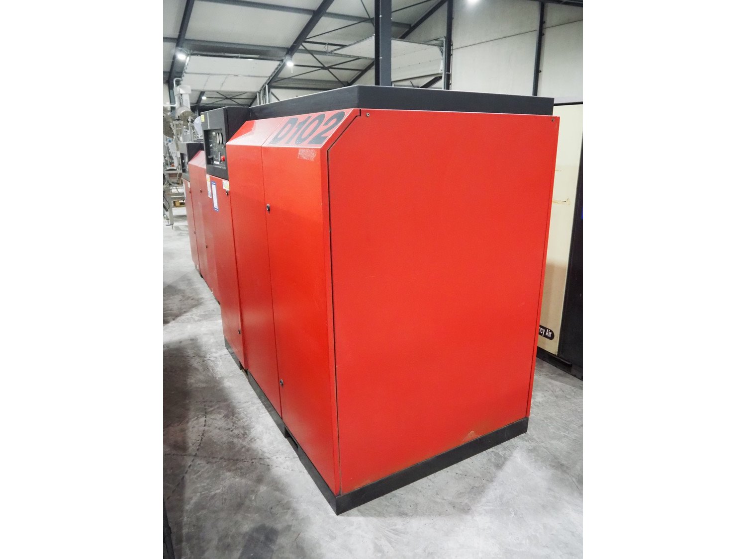 EcoAir air compressor, type: D102-8, serial number: 1090382, year of construction: 1998, 400 V, 3 Ph, 50 Hz, 75 kW, maximum pressure: 8 bar, dimensions: 2000 mm x 1100 mm x 1700 mm. Kavel locatie: Langereijt 29A, 5091 JP Middelbeers, Nederland